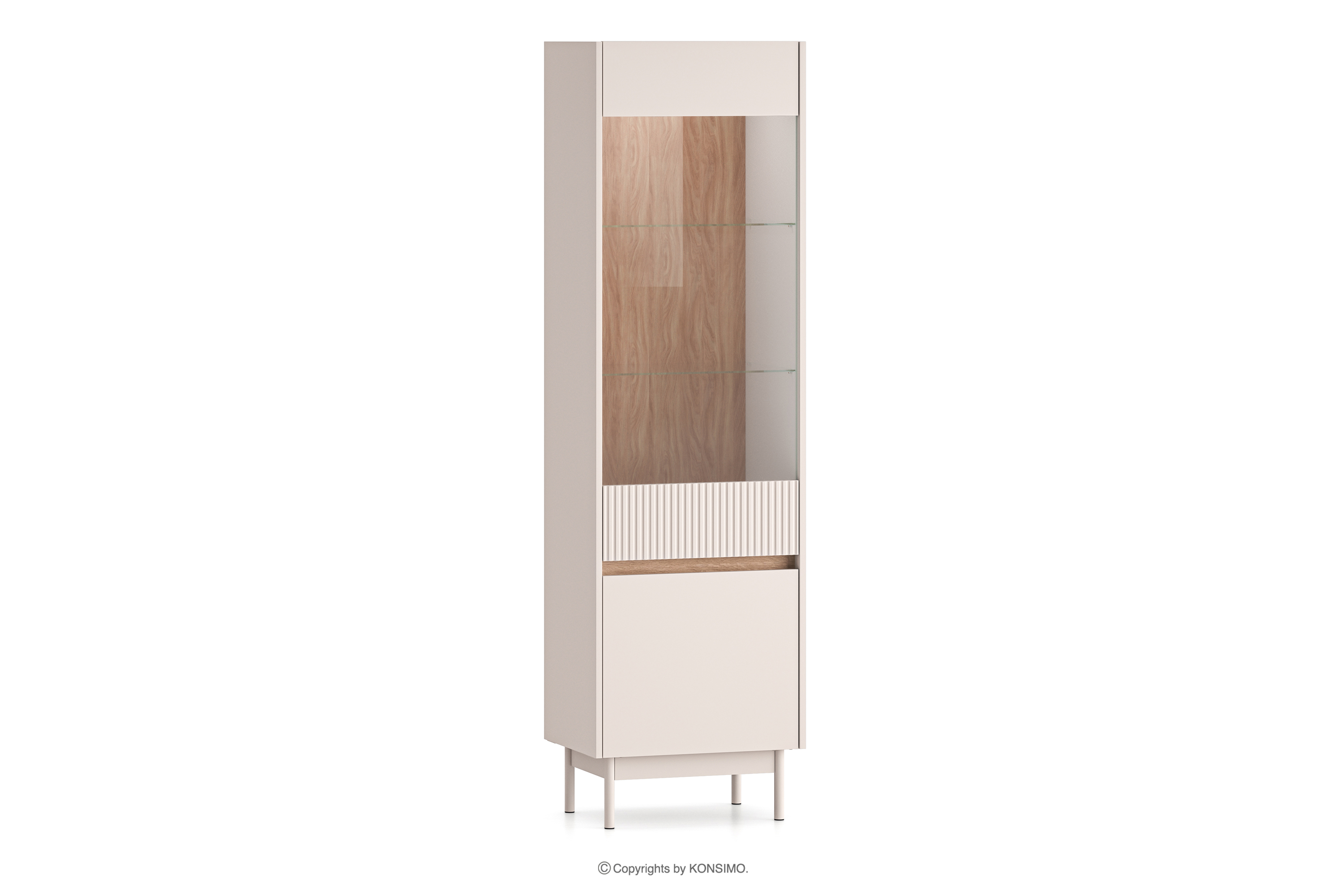 NALIA zobacz całą kolekcję Elegancka witryna z ryflowaniem kremowy/dąb- kolor kremowy/dąb
