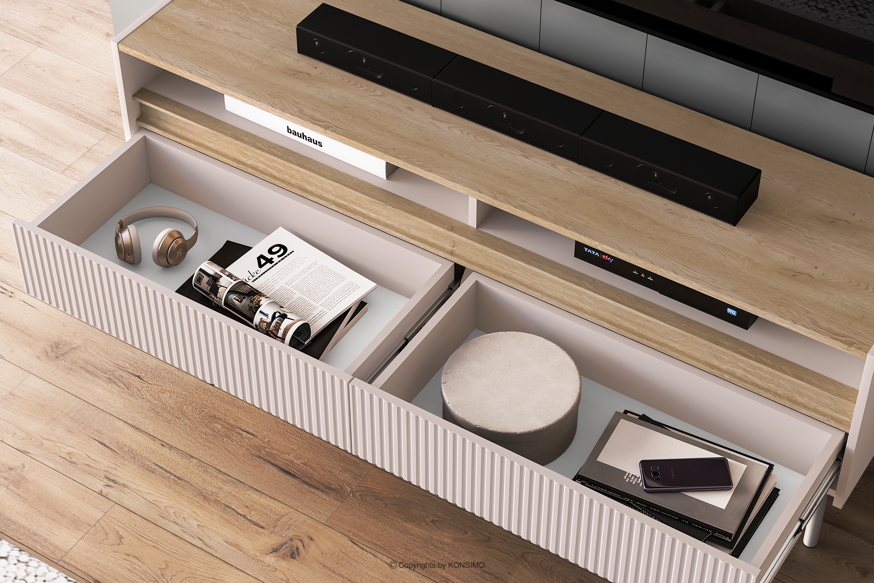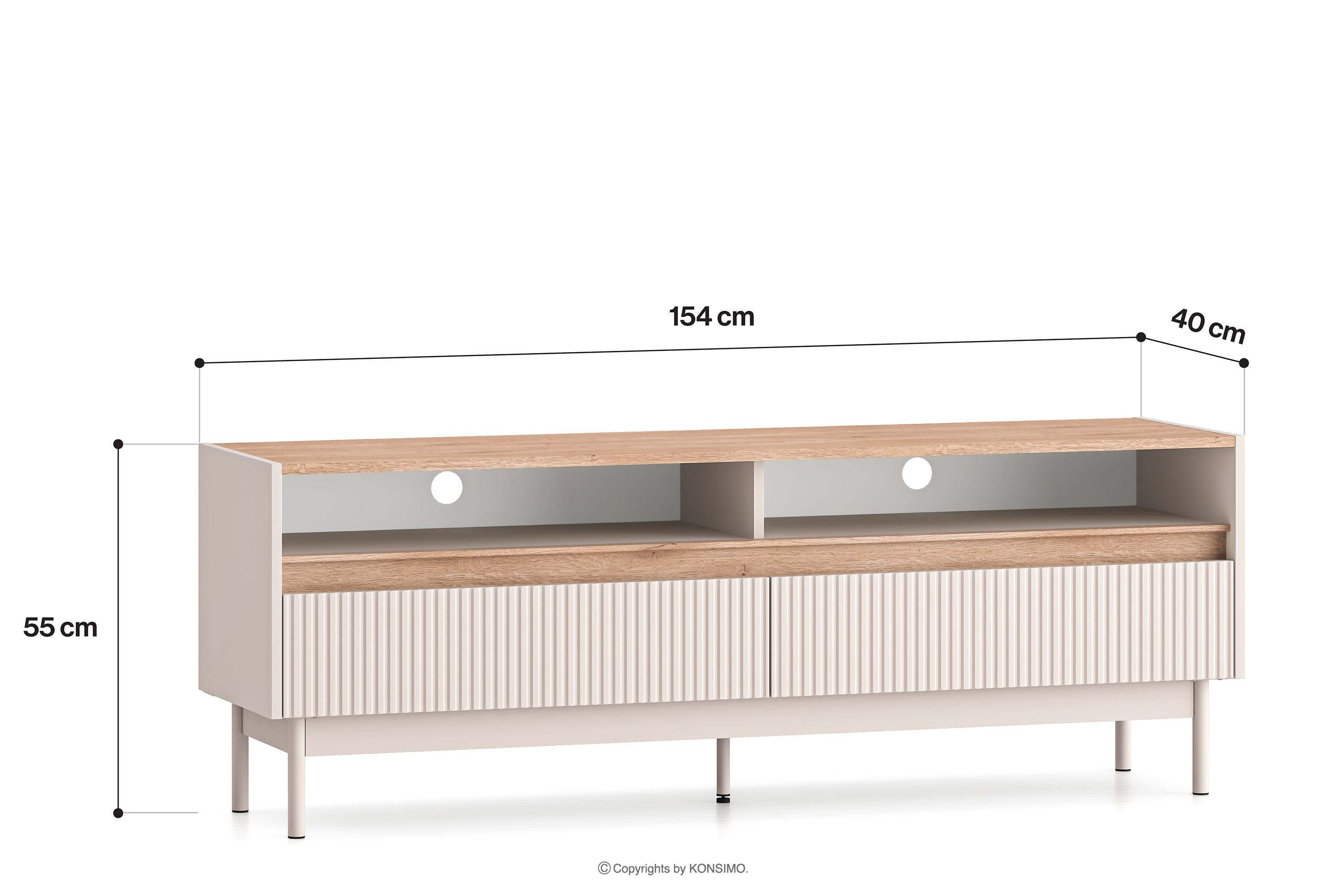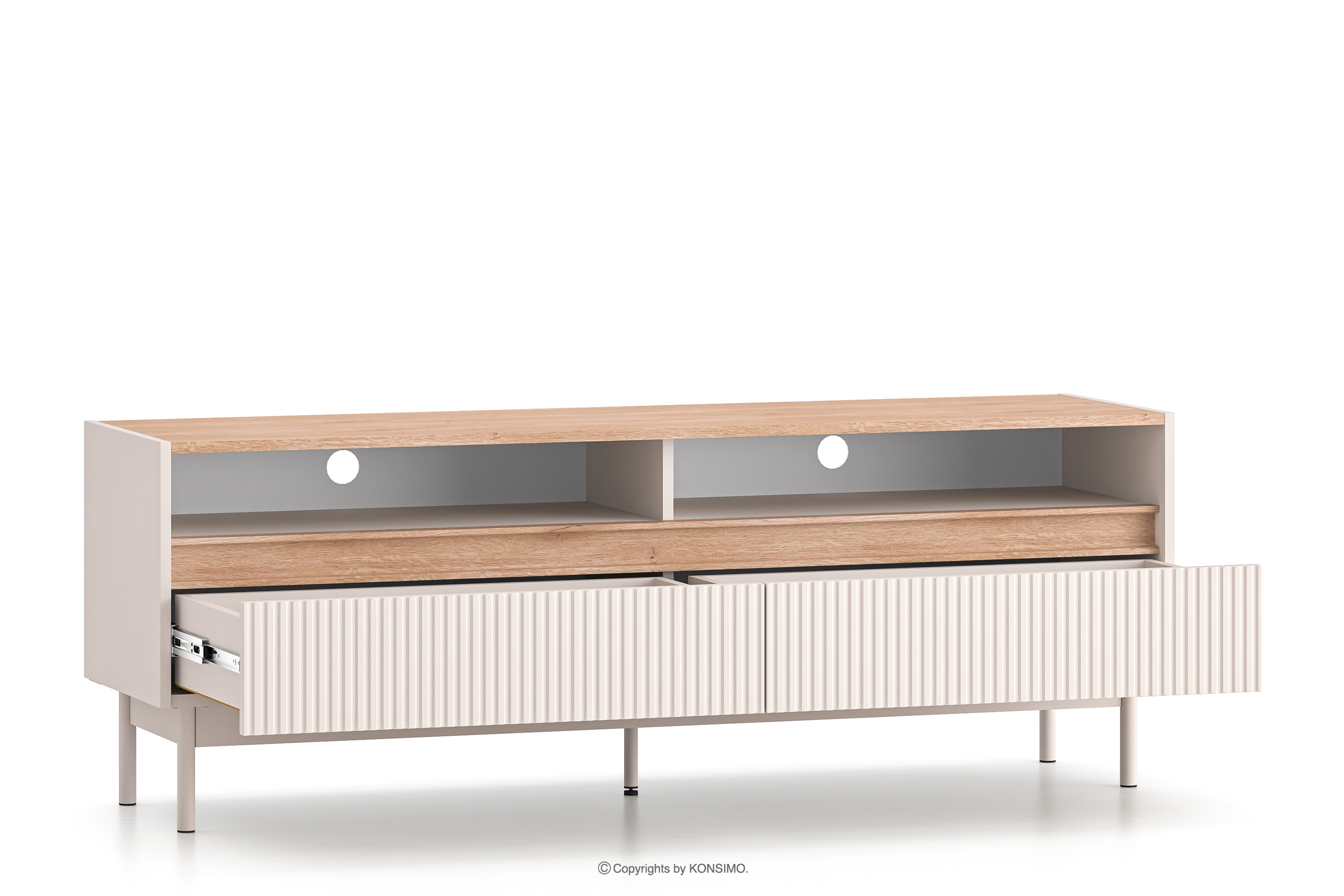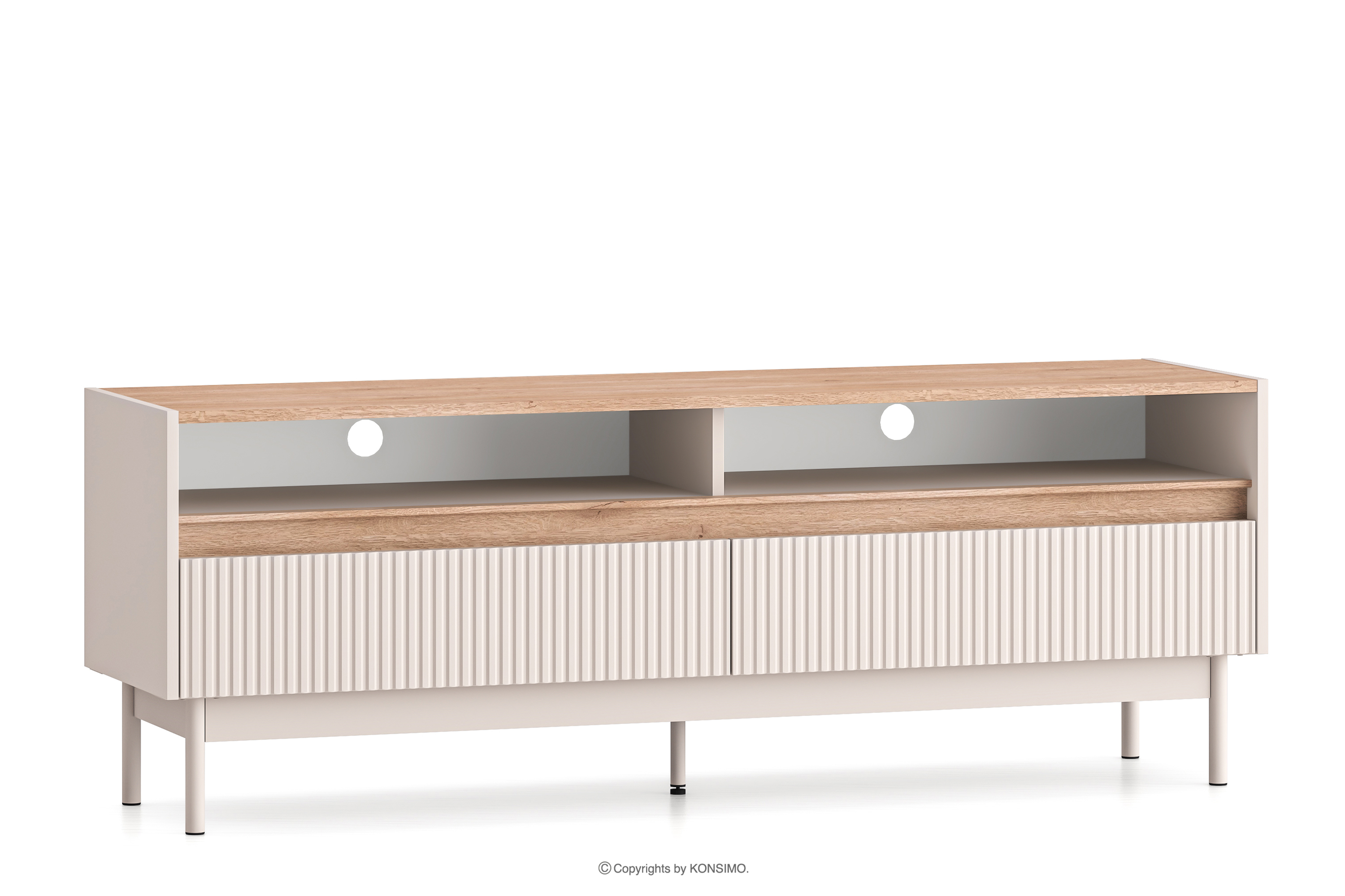 NALIA zobacz całą kolekcję Szafka RTV elegancka z ryflowaniem kremowy/dąb- kolor kremowy/dąb