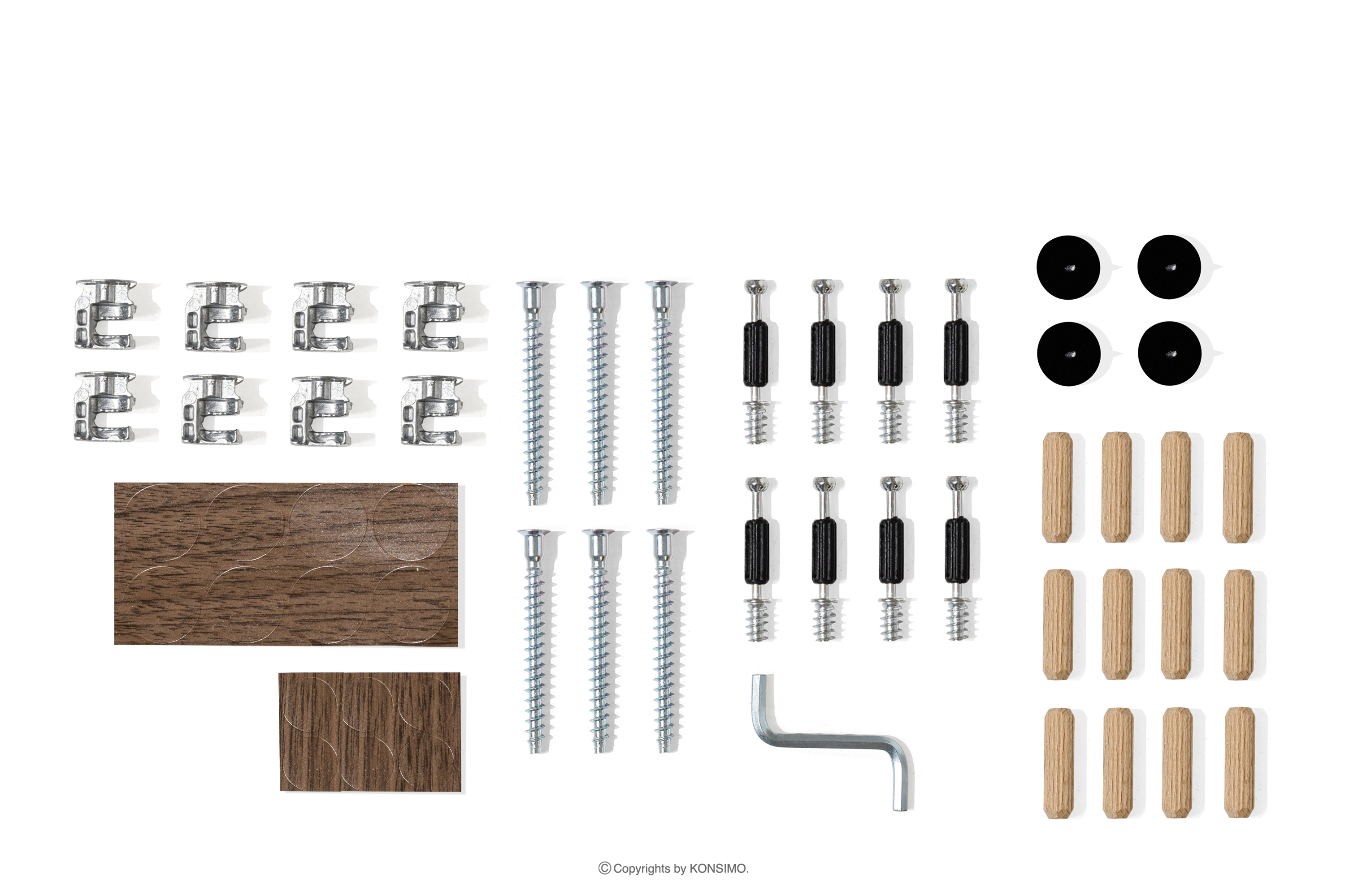 - Nóżki: plyta laminowana 28 mm, ślizgacz z gwoździem