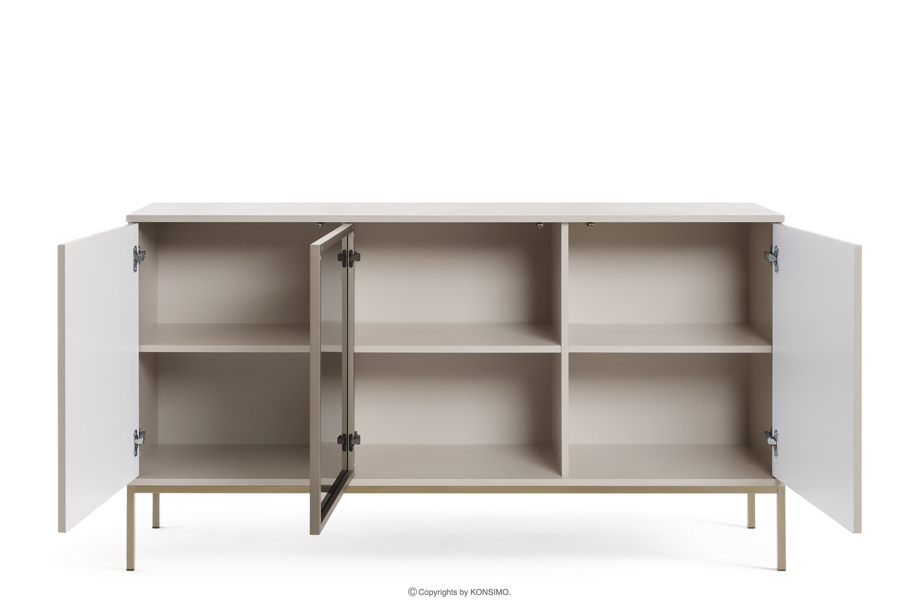 FONTE zobacz całą kolekcję Kremowa duża komoda ze szklanymi drzwiami i lamelami- kolor kremowy