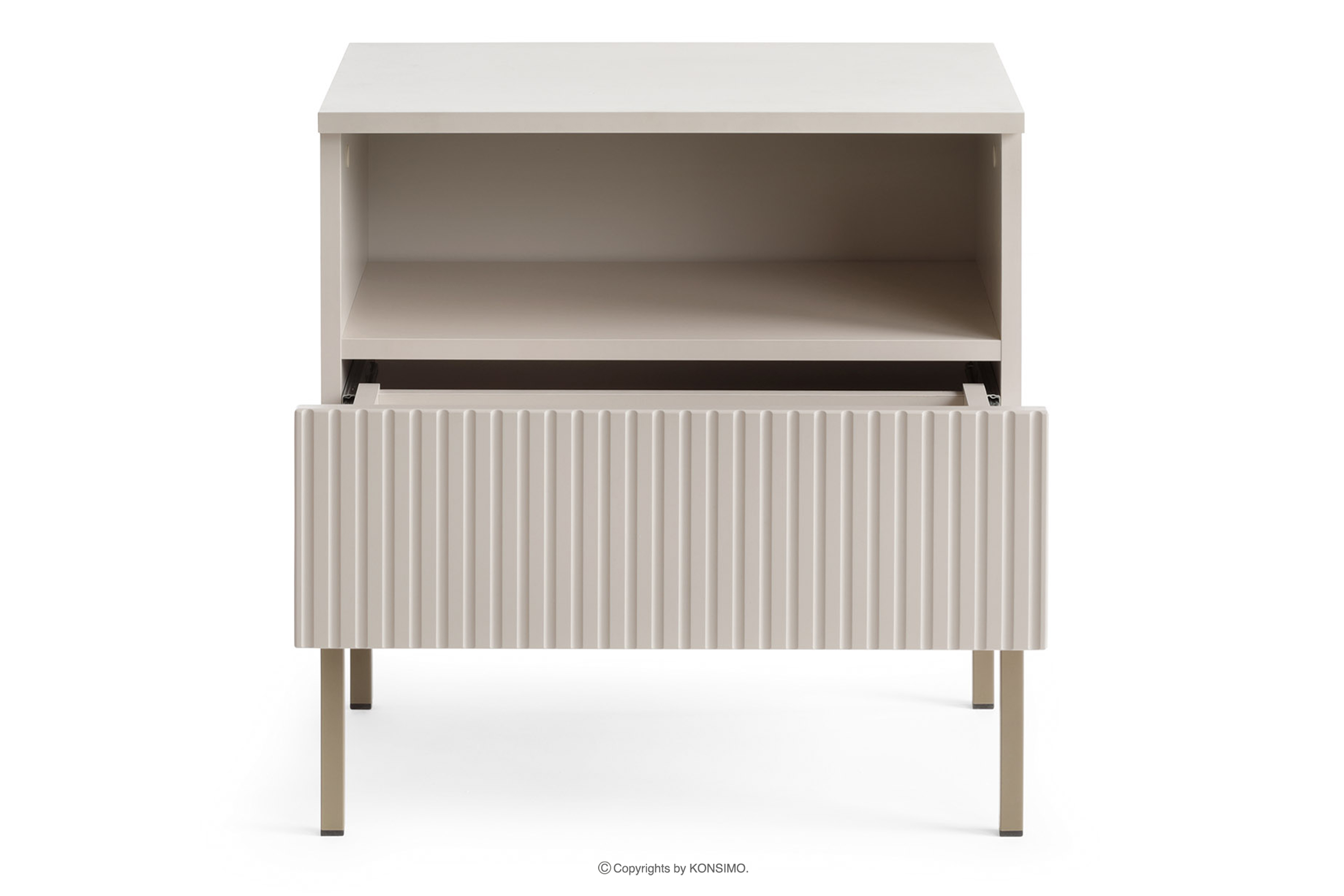 Kremowy stolik nocny z lamelami na wysokich nóżkach FONTE - kolor kremowy