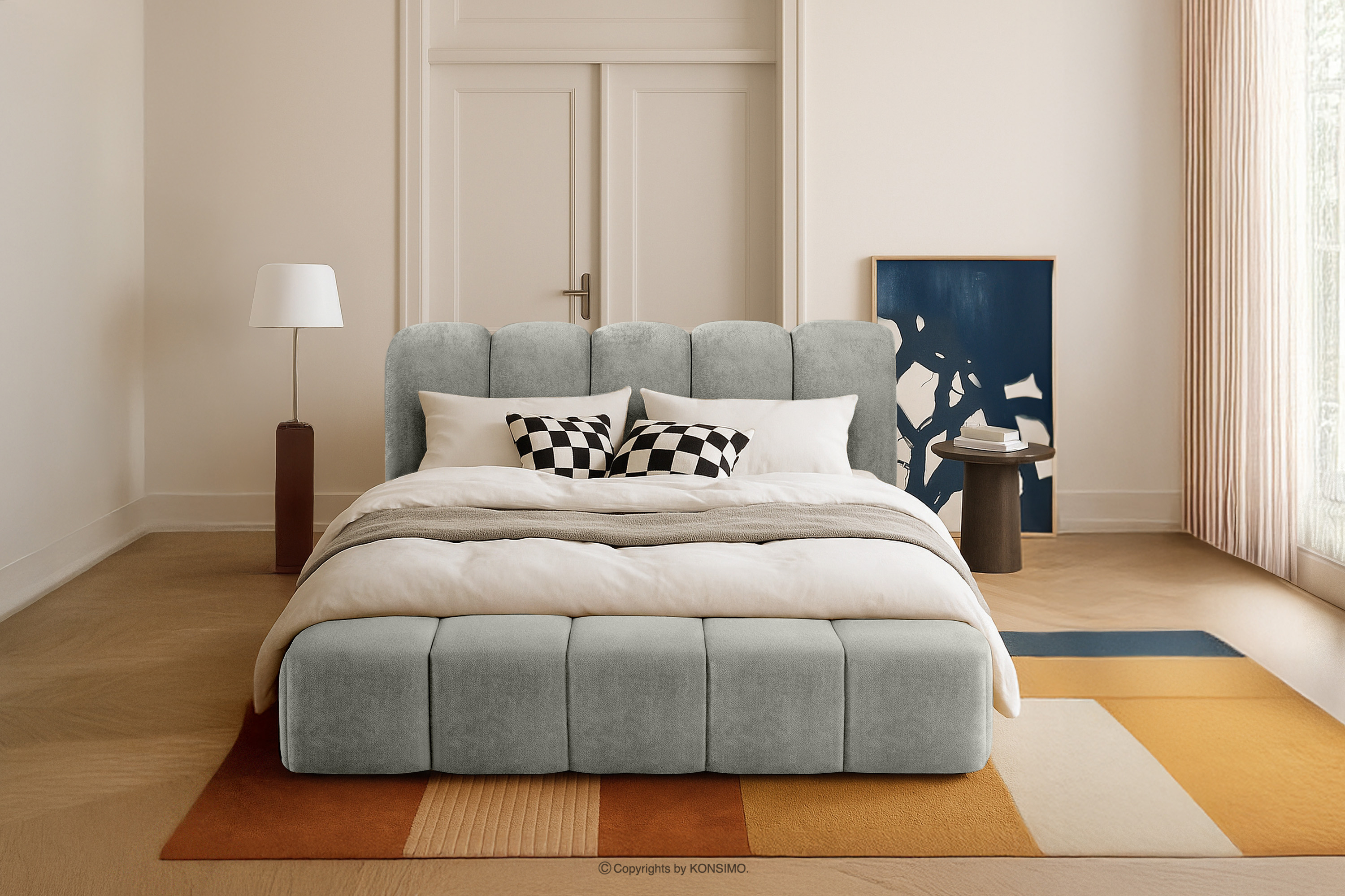 MERIDE zobacz całą kolekcję Łóżko tapicerowane 160 cm z pikowaniem jasny szary- kolor jasny szary