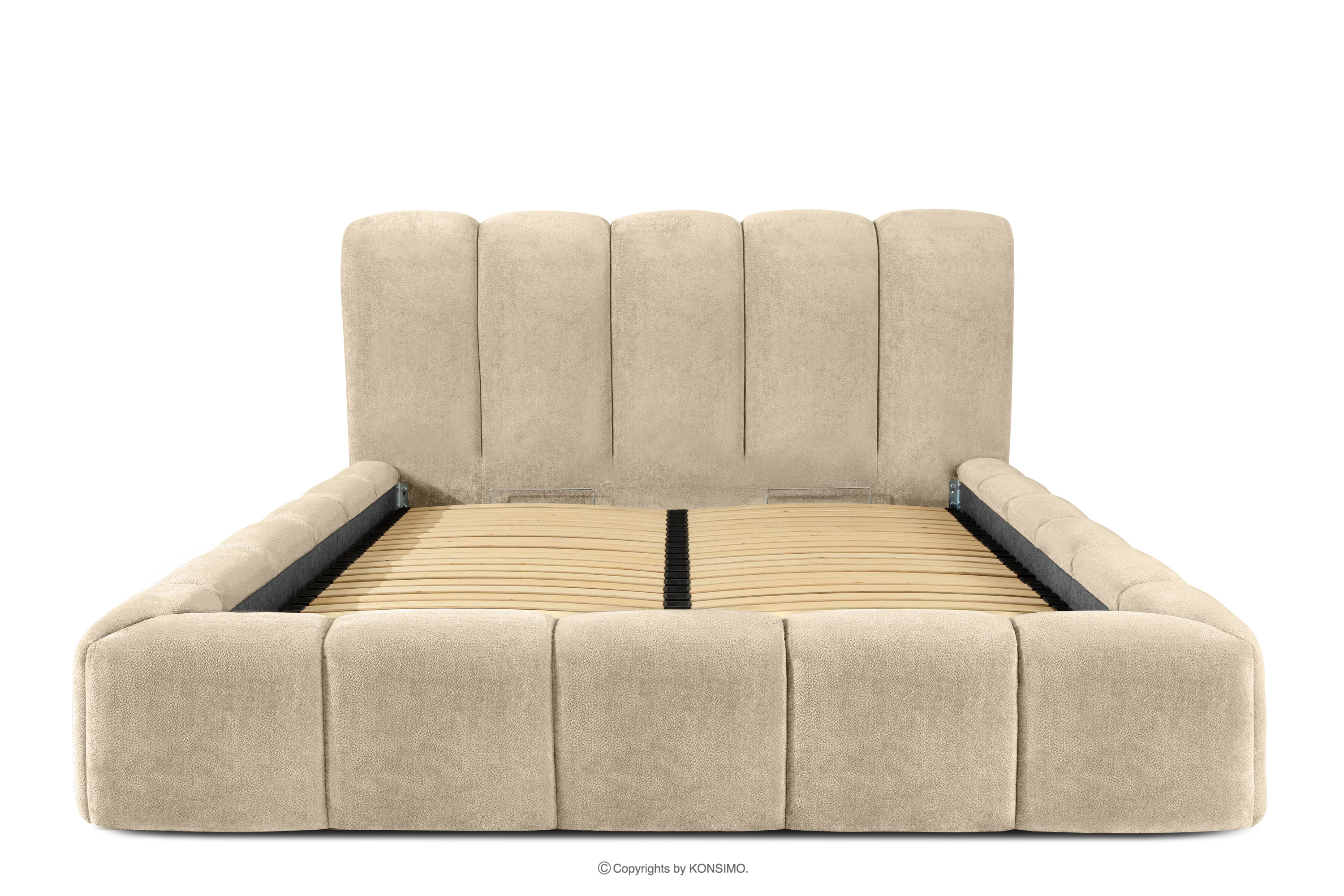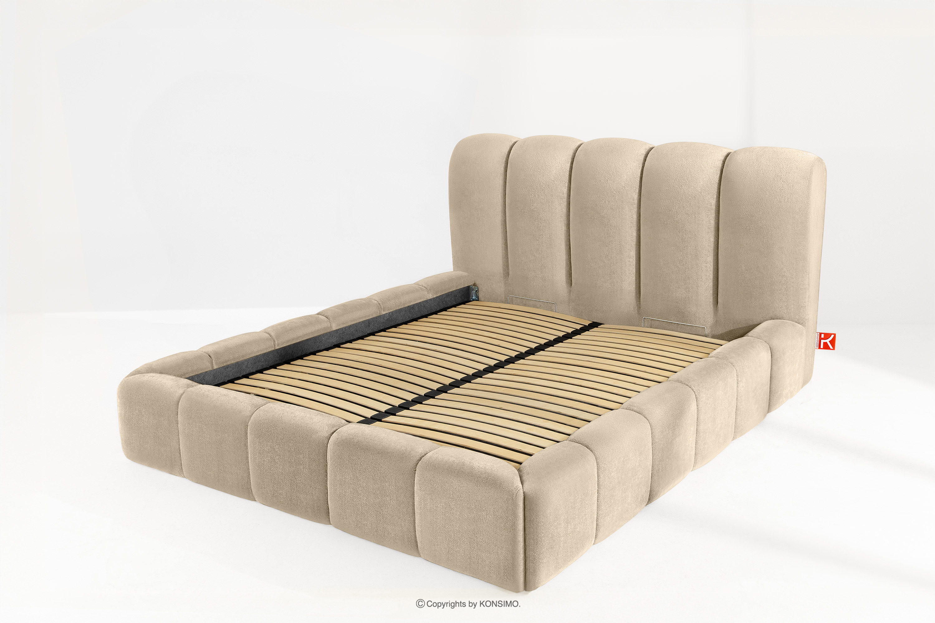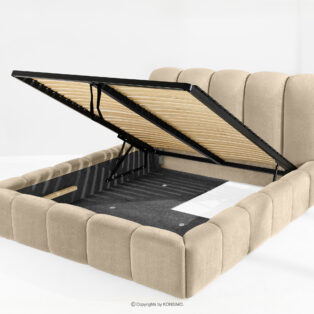 MERIDE zobacz całą kolekcję Łóżko tapicerowane 160 cm w stylu japandi z pikowaniem beżowy- kolor beżowy