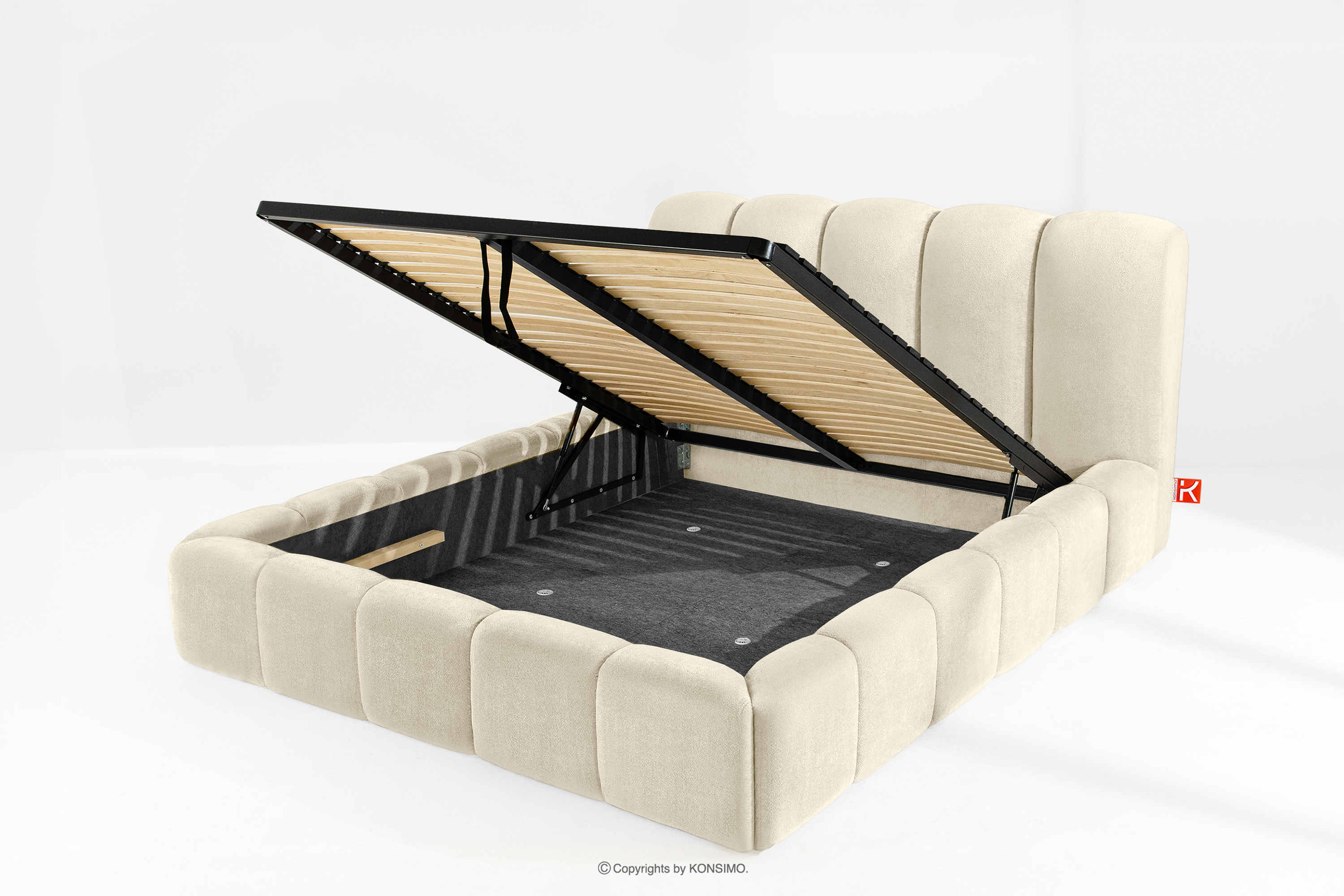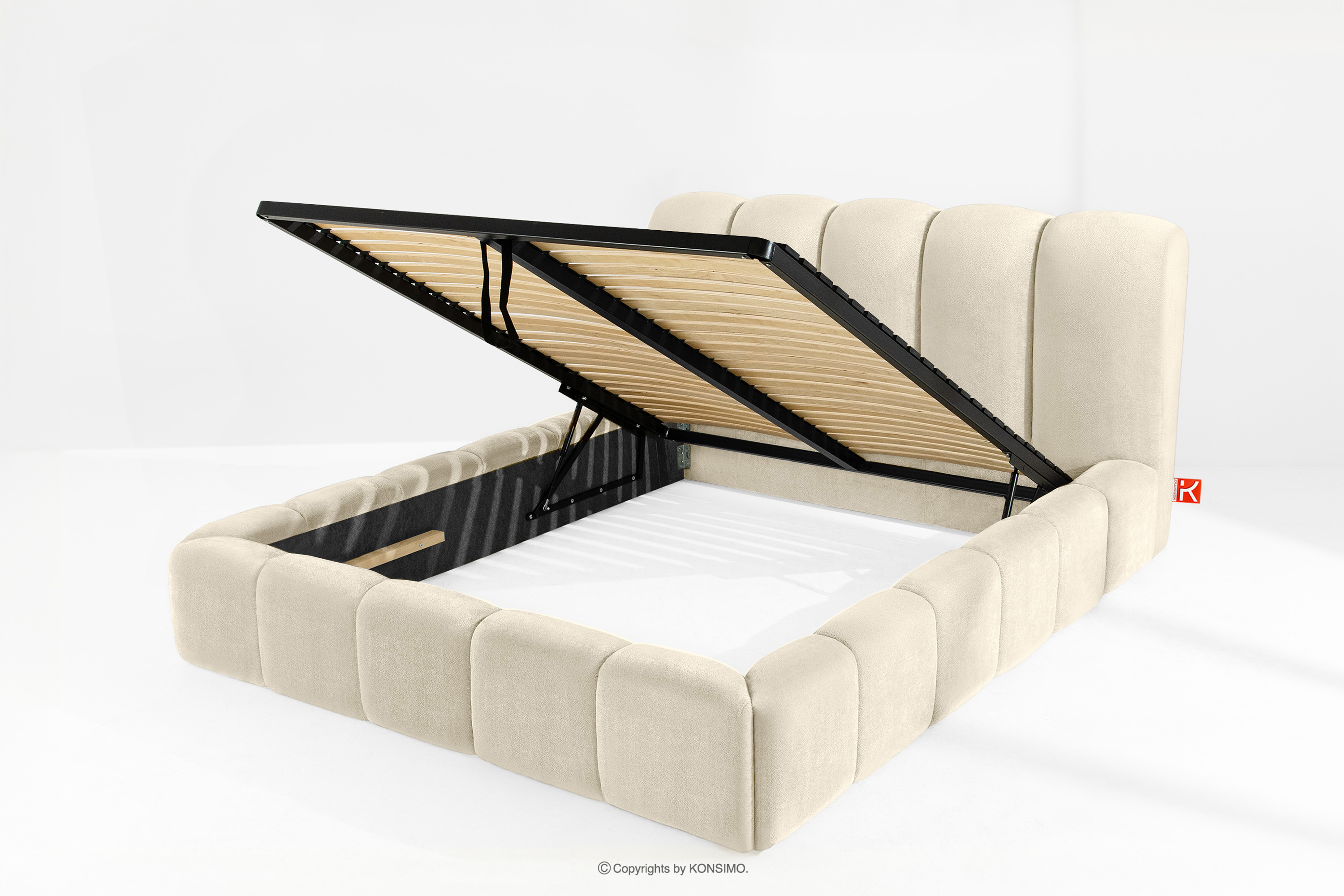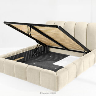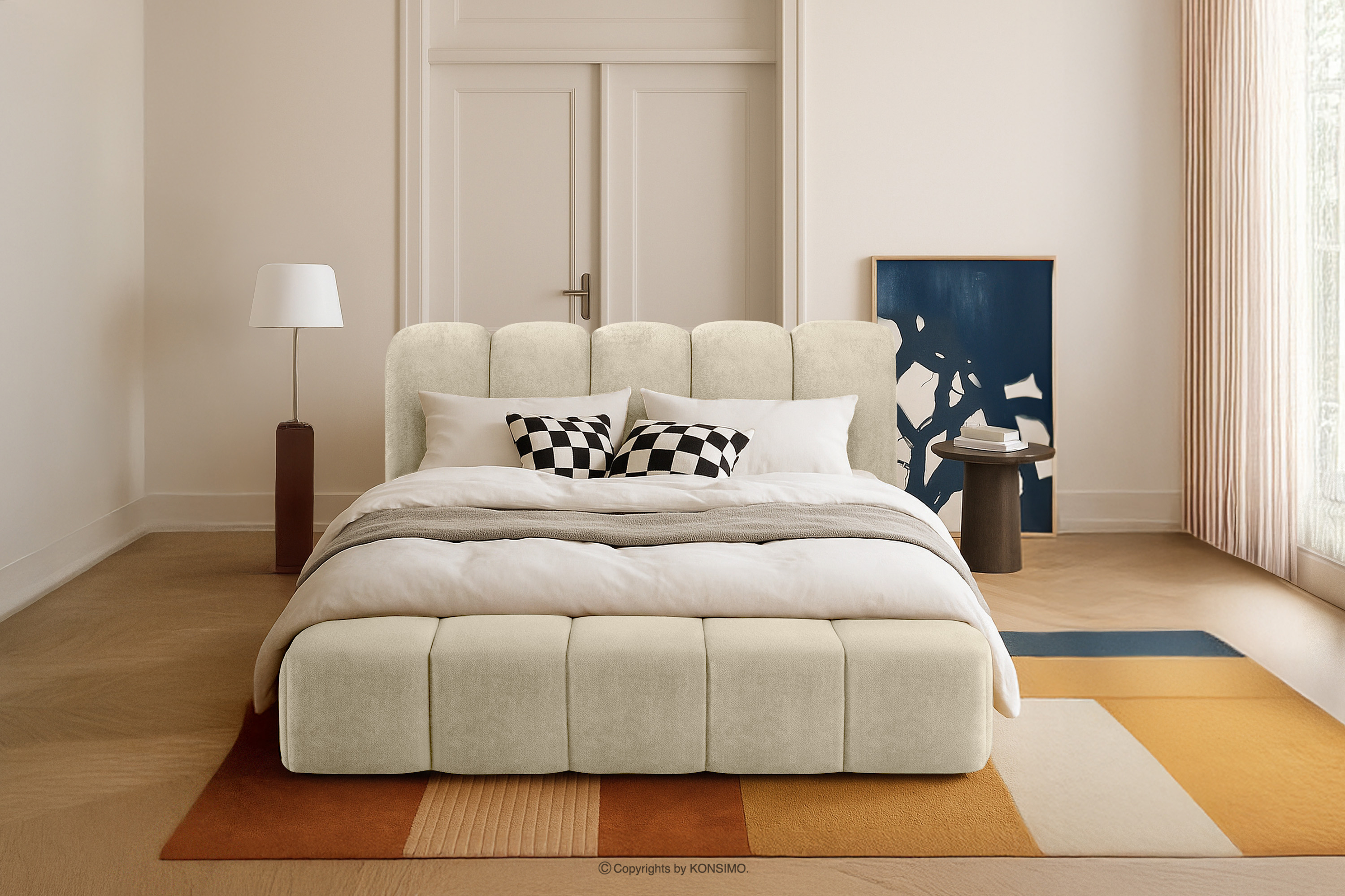 MERIDE zobacz całą kolekcję Łóżko tapicerowane 160 cm w stylu japandi z pikowaniem ecru- kolor ecru