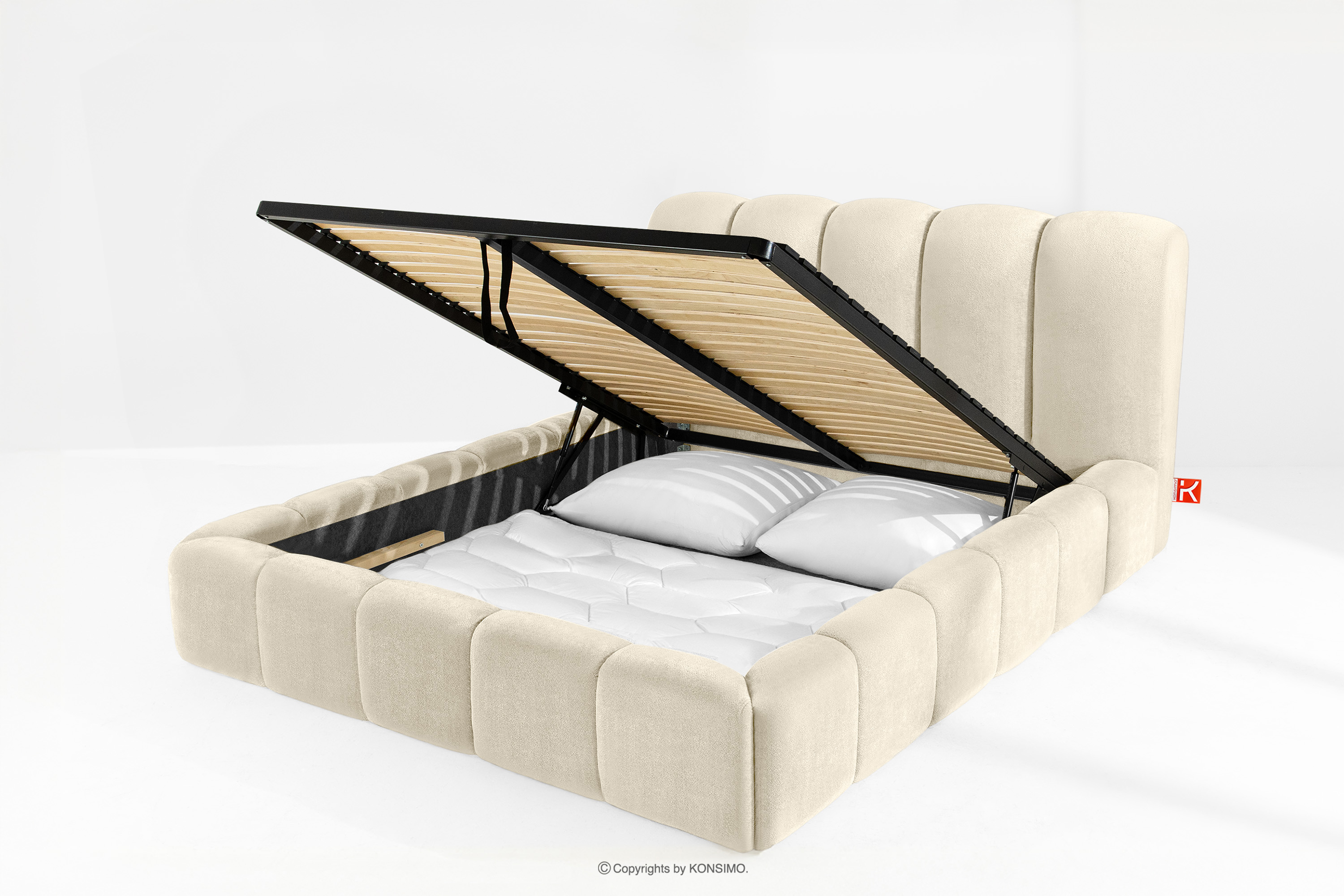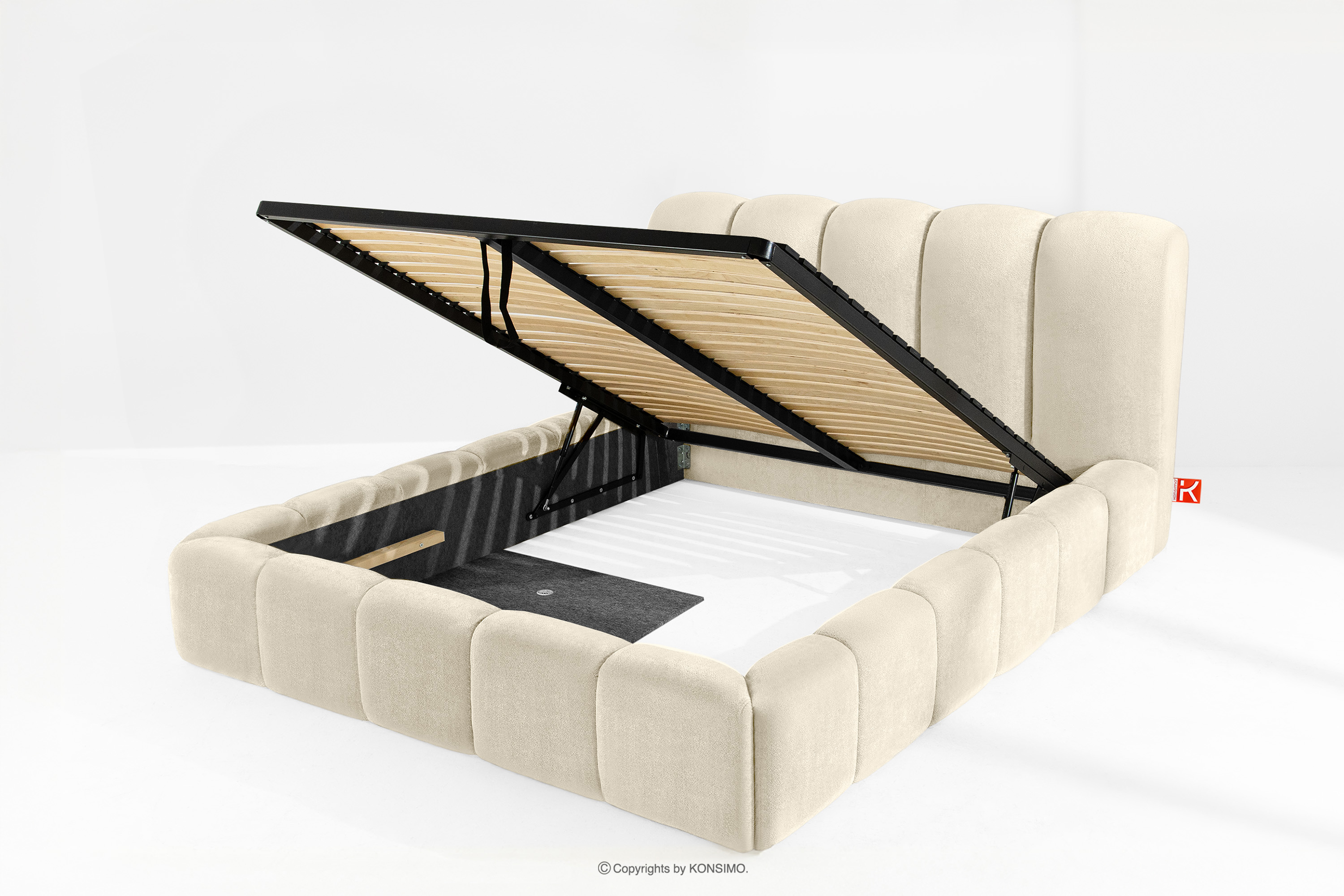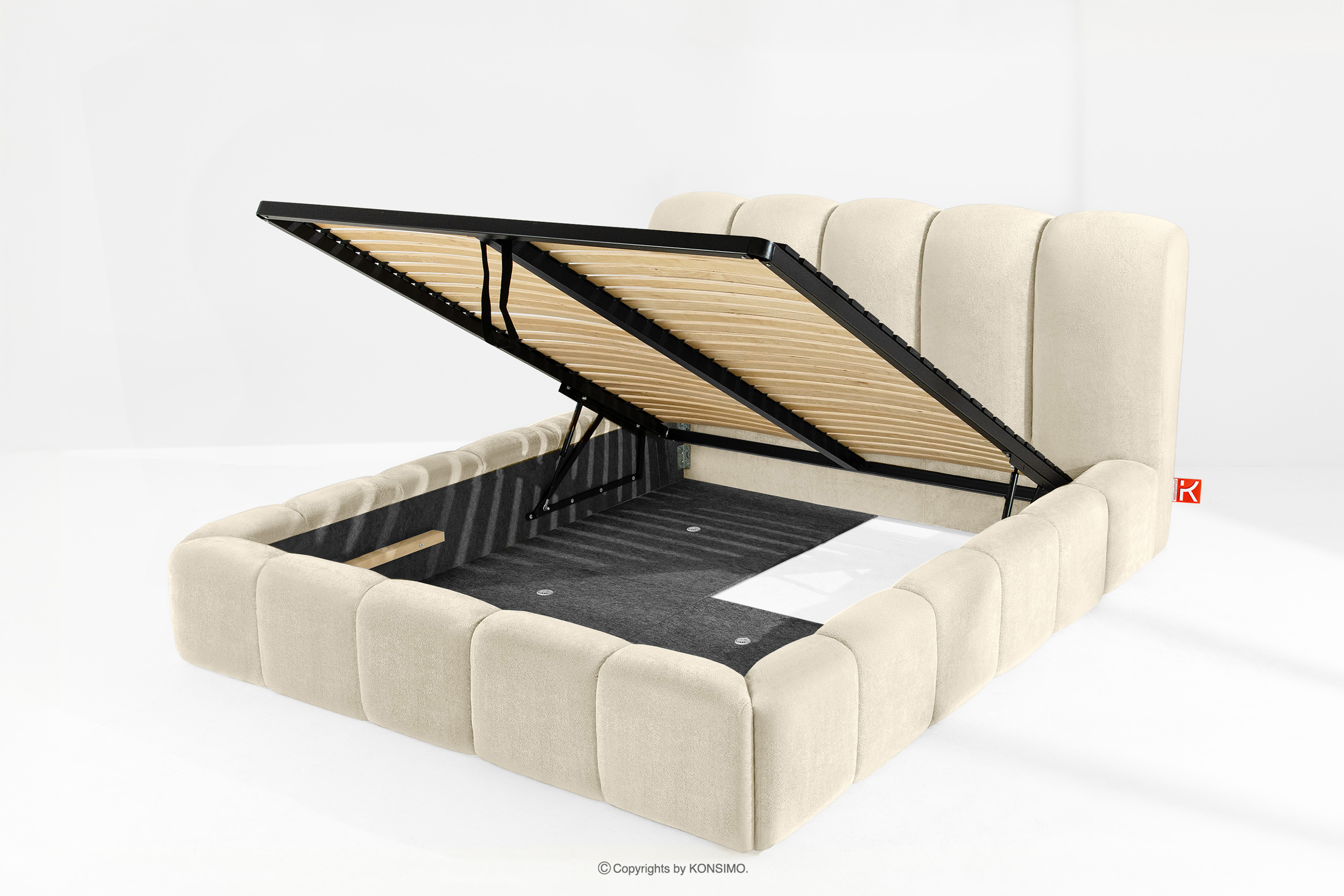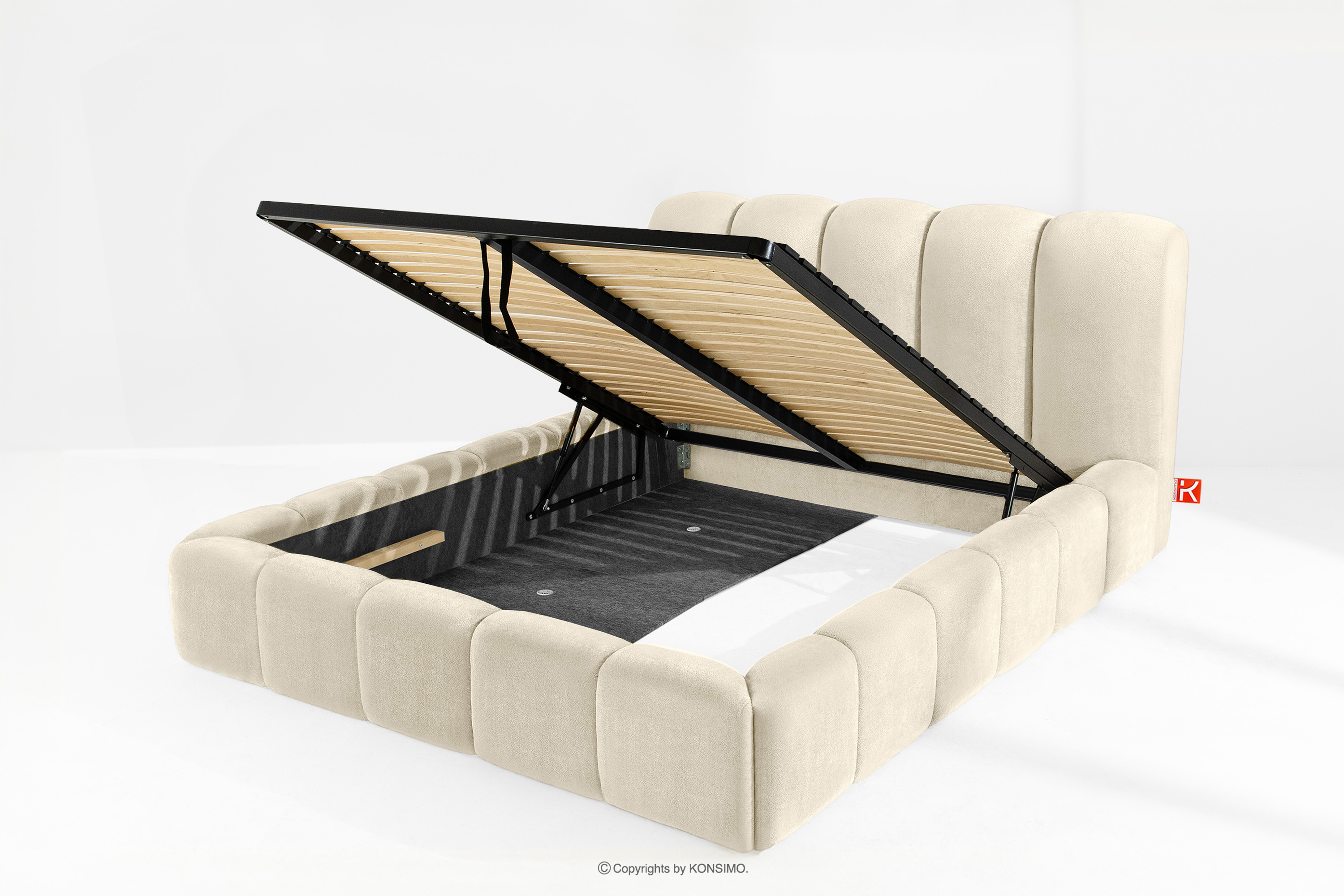 MERIDE zobacz całą kolekcję Łóżko tapicerowane 160 cm w stylu japandi z pikowaniem ecru- kolor ecru