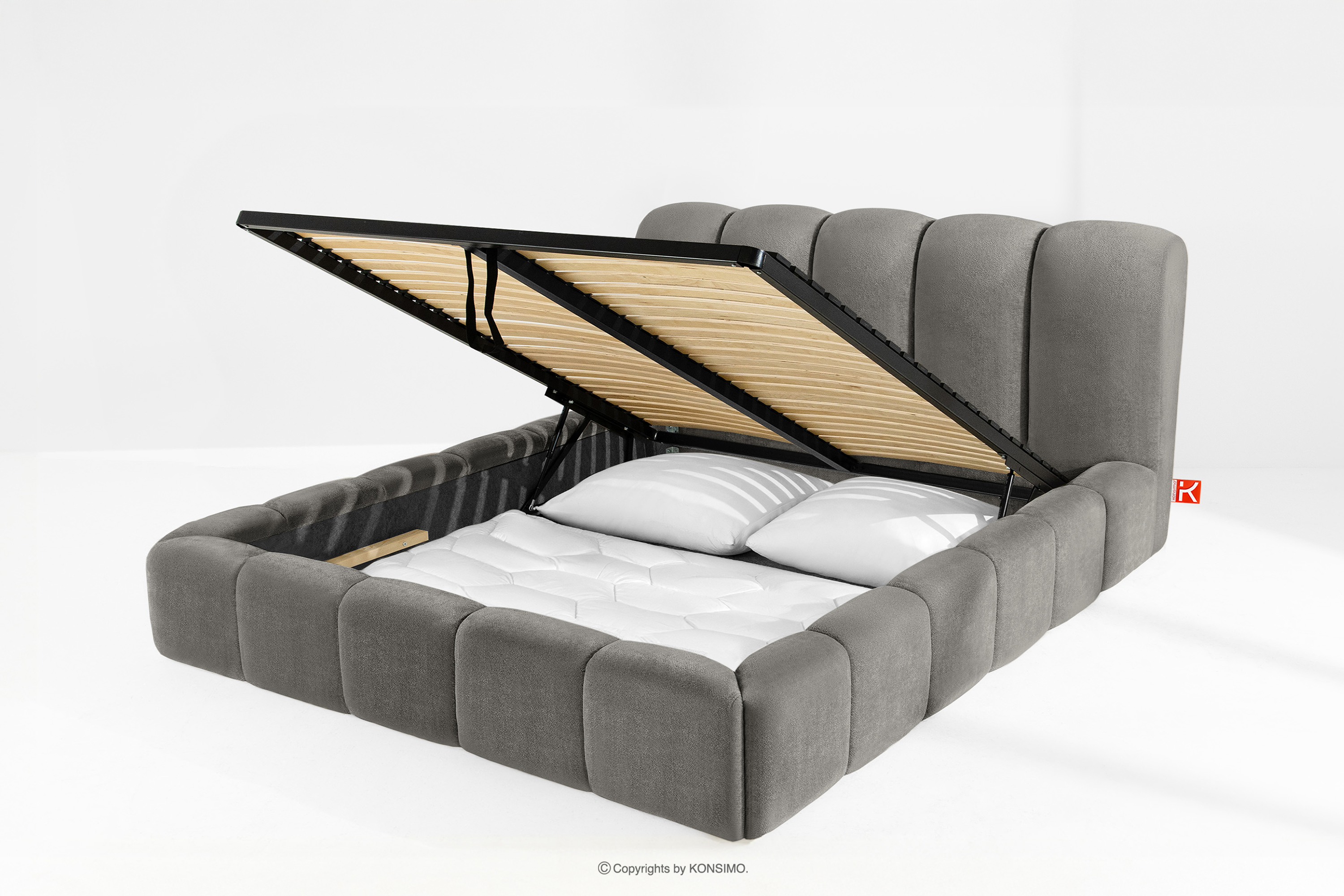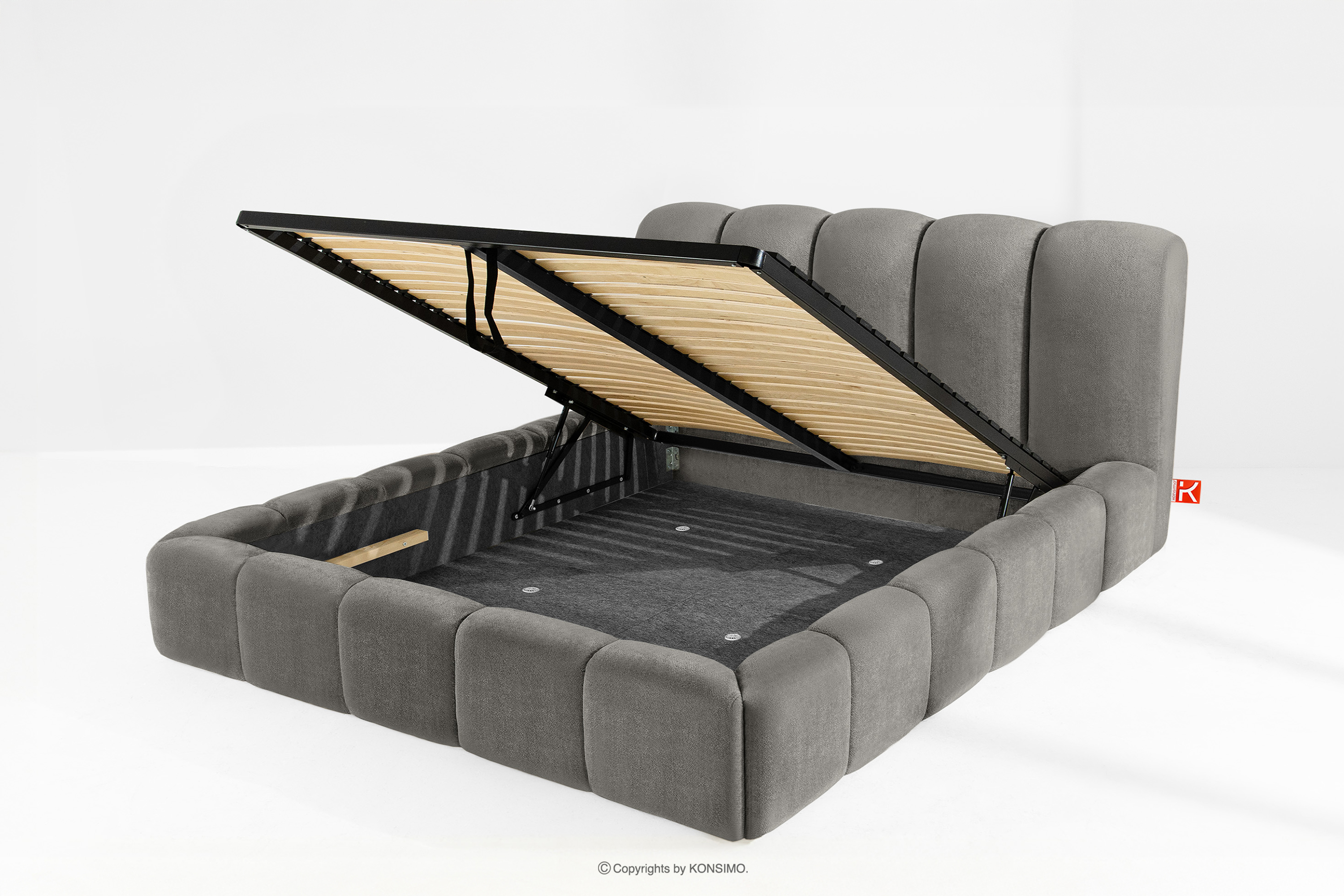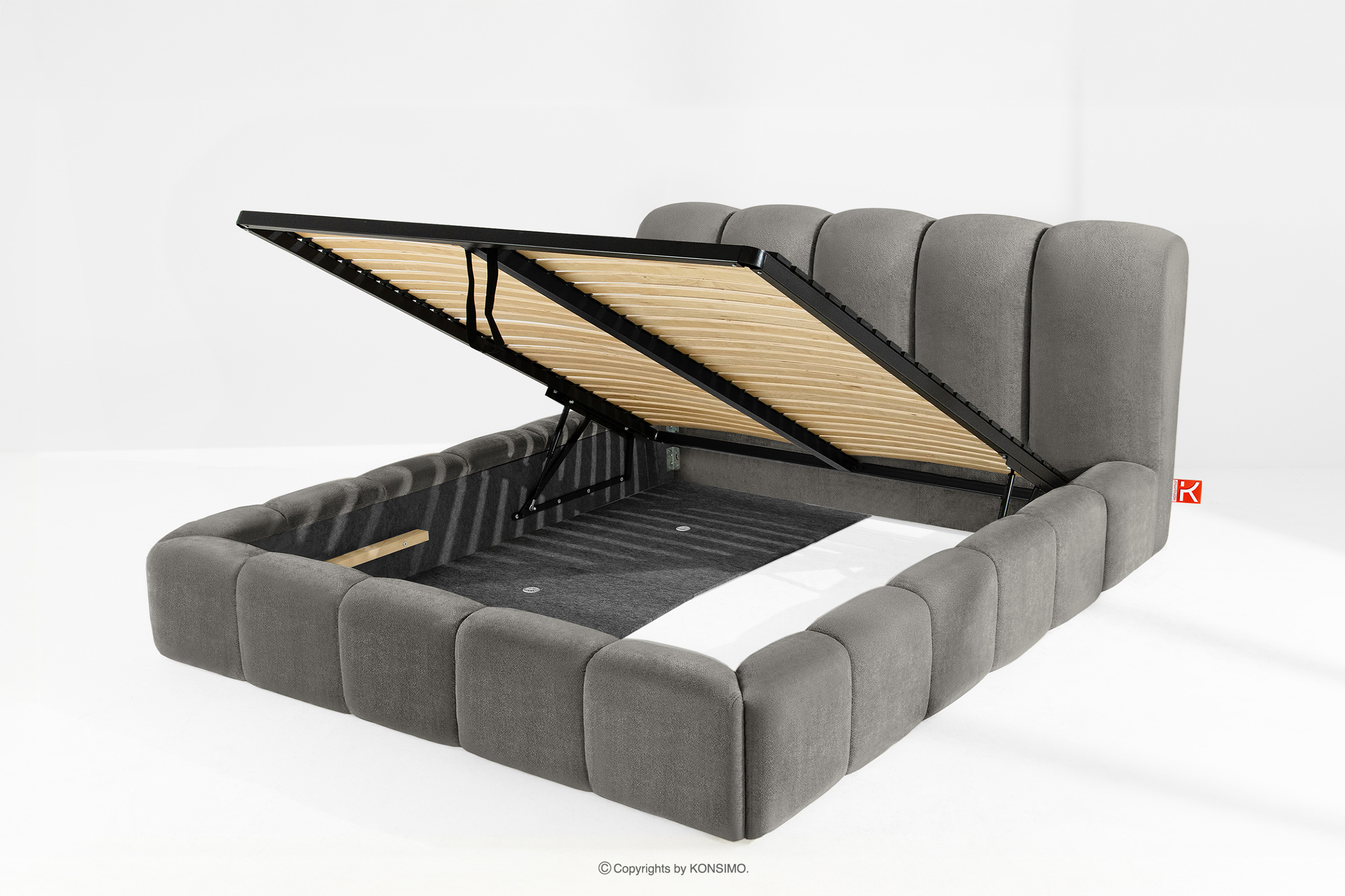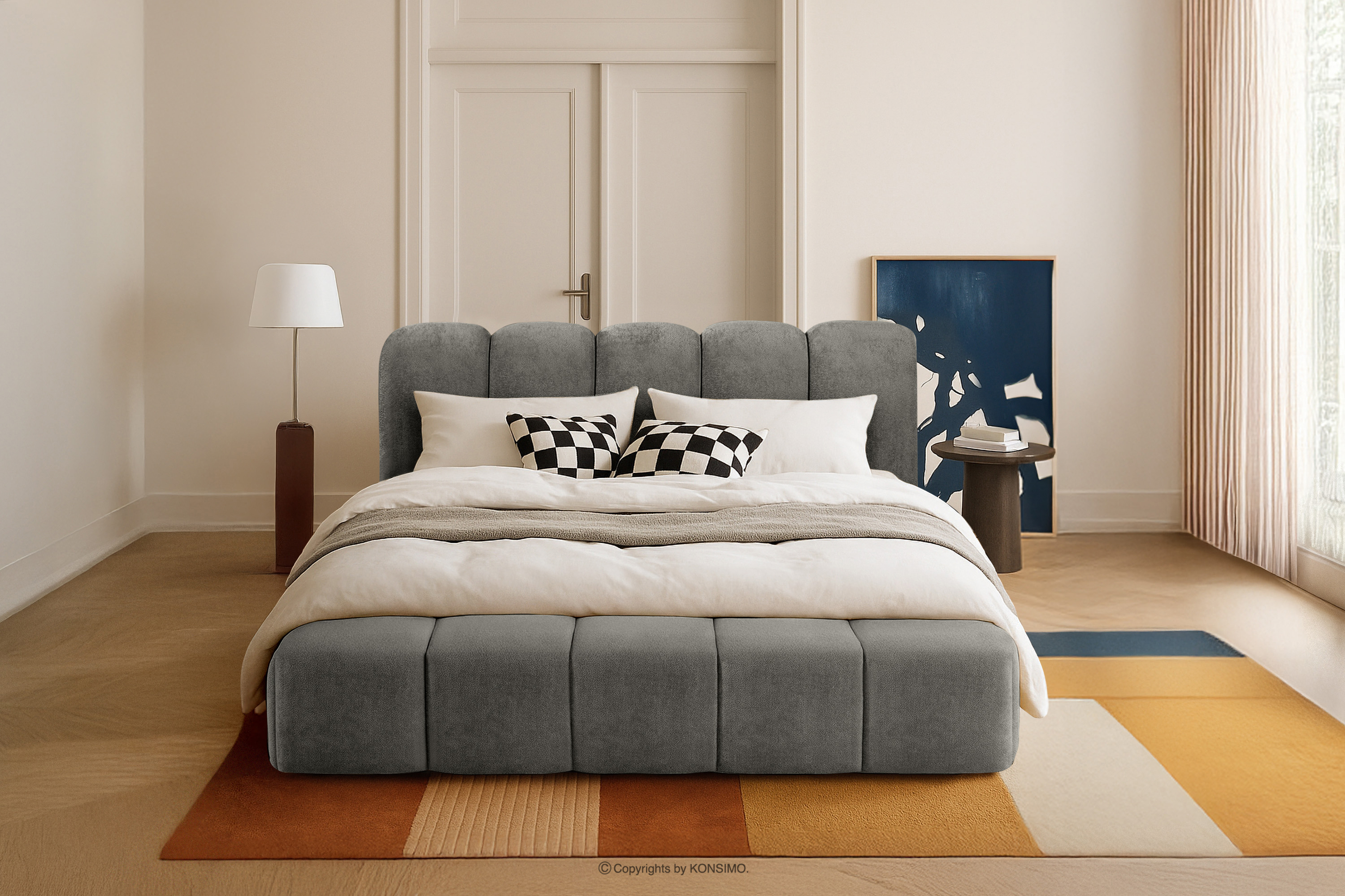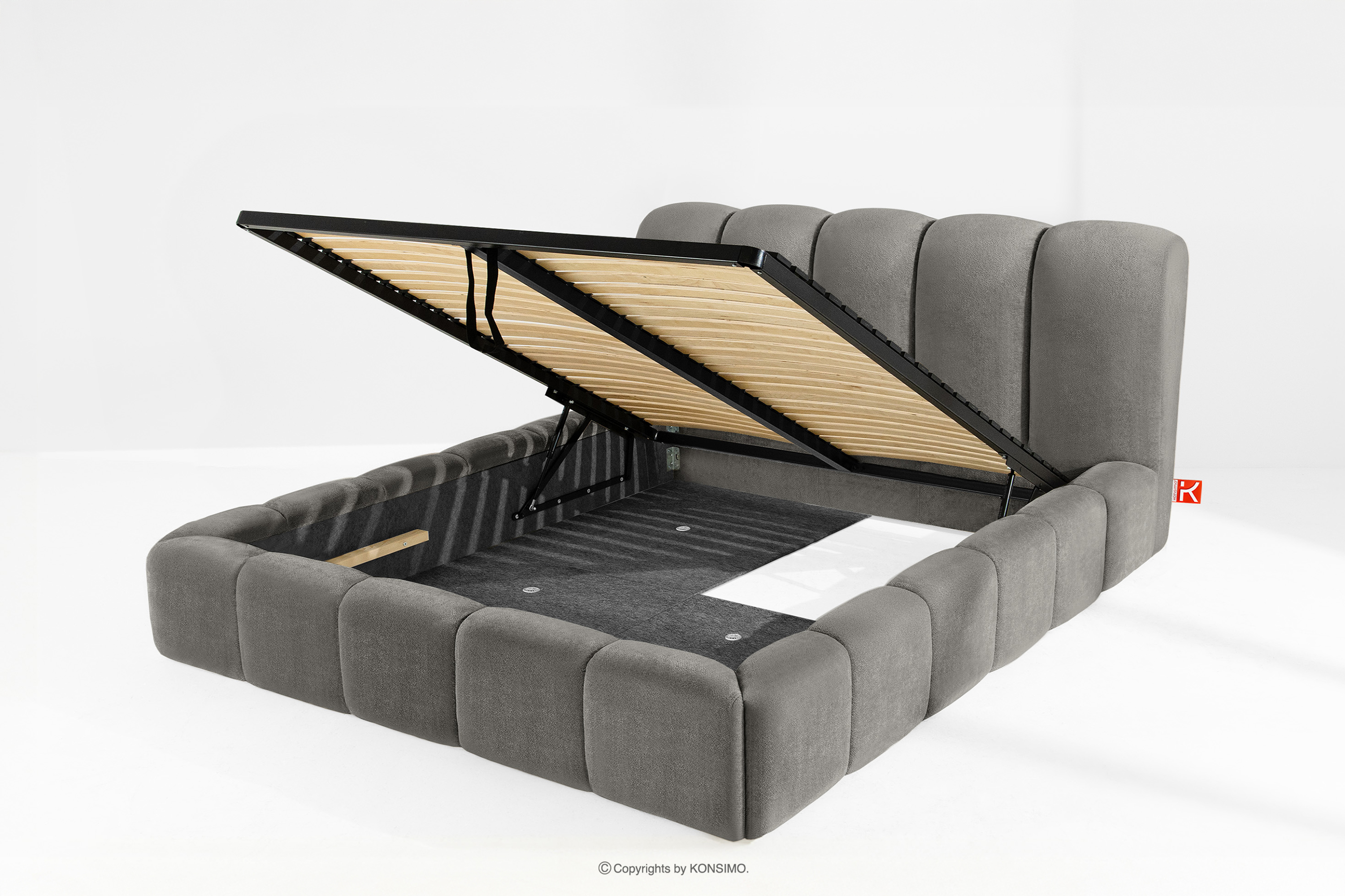 MERIDE Łóżko tapicerowane 180 cm z pikowaniem ciemny szary