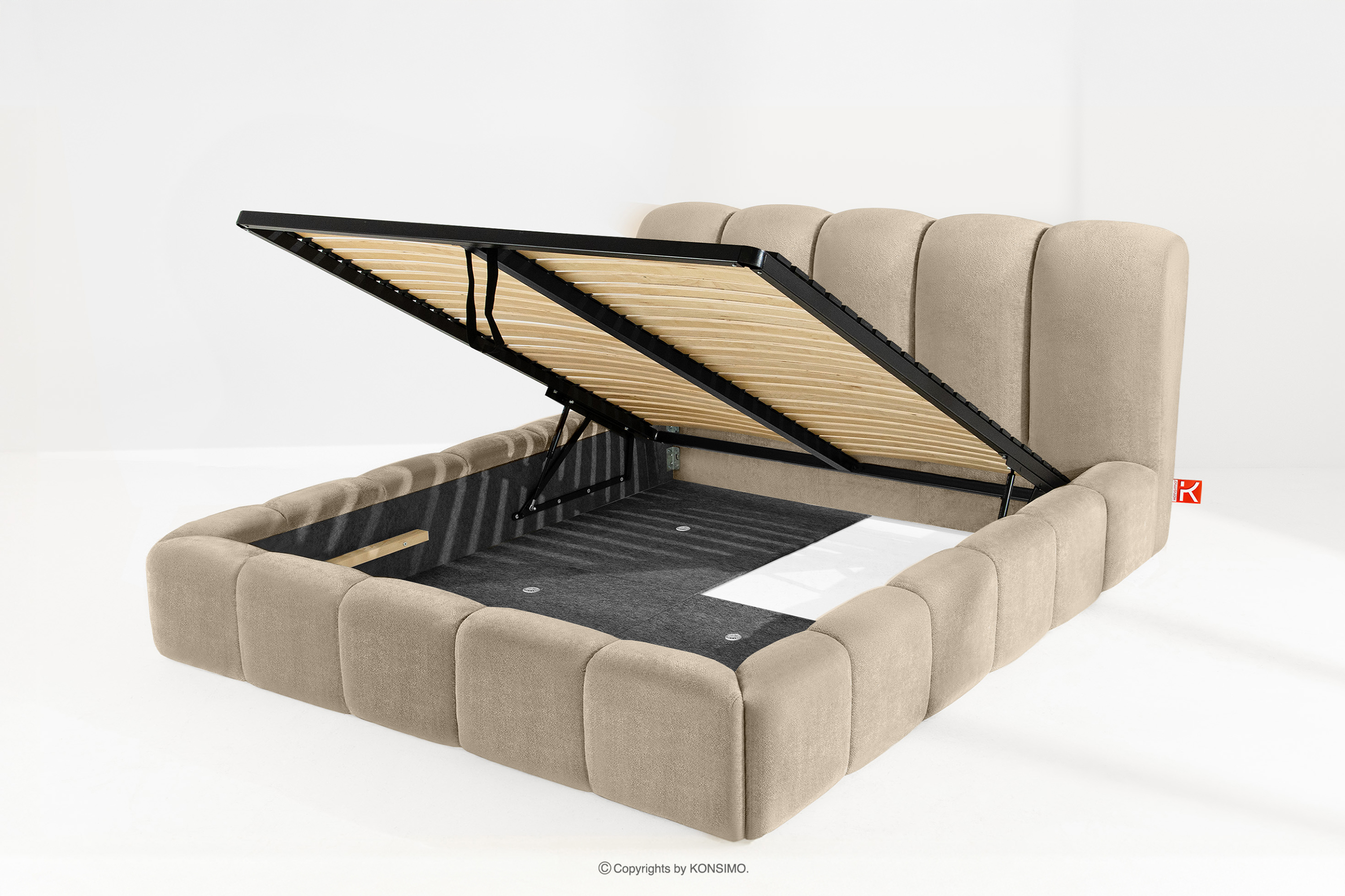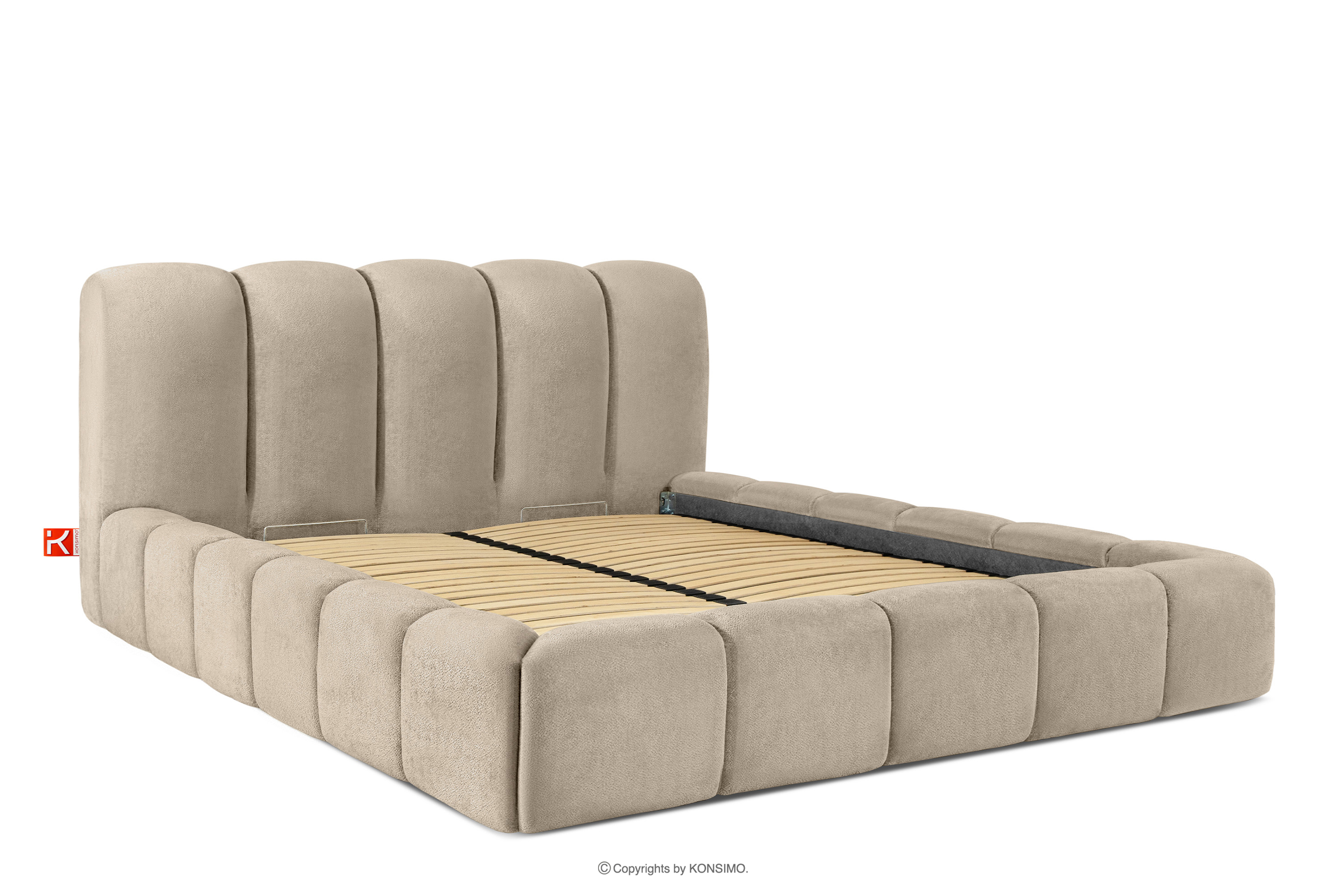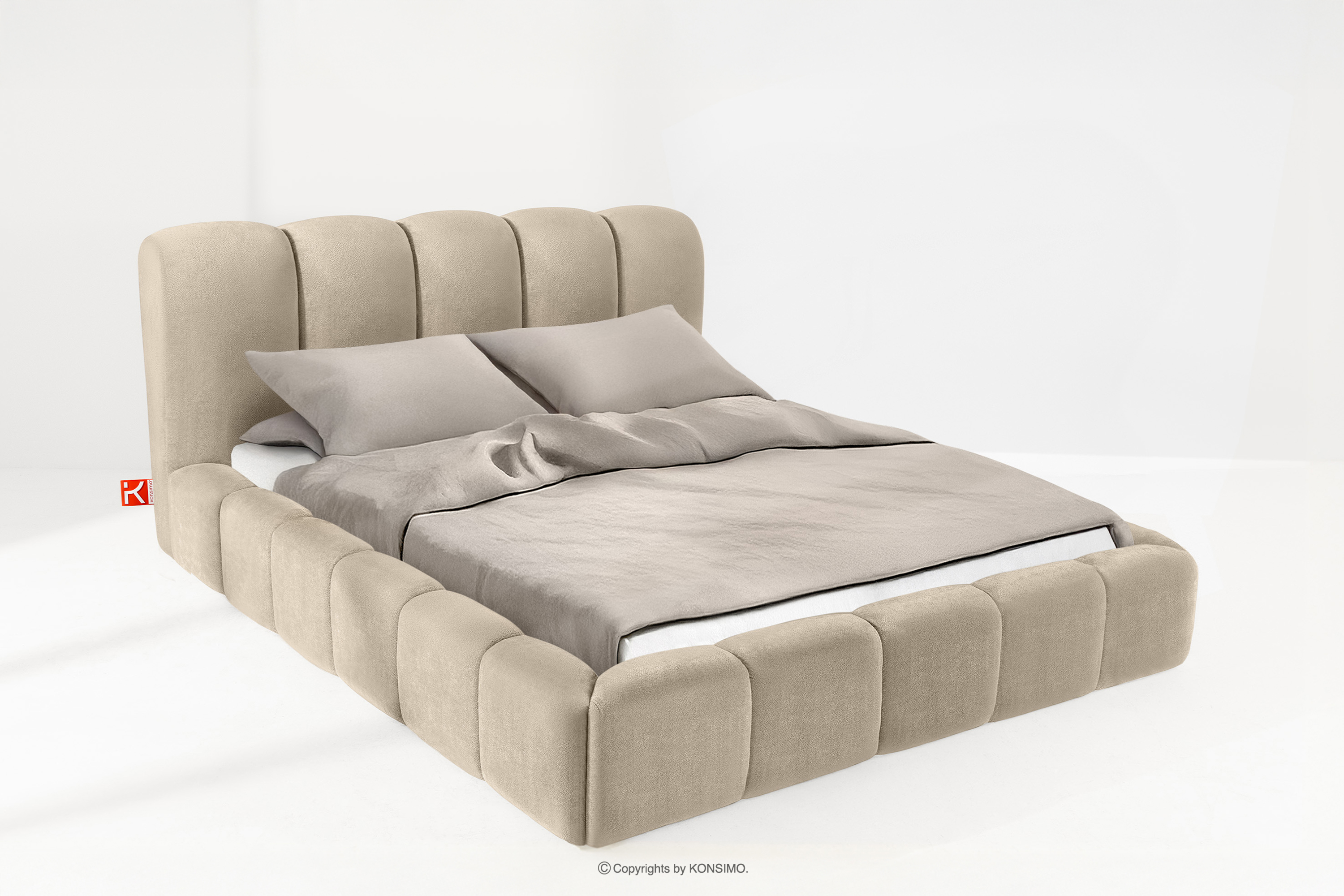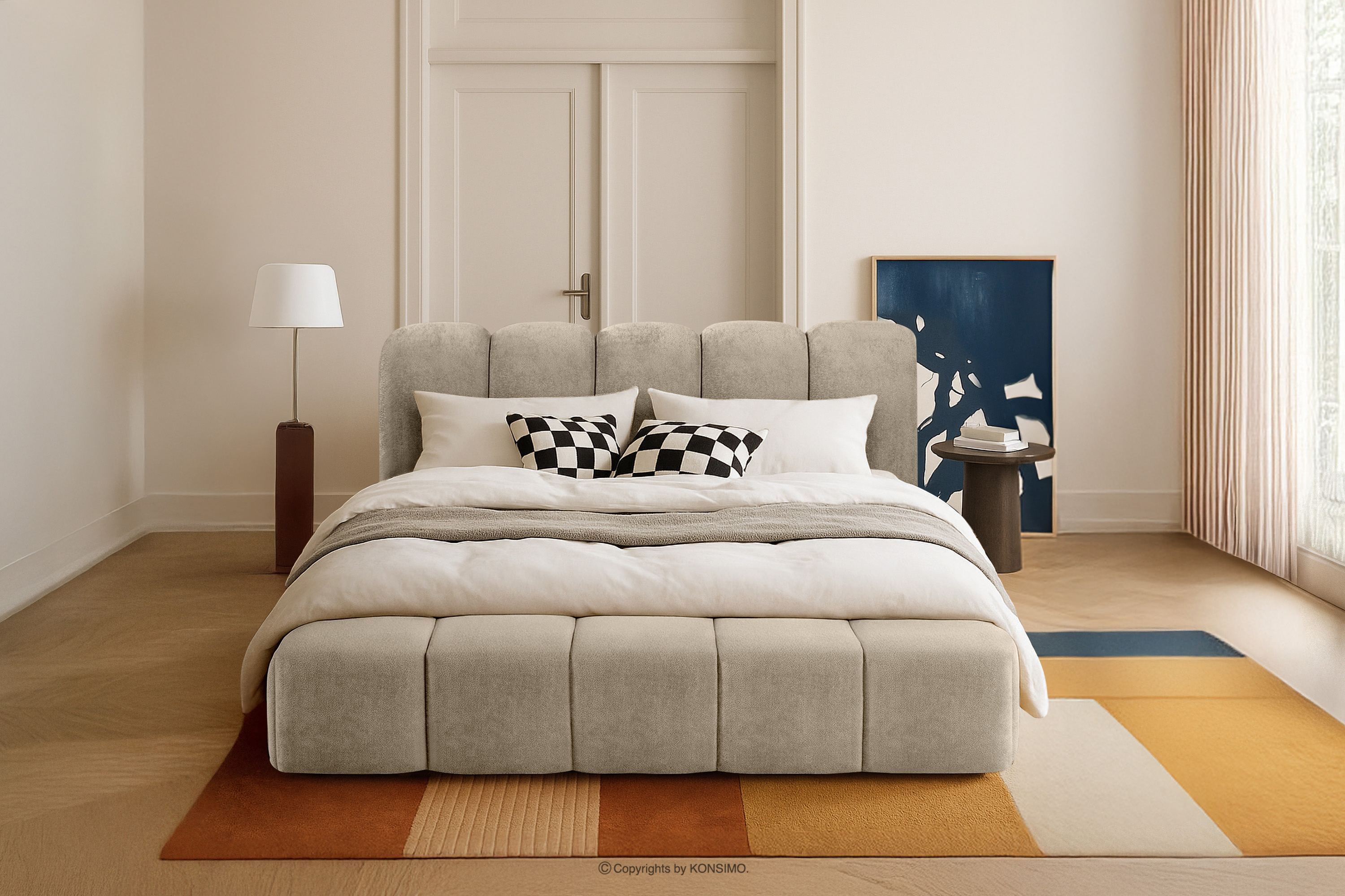 MERIDE zobacz całą kolekcję Łóżko tapicerowane 180 cm w stylu japandi z pikowaniem szarobeżowy- kolor szarobeżowy