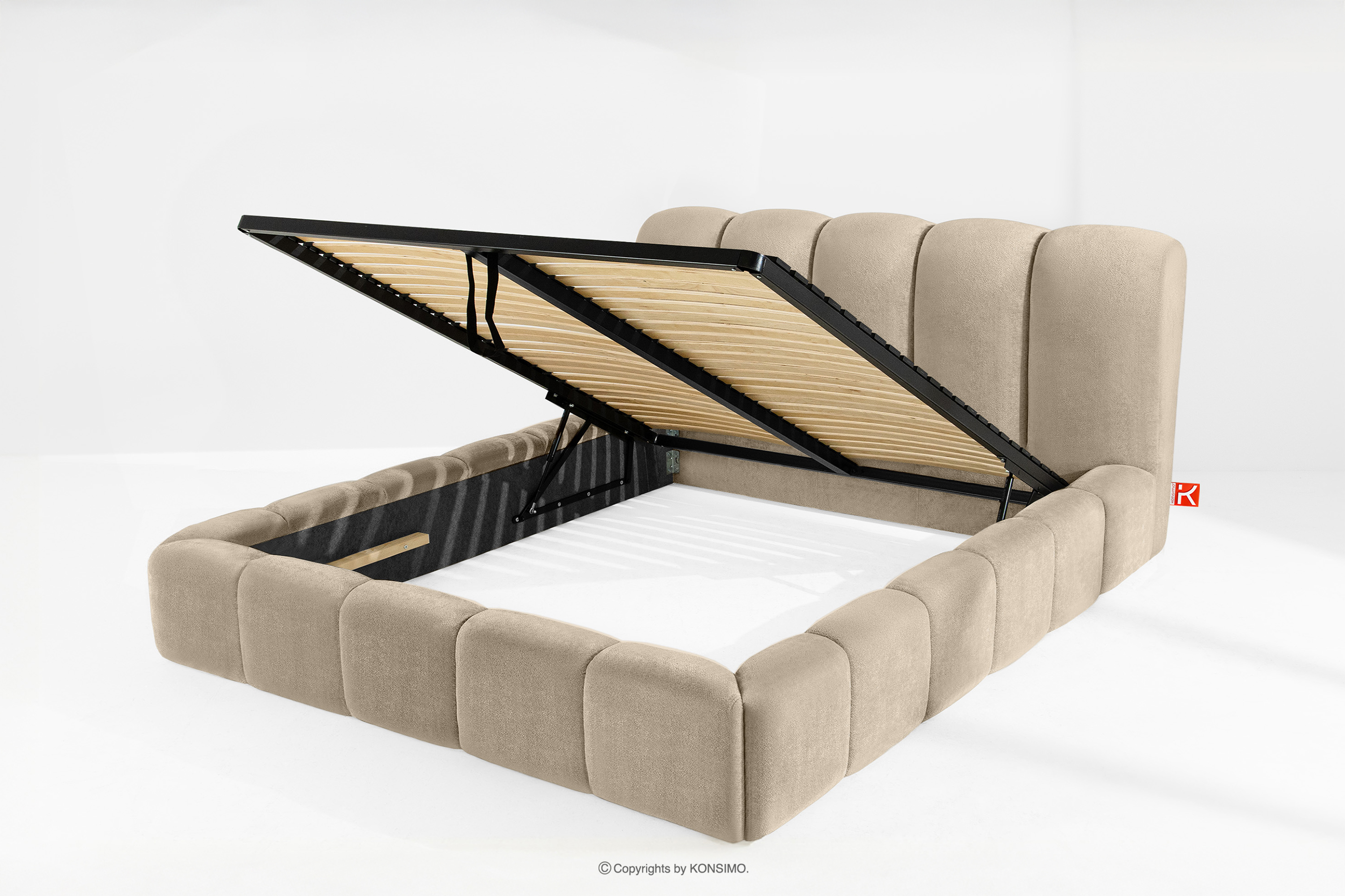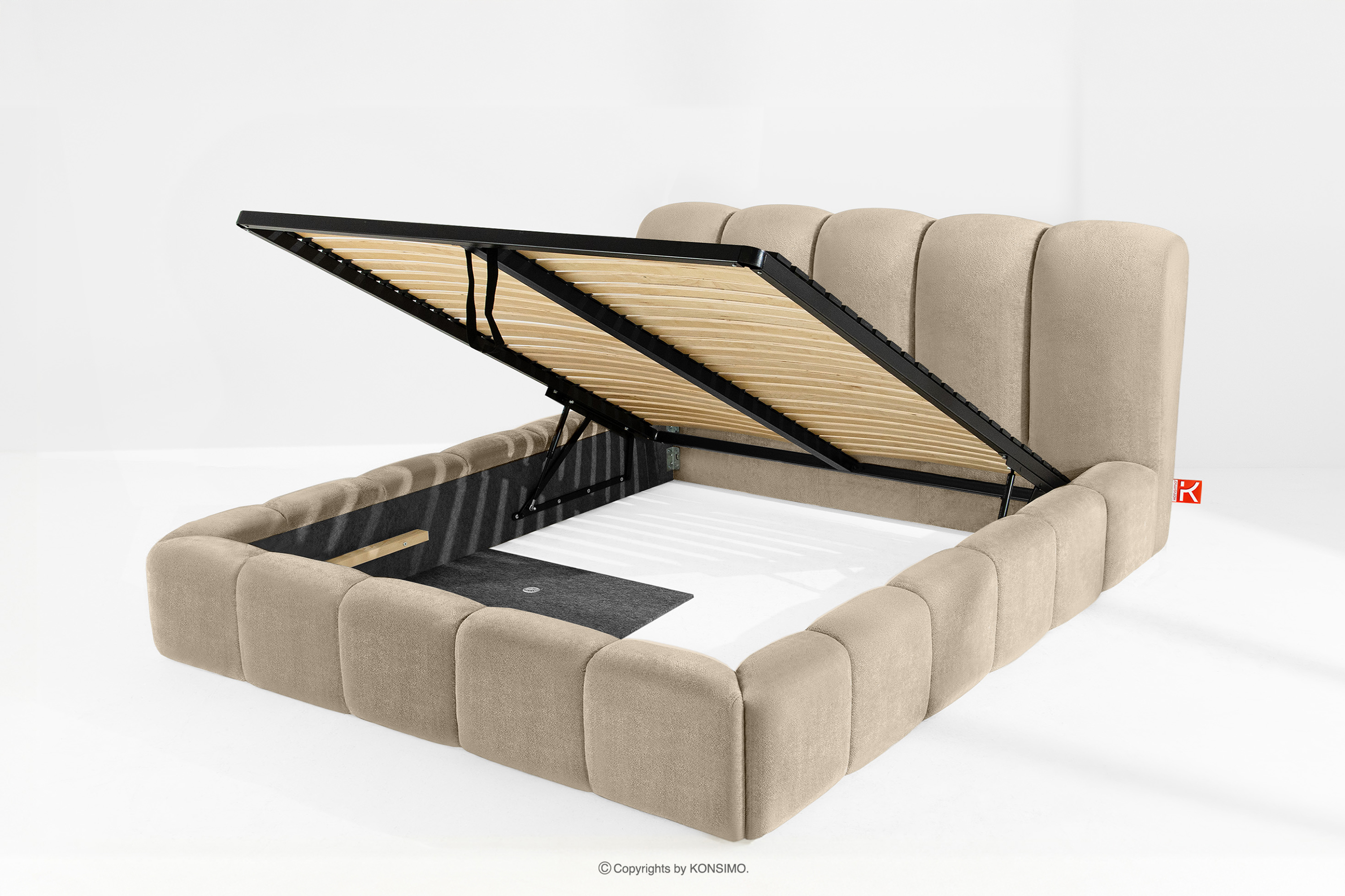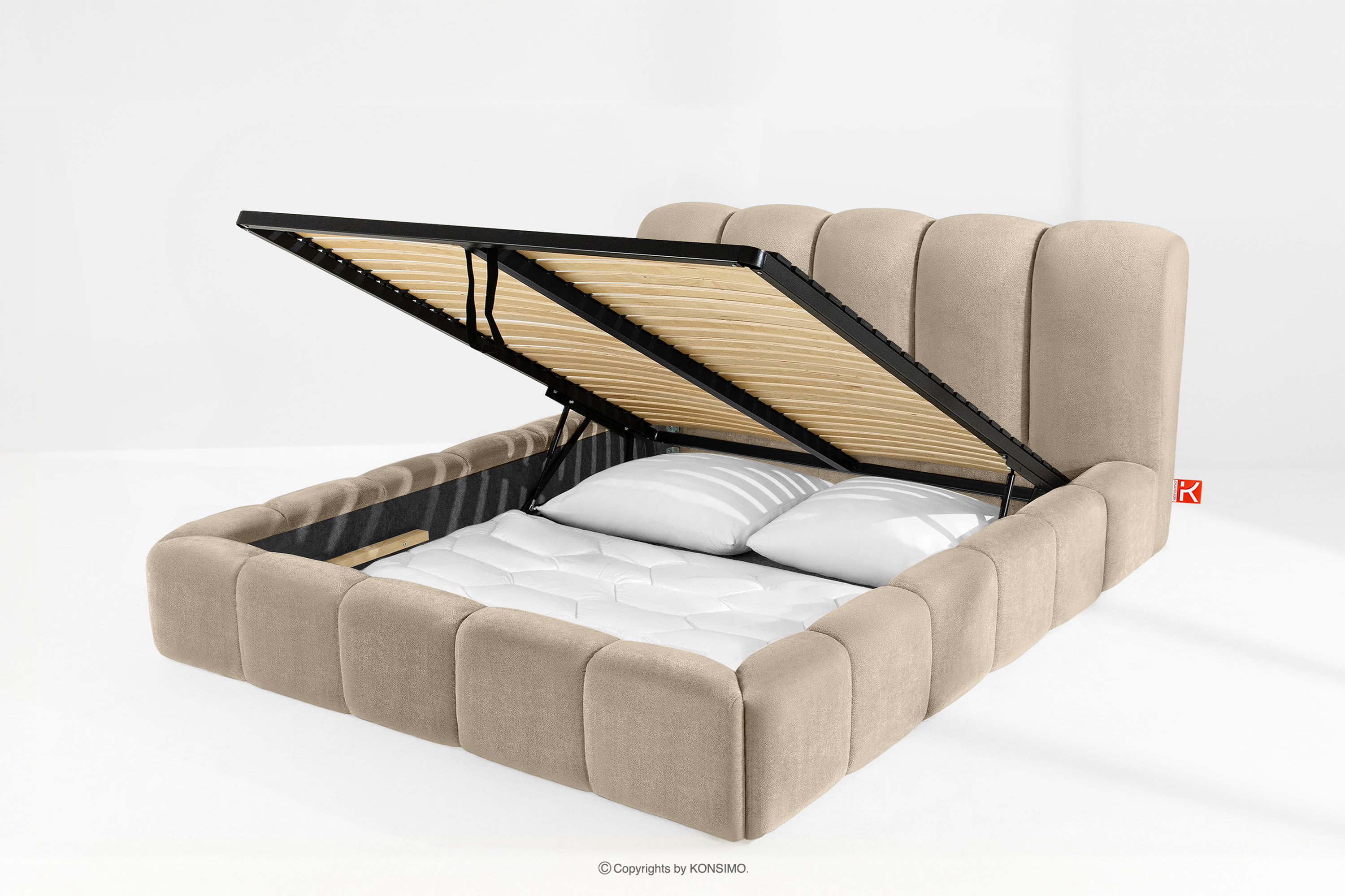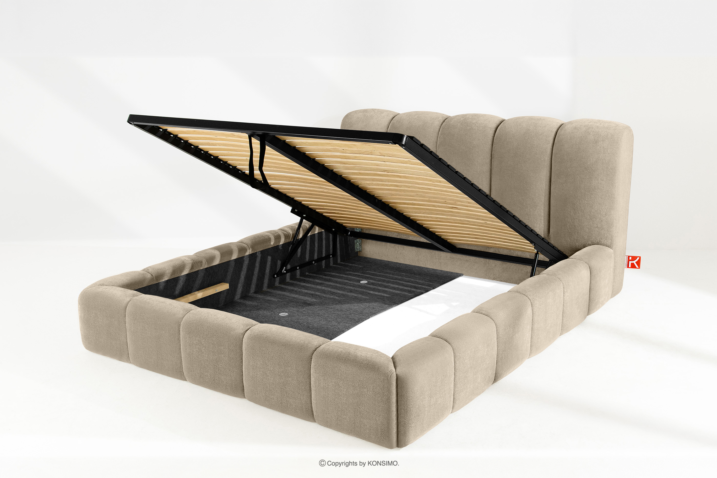 MERIDE zobacz całą kolekcję Łóżko tapicerowane 180 cm w stylu japandi z pikowaniem szarobeżowy- kolor szarobeżowy