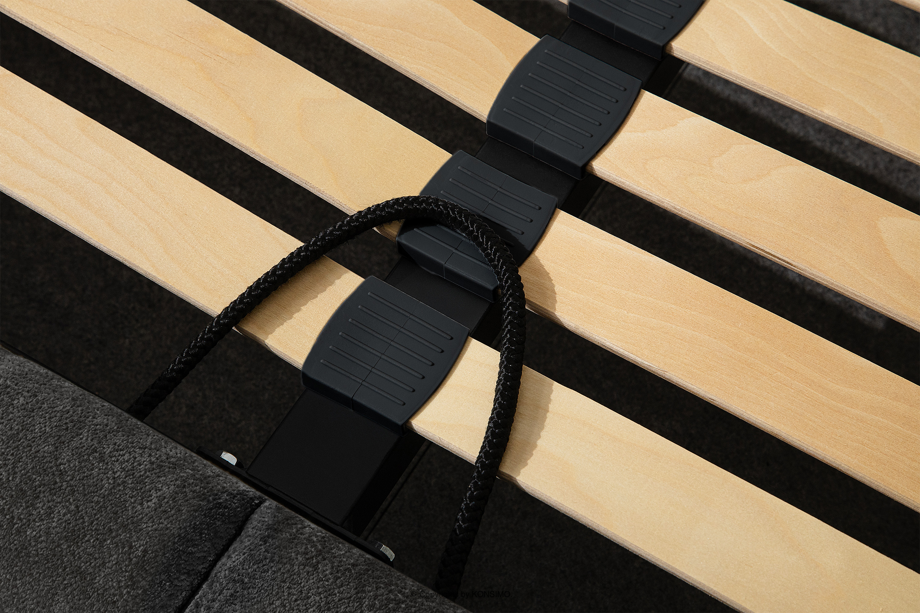 - Stelaż: metalowa rama, sprężynująca listwa drewniana, tak