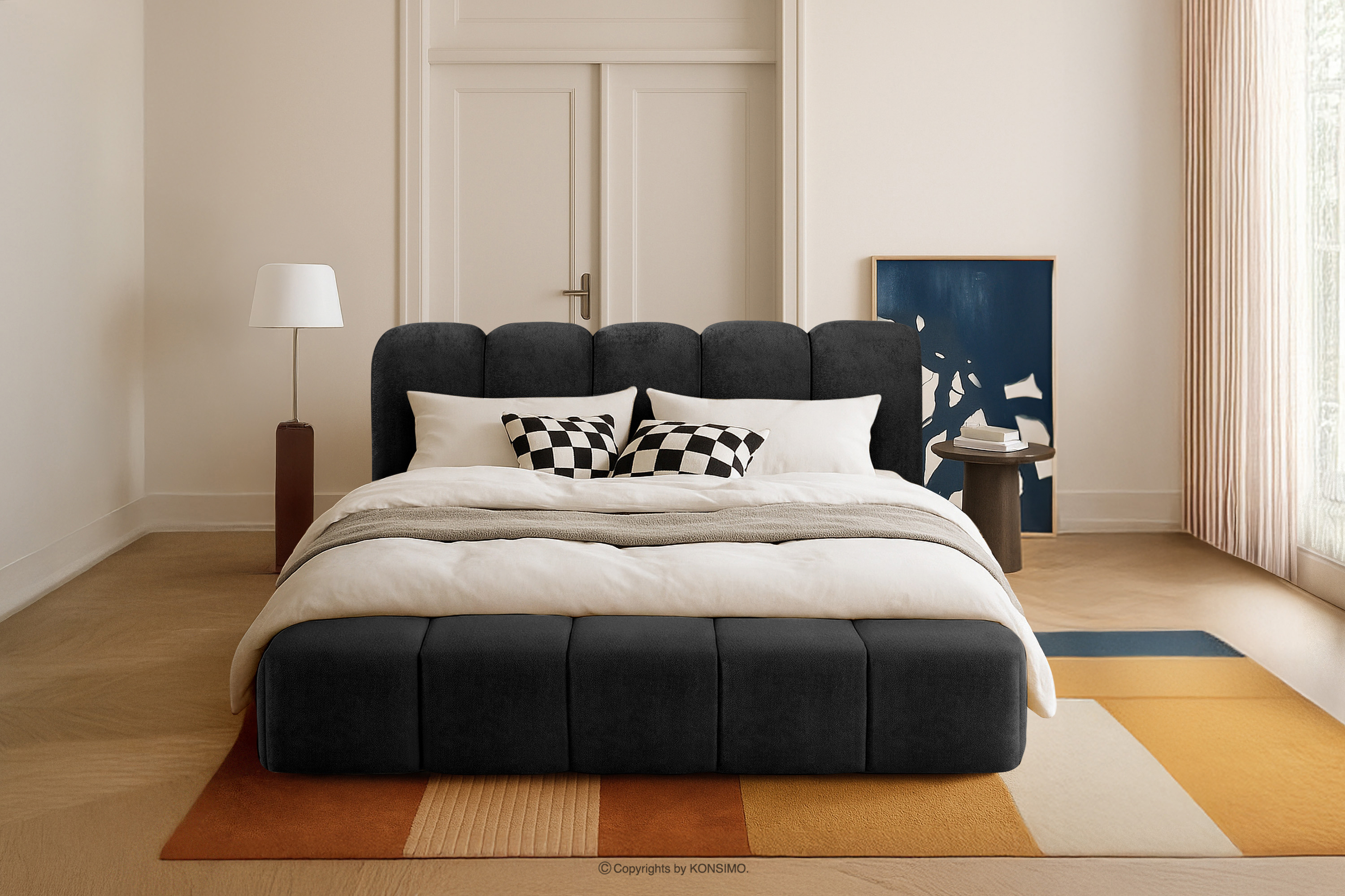 MERIDE zobacz całą kolekcję Łóżko tapicerowane 200 cm z pikowaniem antracytowy- kolor antracytowy