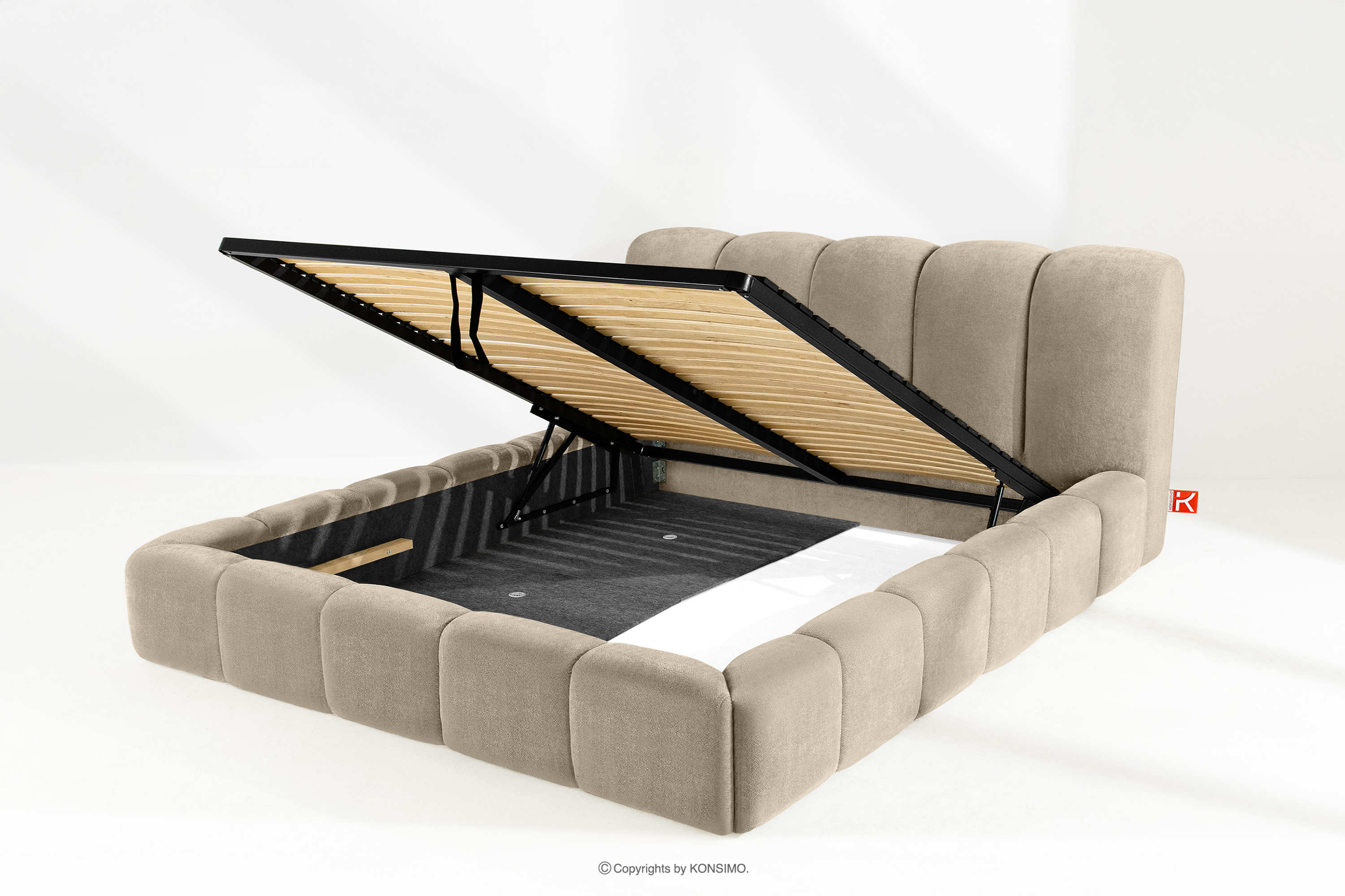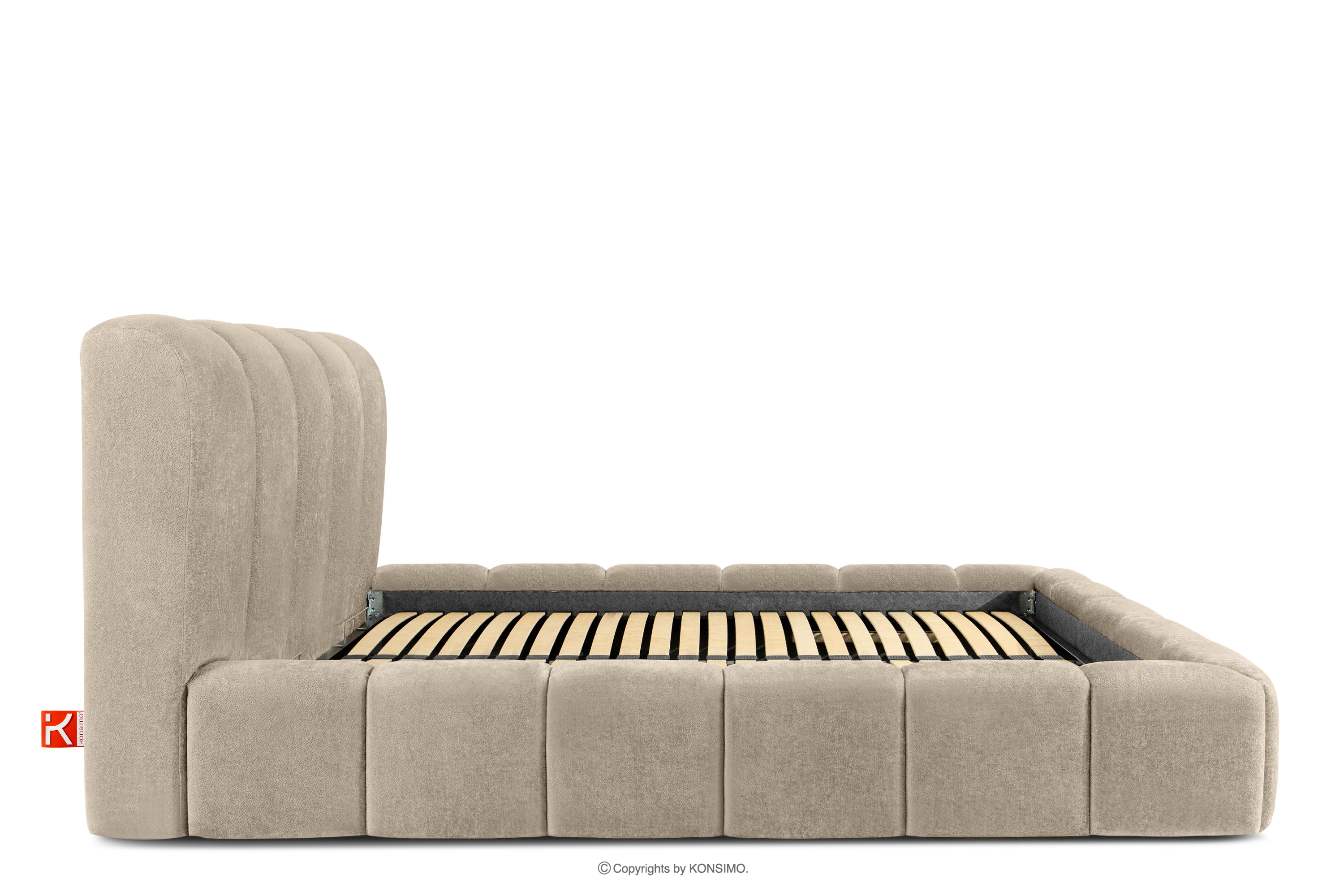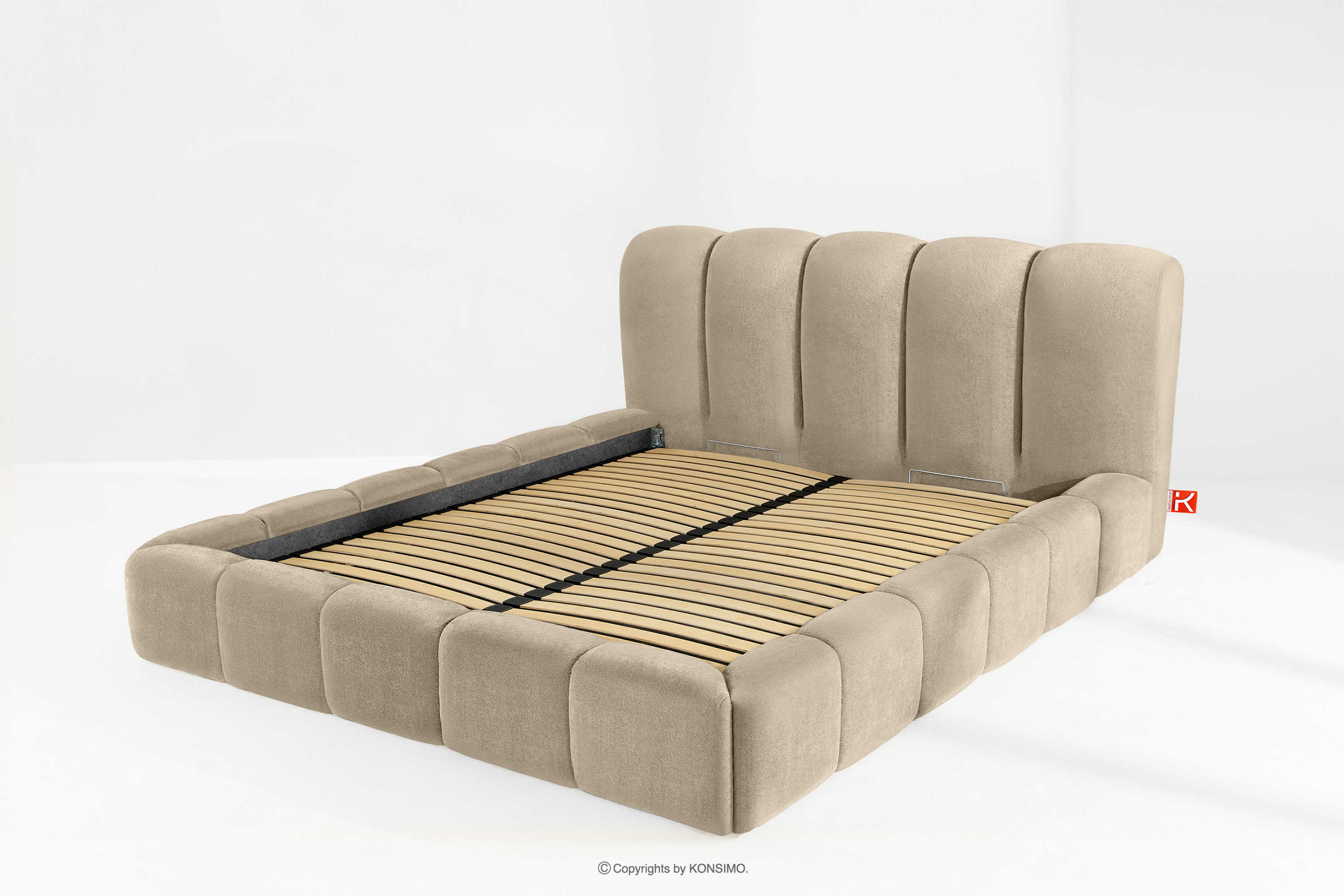 MERIDE zobacz całą kolekcję Łóżko tapicerowane 200 cm w stylu japandi z pikowaniem szarobeżowy- kolor szarobeżowy