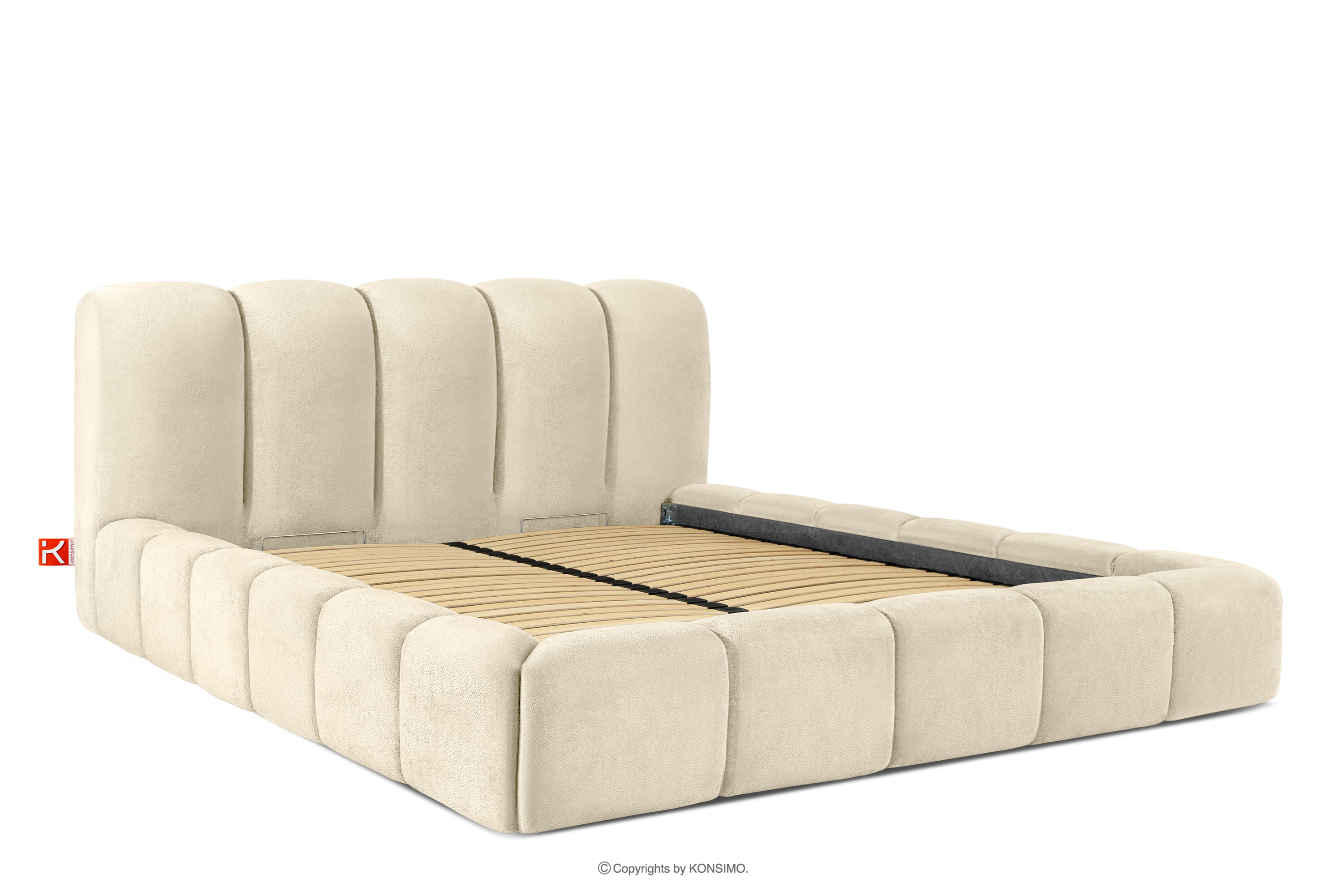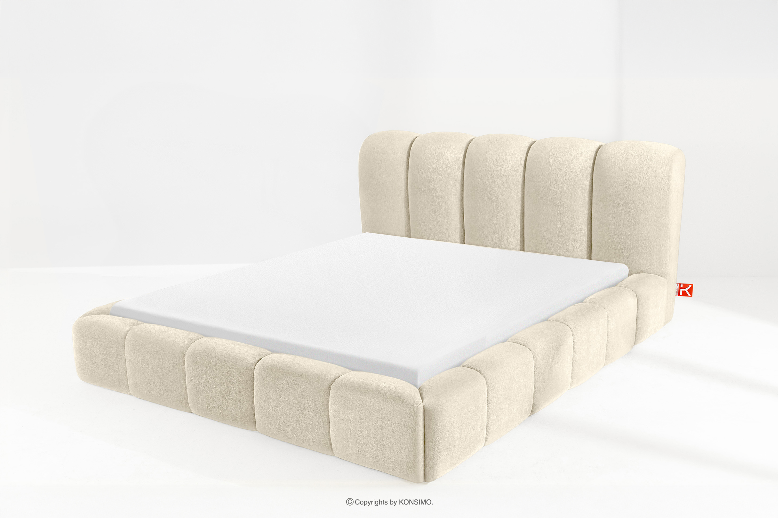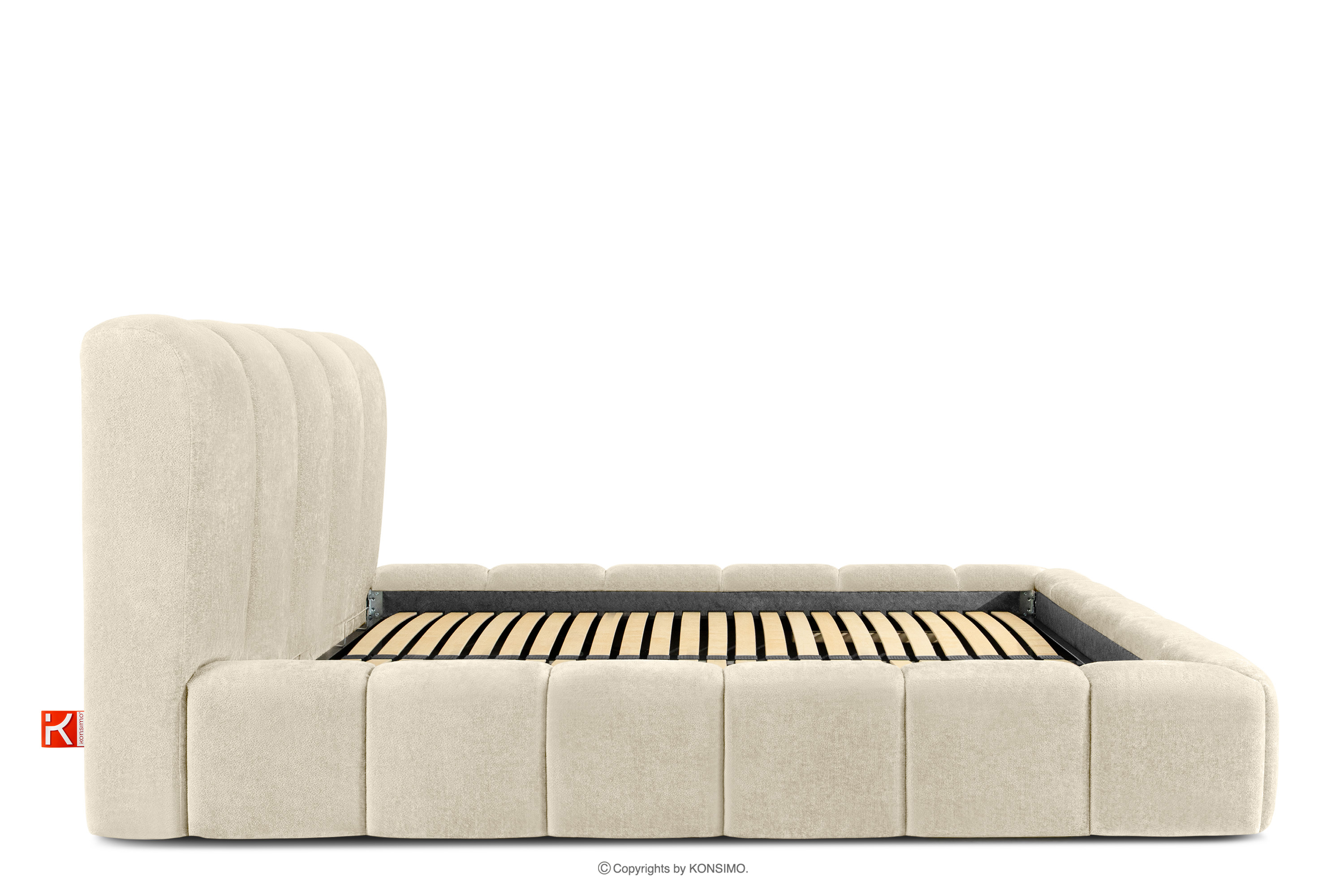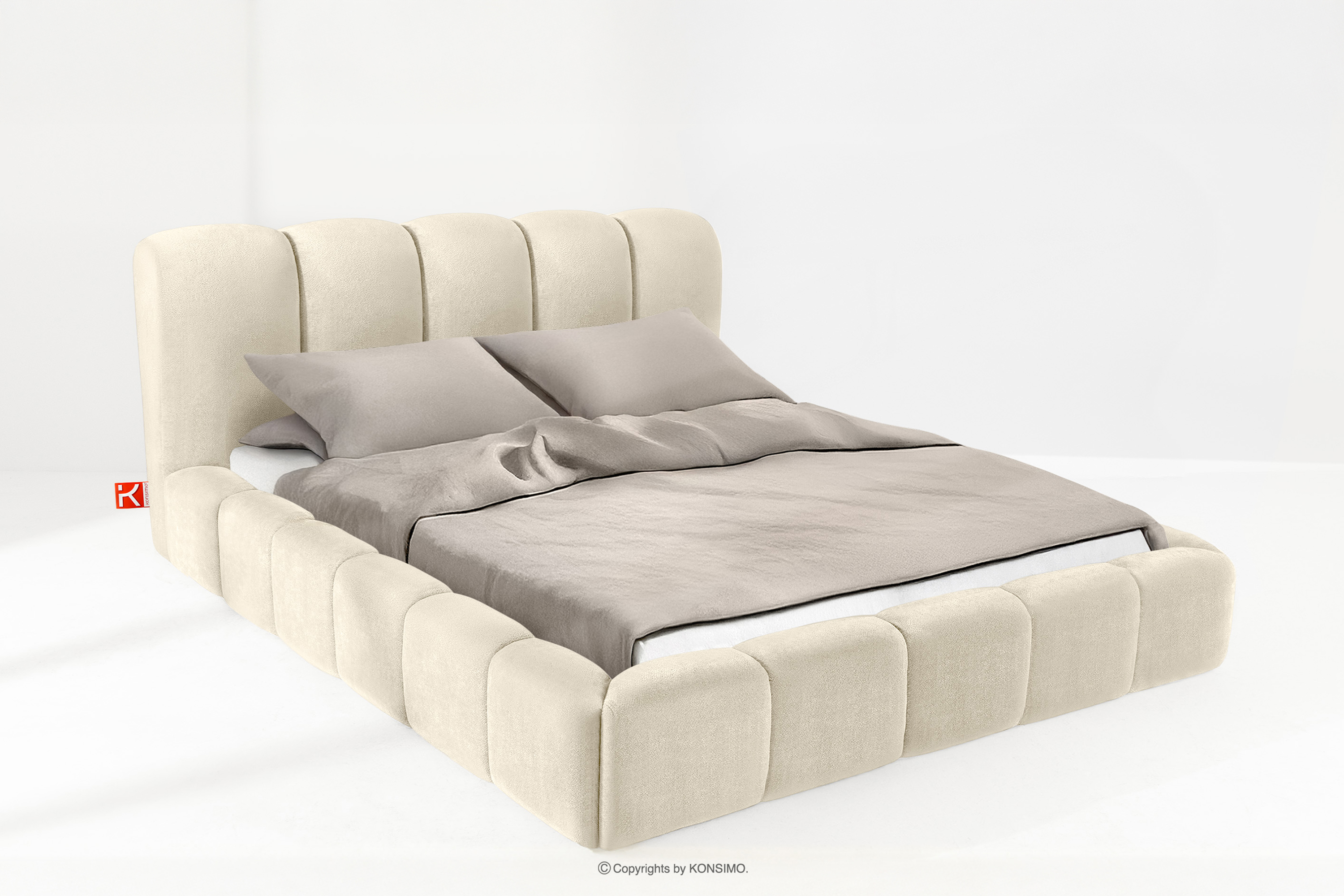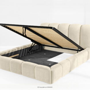 MERIDE zobacz całą kolekcję Łóżko tapicerowane 200 cm w stylu japandi z pikowaniem ecru- kolor ecru