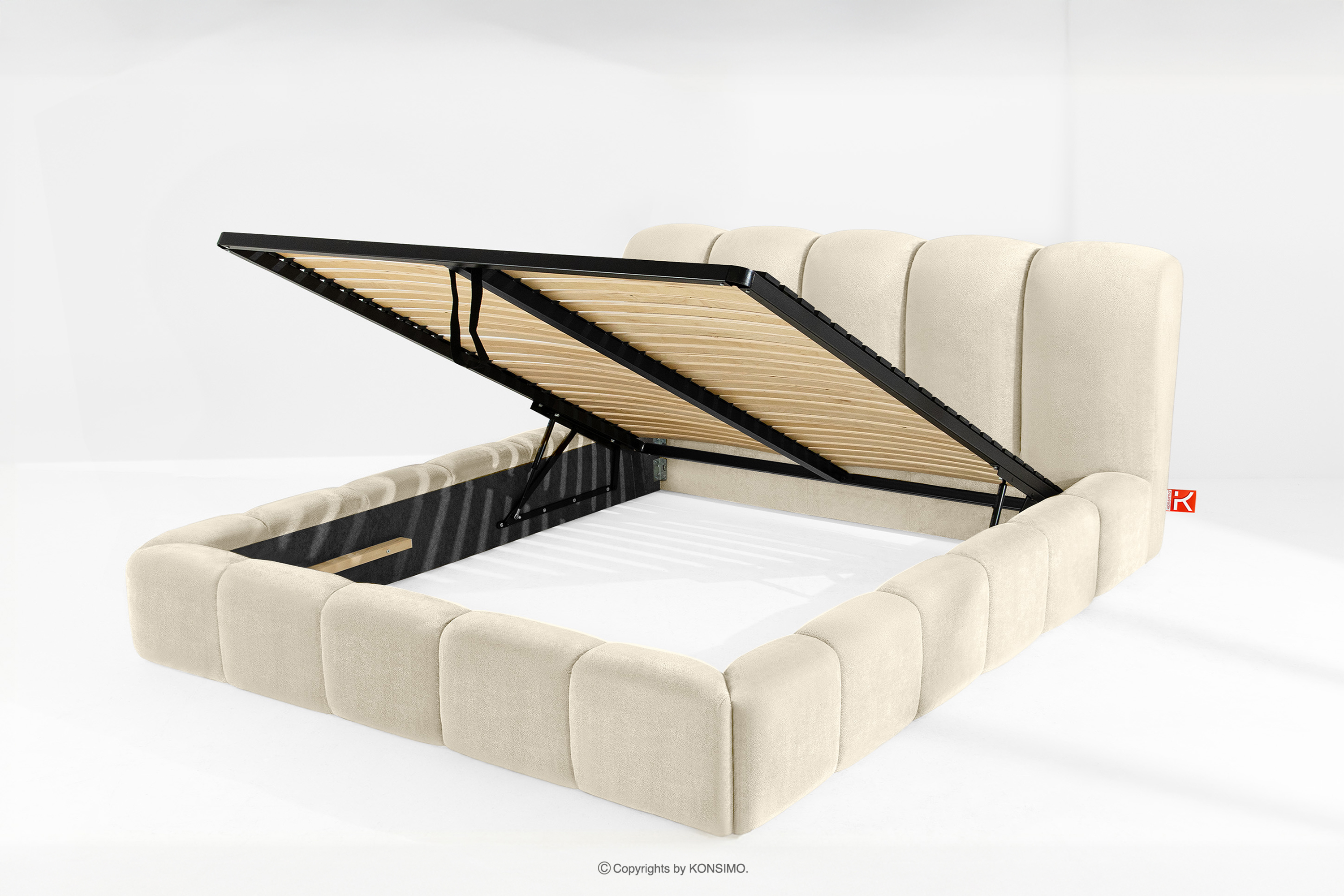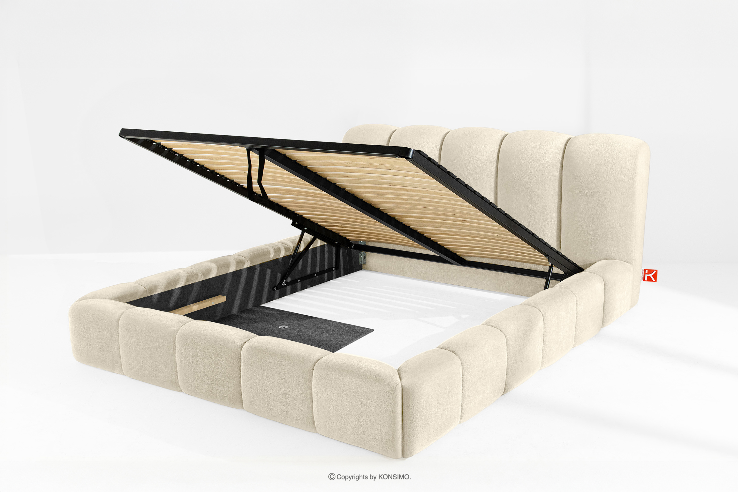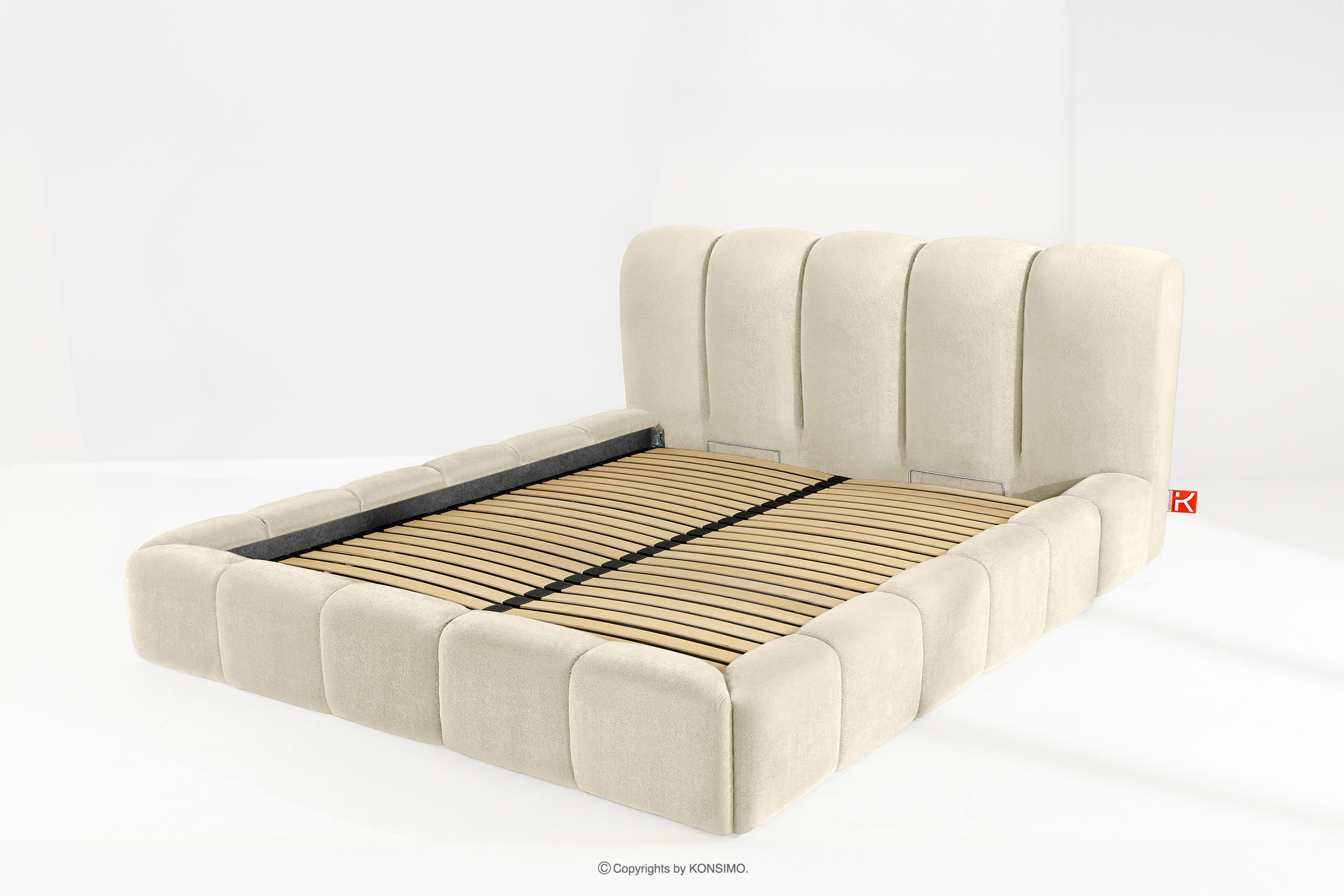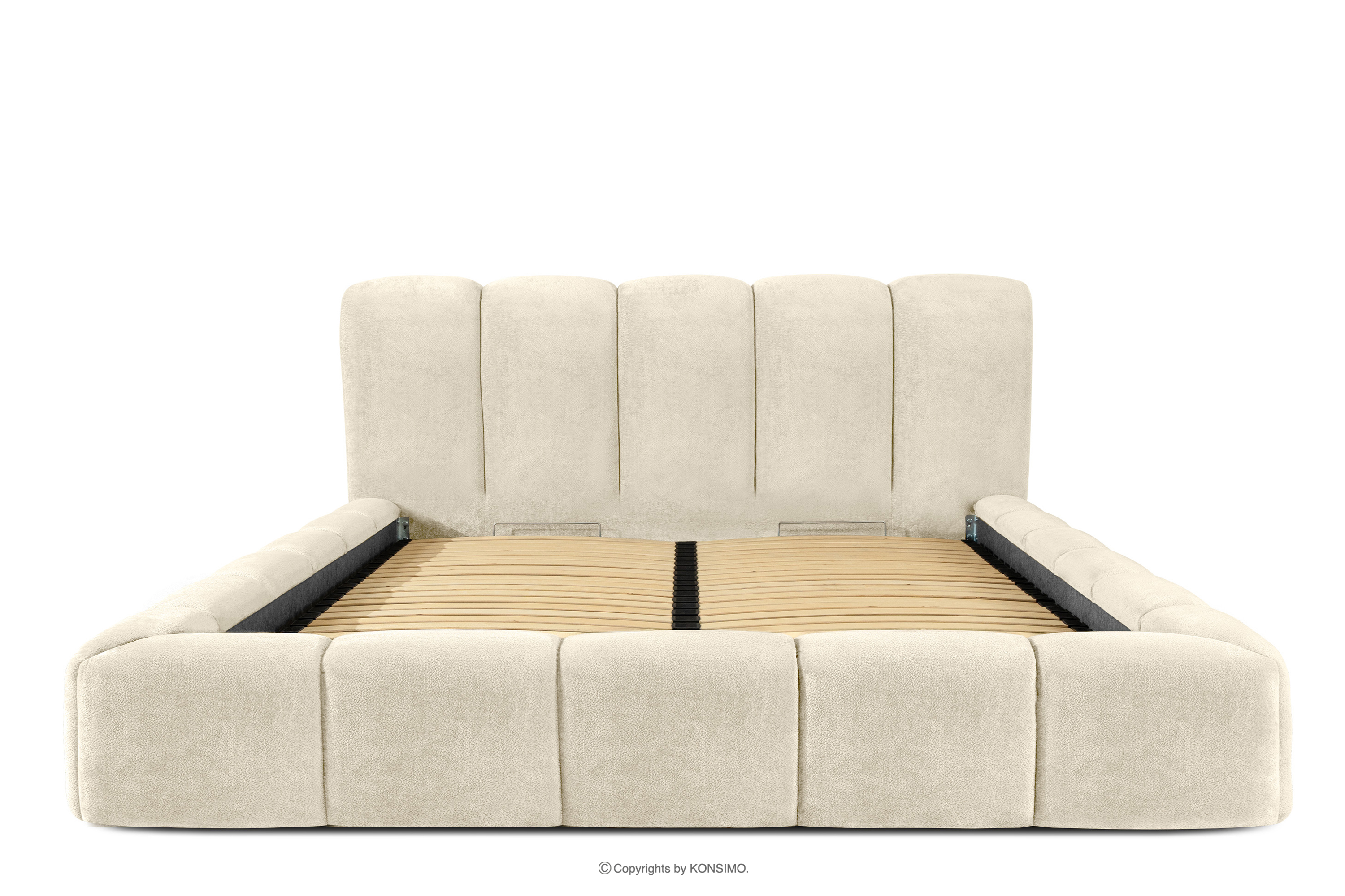 MERIDE zobacz całą kolekcję Łóżko tapicerowane 200 cm w stylu japandi z pikowaniem ecru- kolor ecru