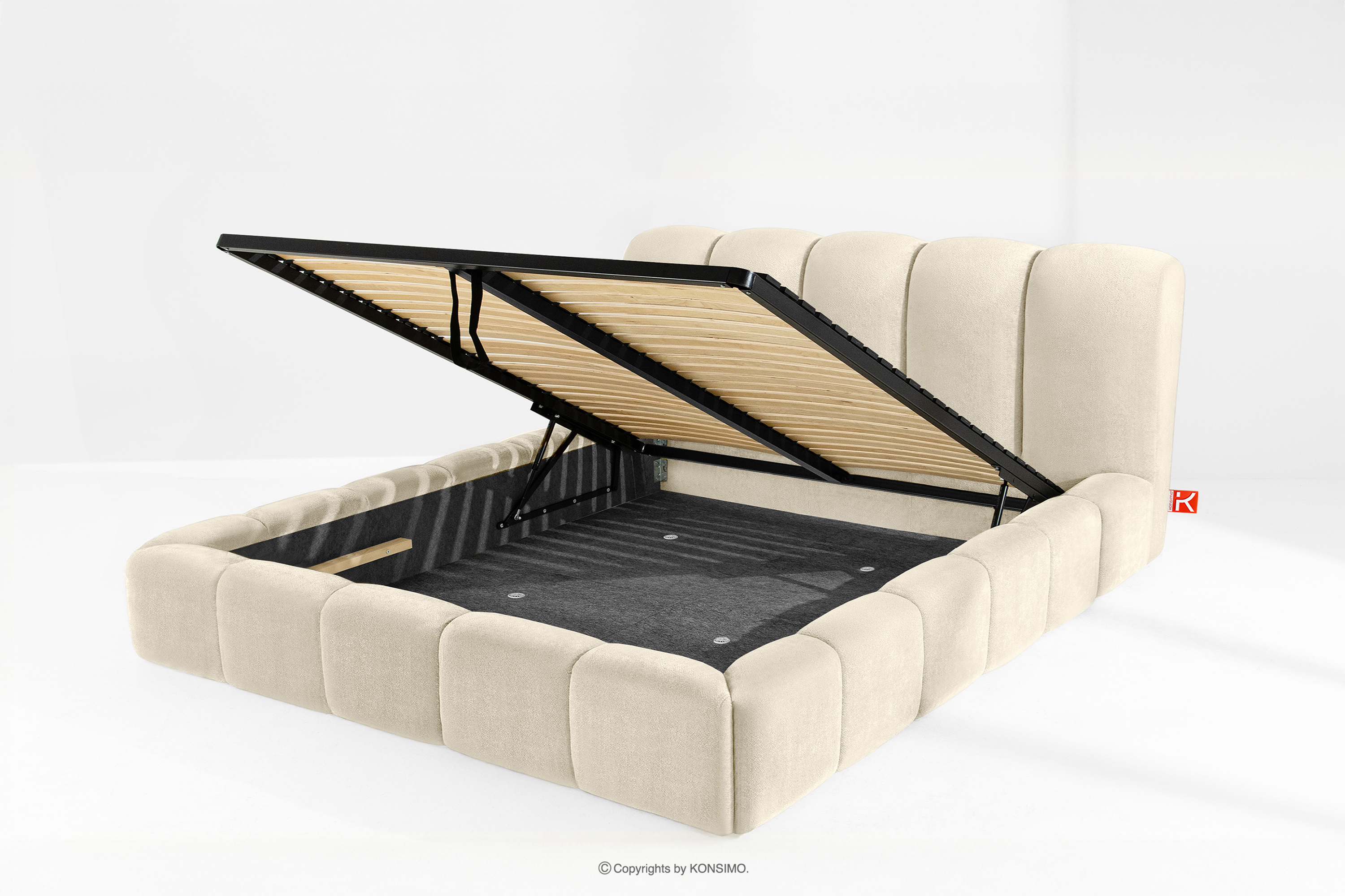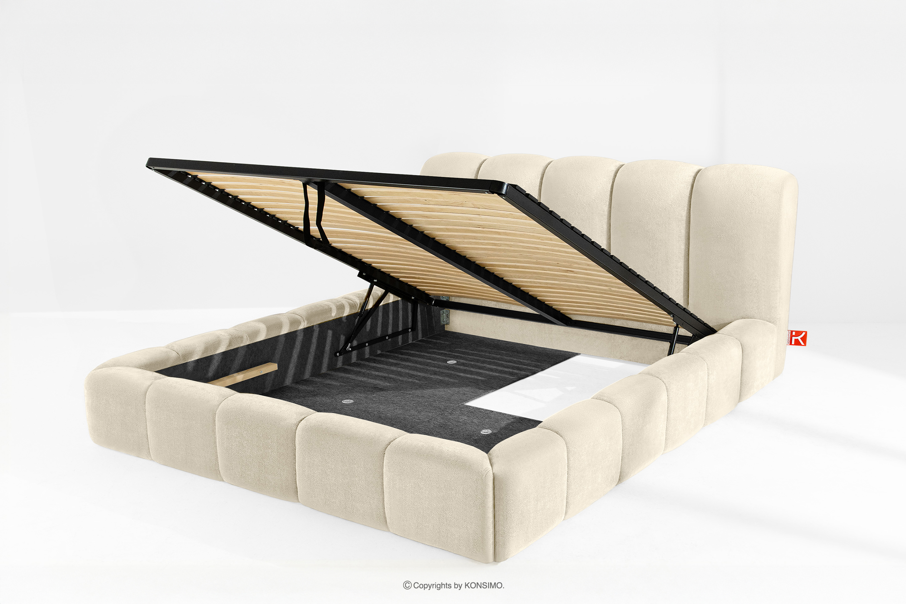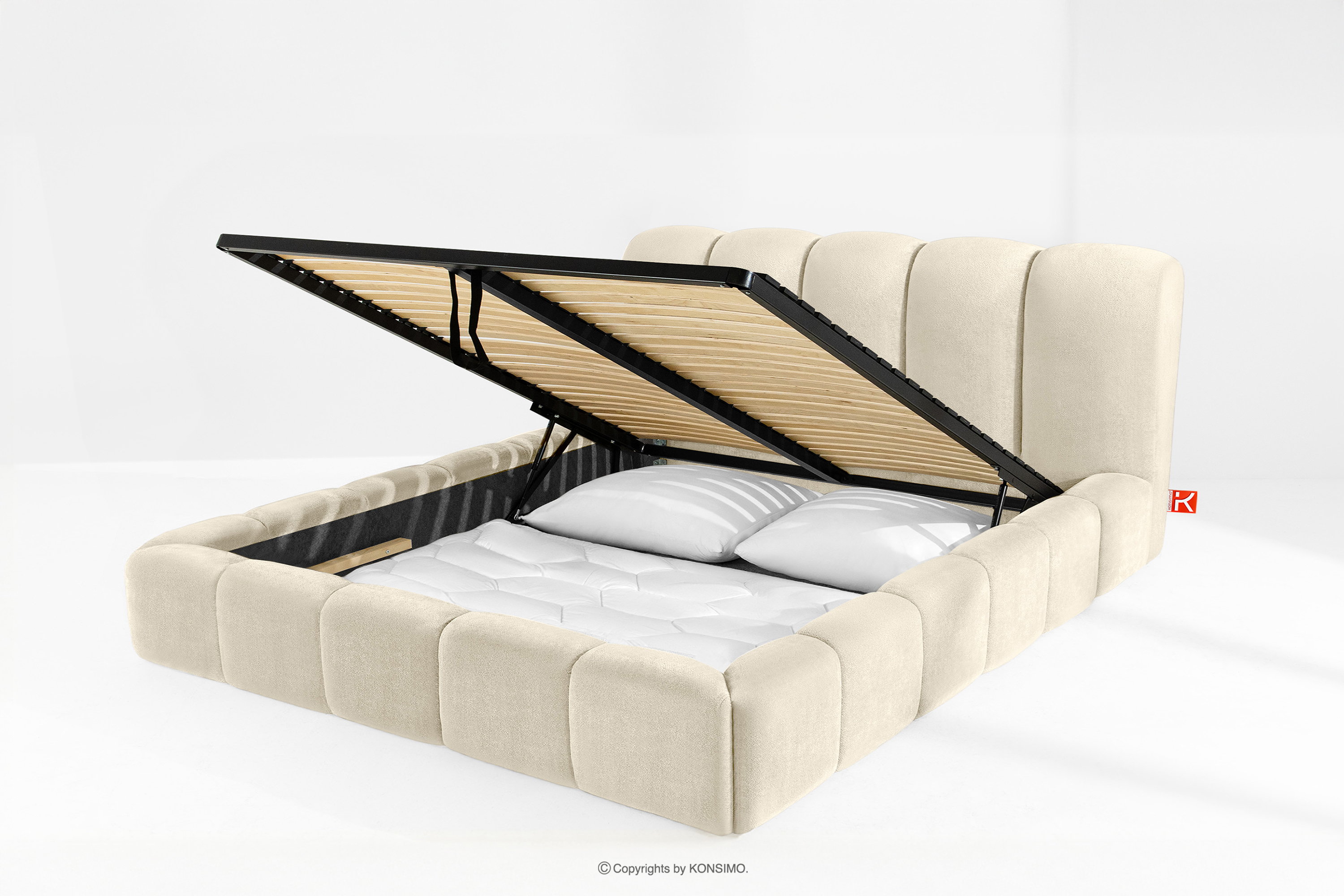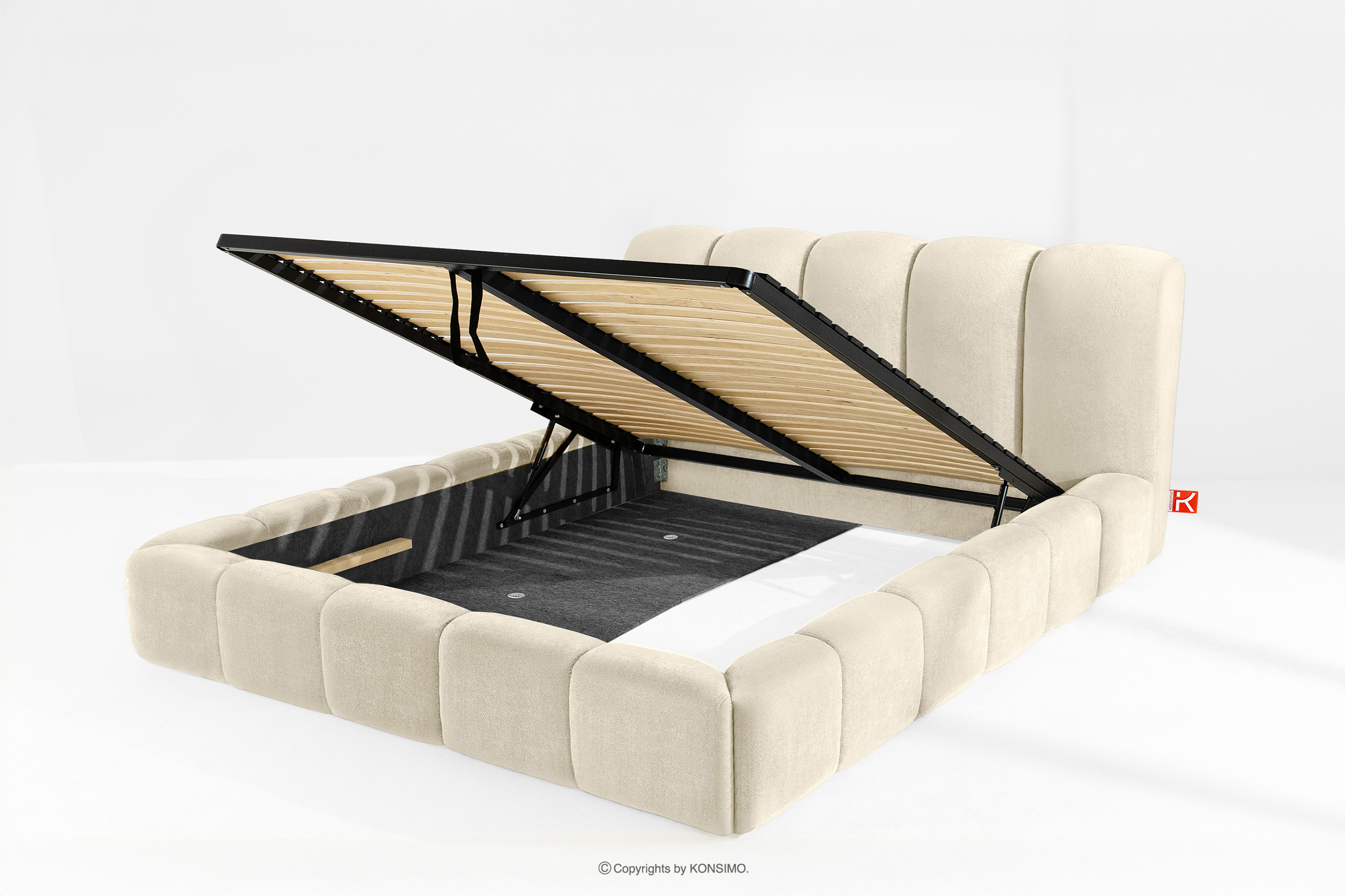 MERIDE zobacz całą kolekcję Łóżko tapicerowane 200 cm w stylu japandi z pikowaniem ecru- kolor ecru