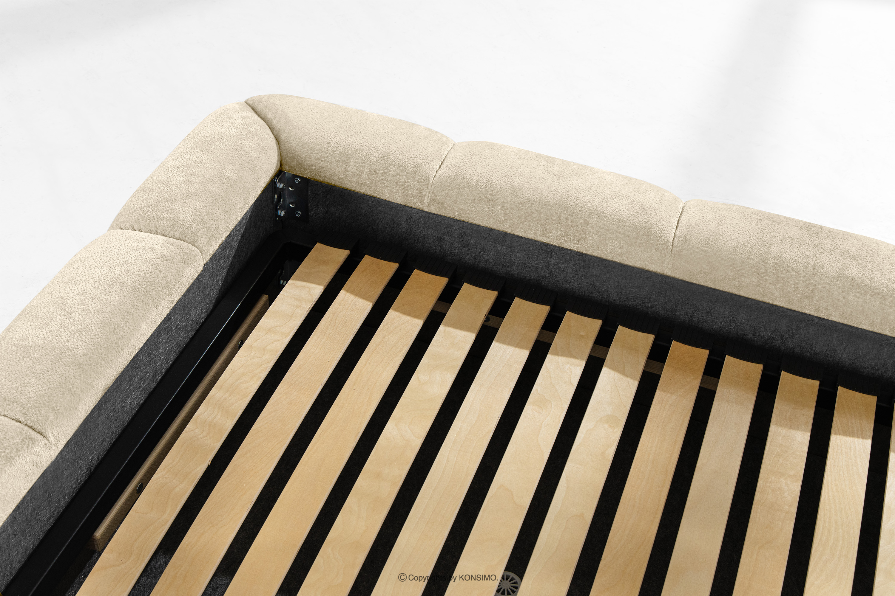 - Stelaż: metalowa rama, sprężynująca listwa drewniana, tak