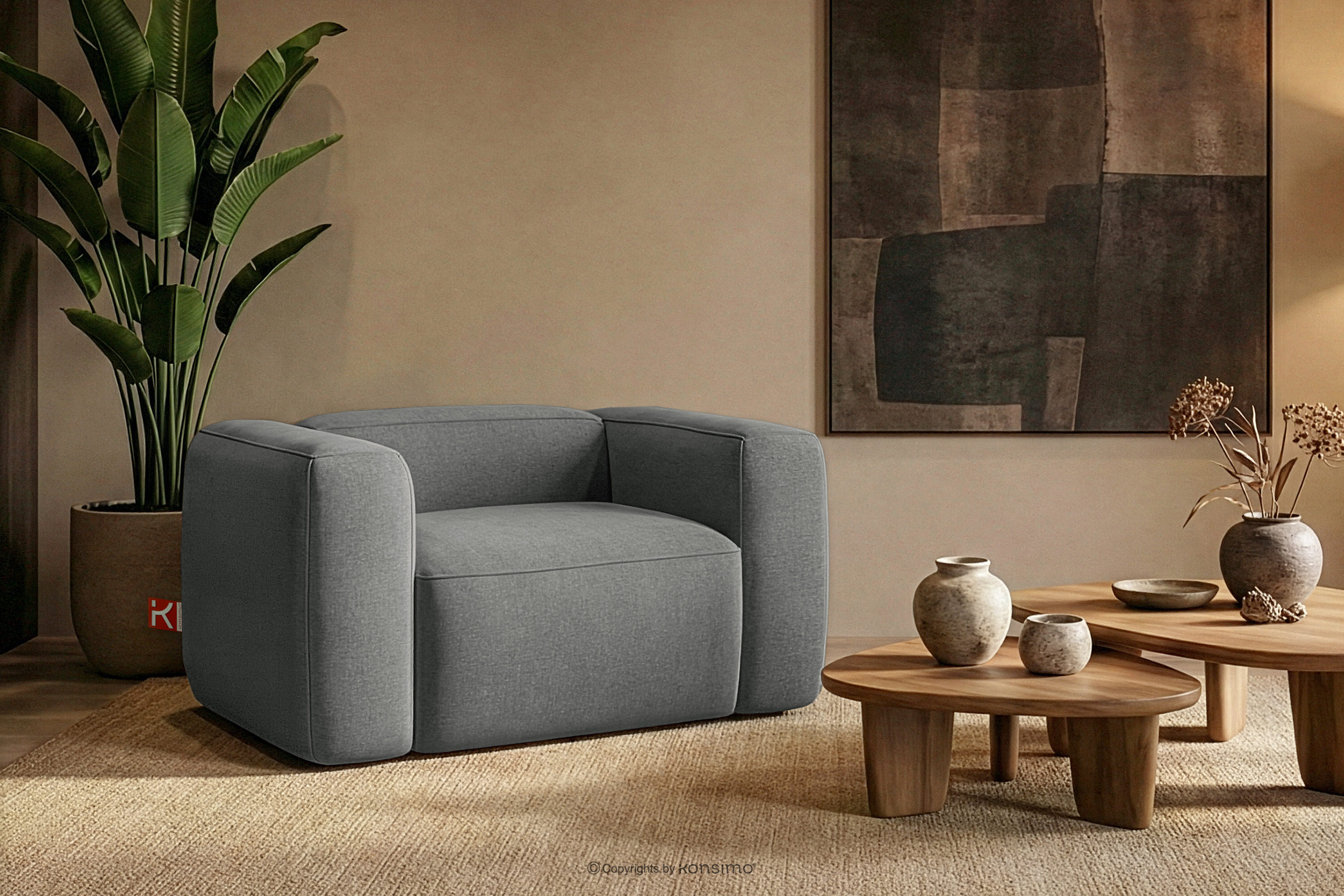 FUBBO zobacz całą kolekcję Miękki fotel w tkaninie plecionej szary- kolor szary