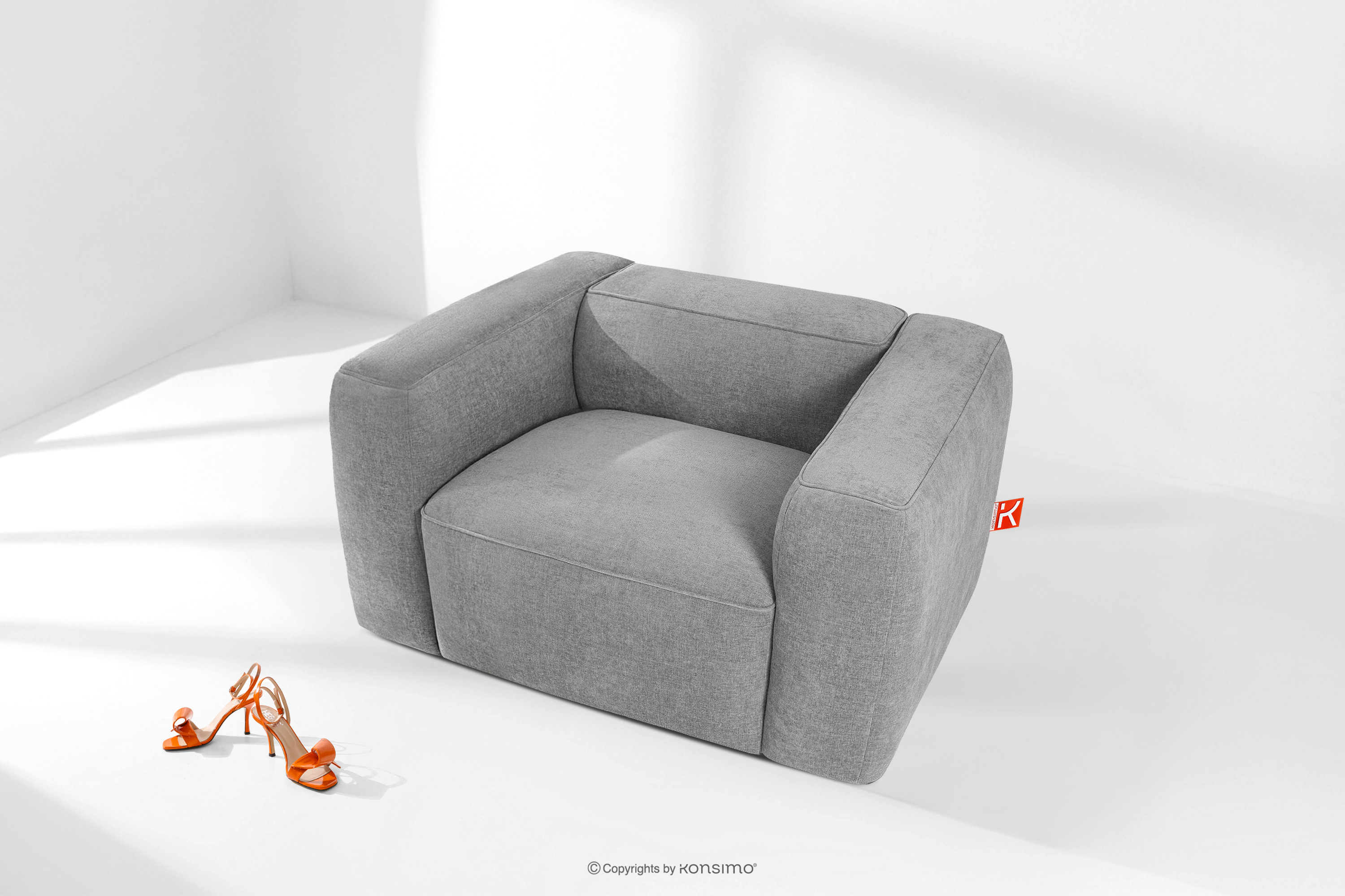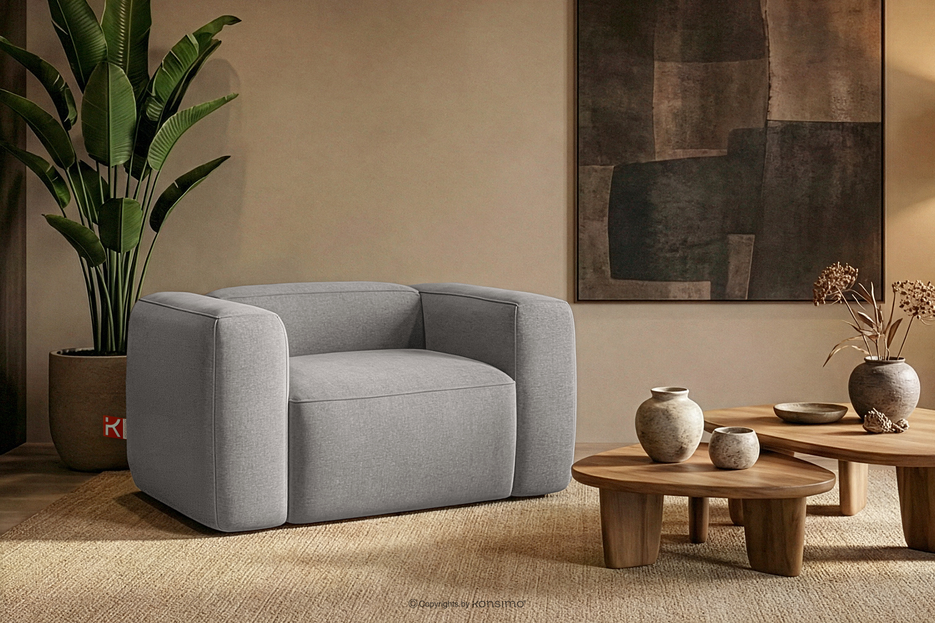 FUBBO zobacz całą kolekcję Miękki fotel w tkaninie plecionej jasny szary- kolor jasny szary