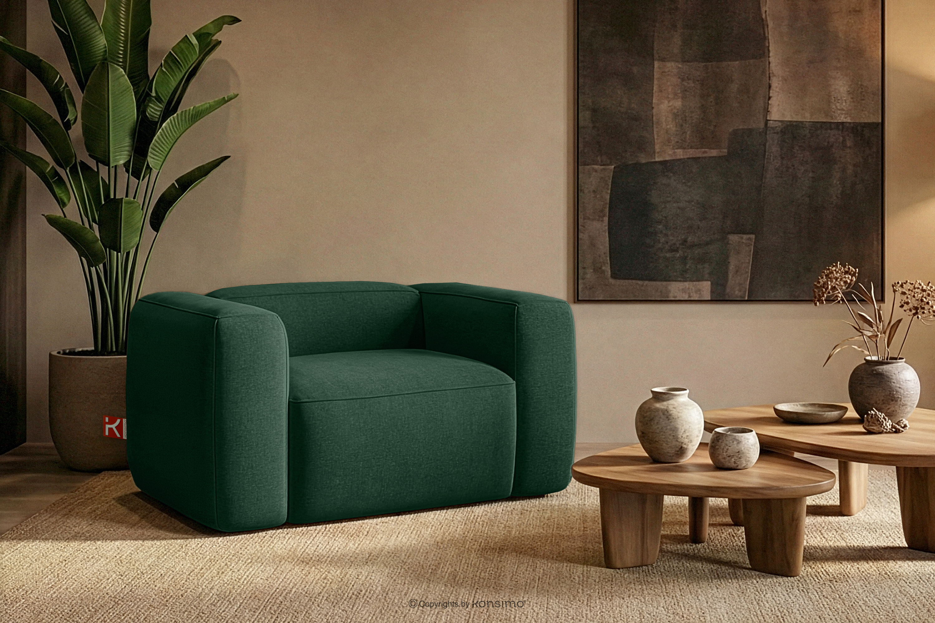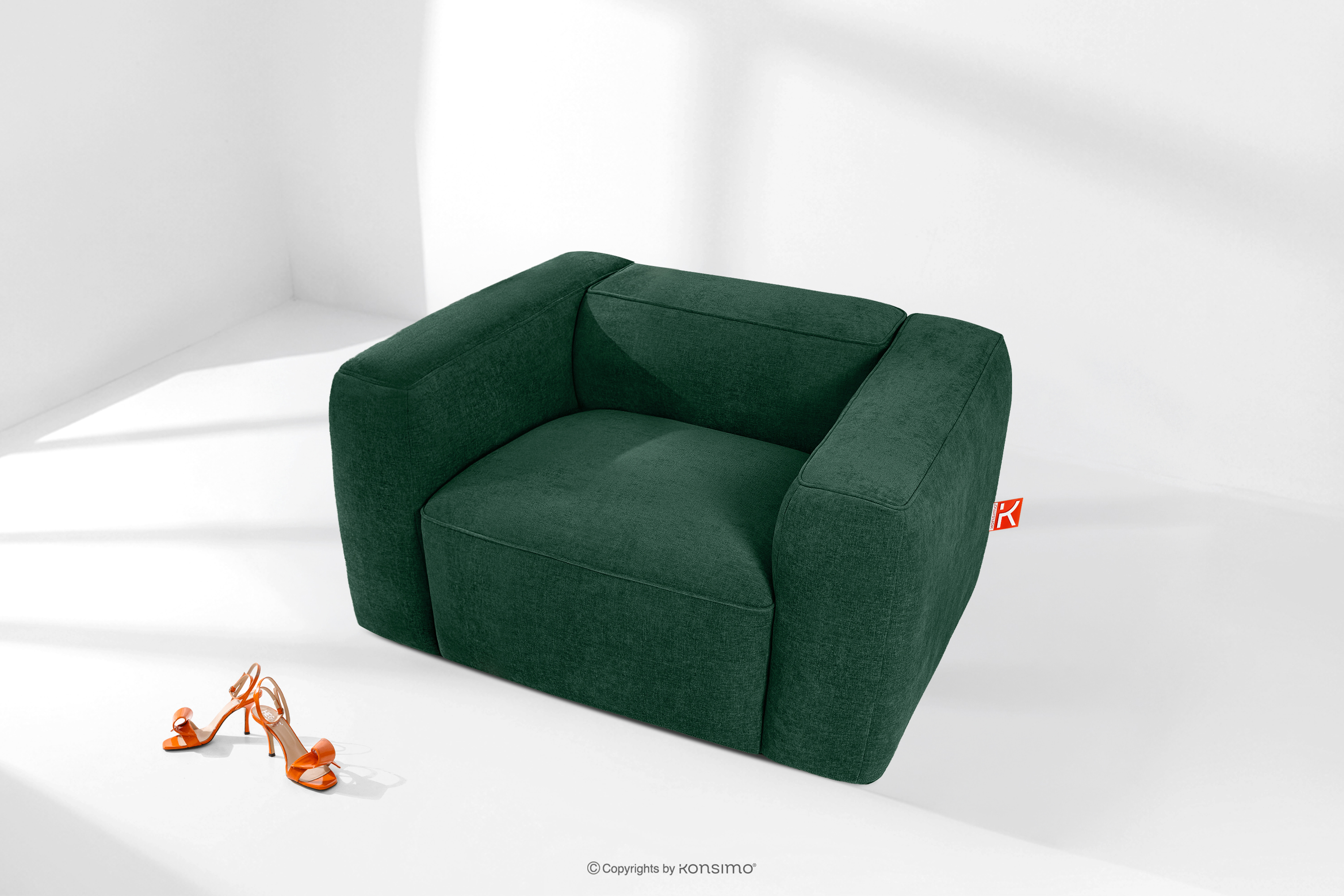 FUBBO zobacz całą kolekcję Miękki fotel w tkaninie plecionej ciemny zielony- kolor ciemny zielony