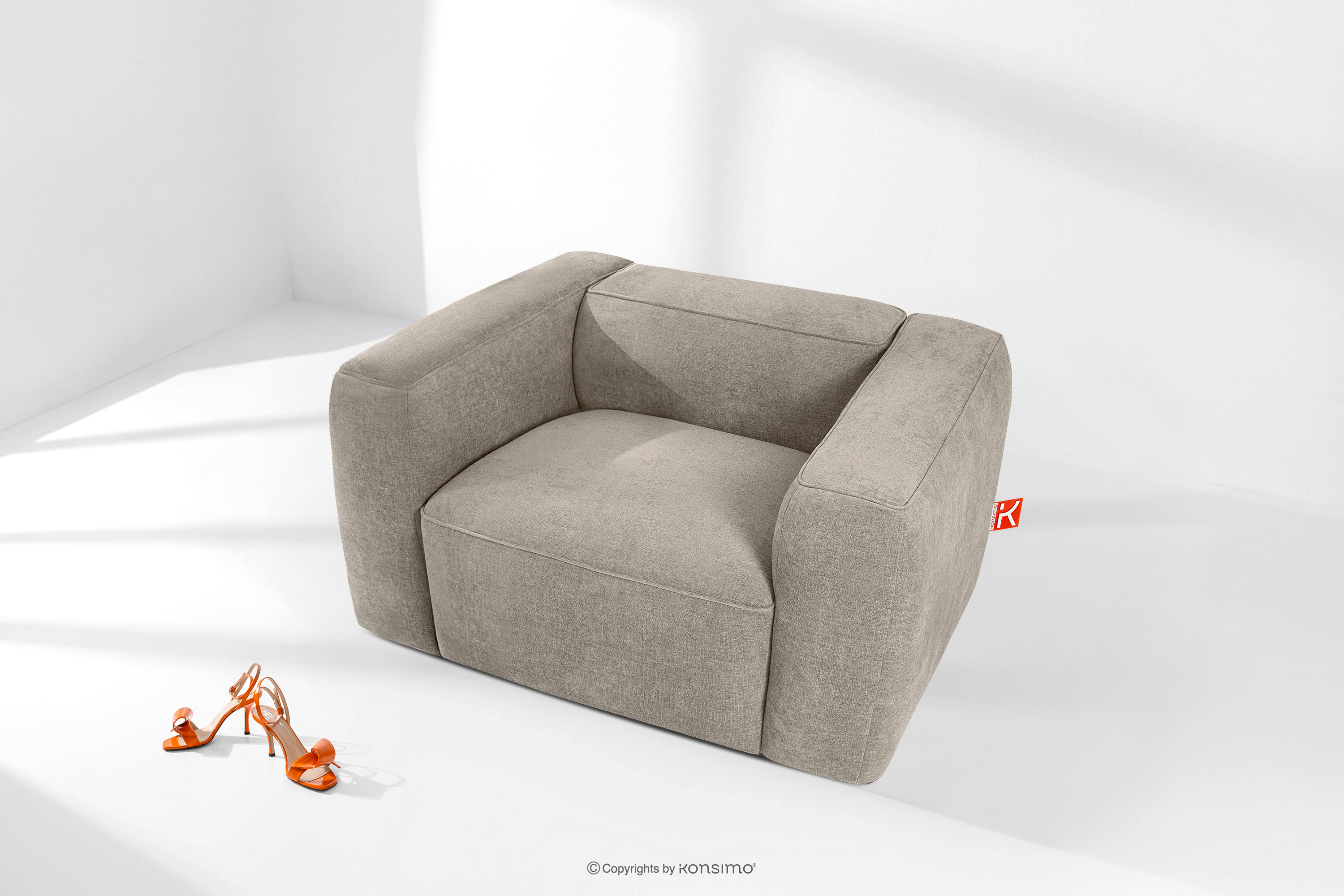 FUBBO zobacz całą kolekcję Miękki fotel w tkaninie plecionej beżowy- kolor beżowy