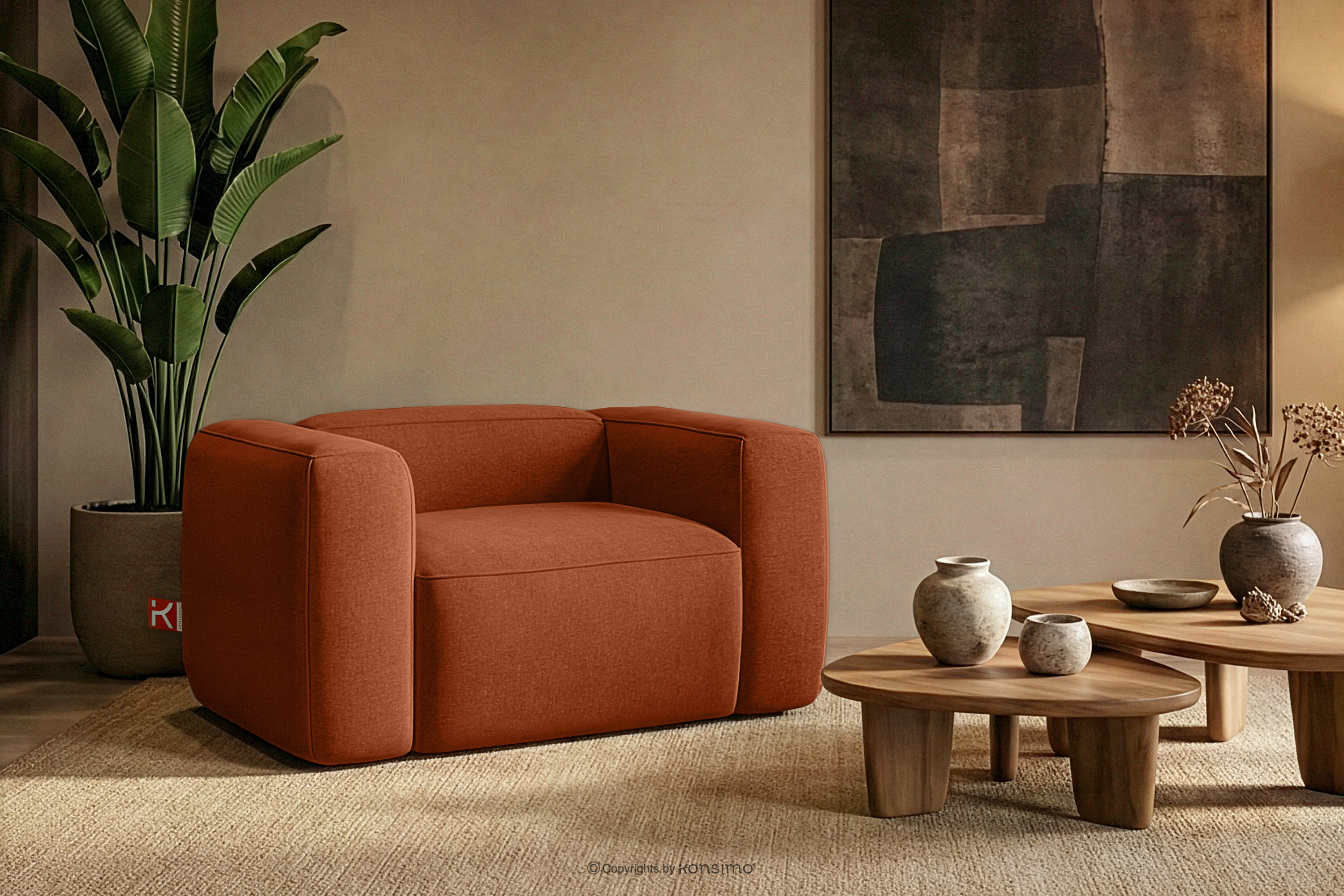 FUBBO zobacz całą kolekcję Miękki fotel w tkaninie plecionej rudy- kolor rudy