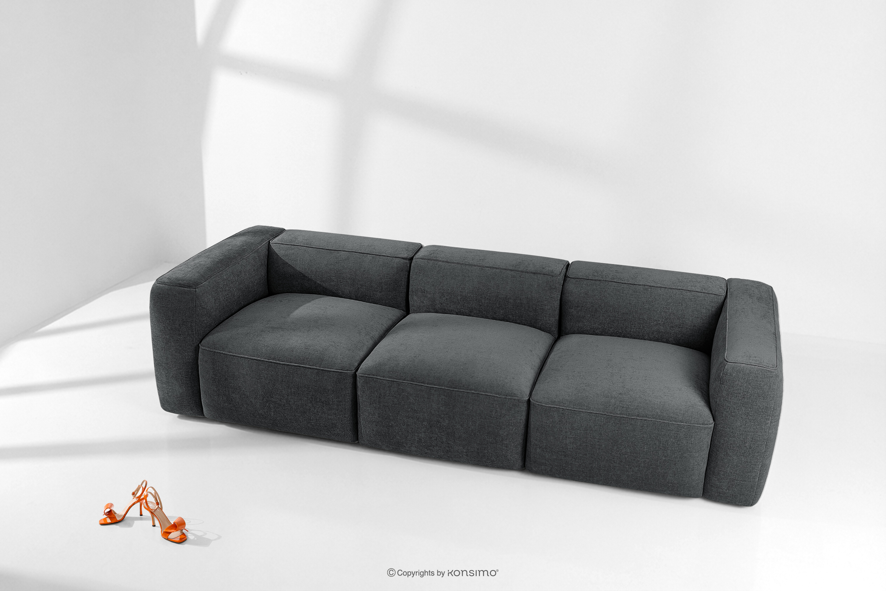FUBBO zobacz całą kolekcję Miękka sofa trzyosobowa w tkaninie plecionej antracytowy- kolor antracytowy
