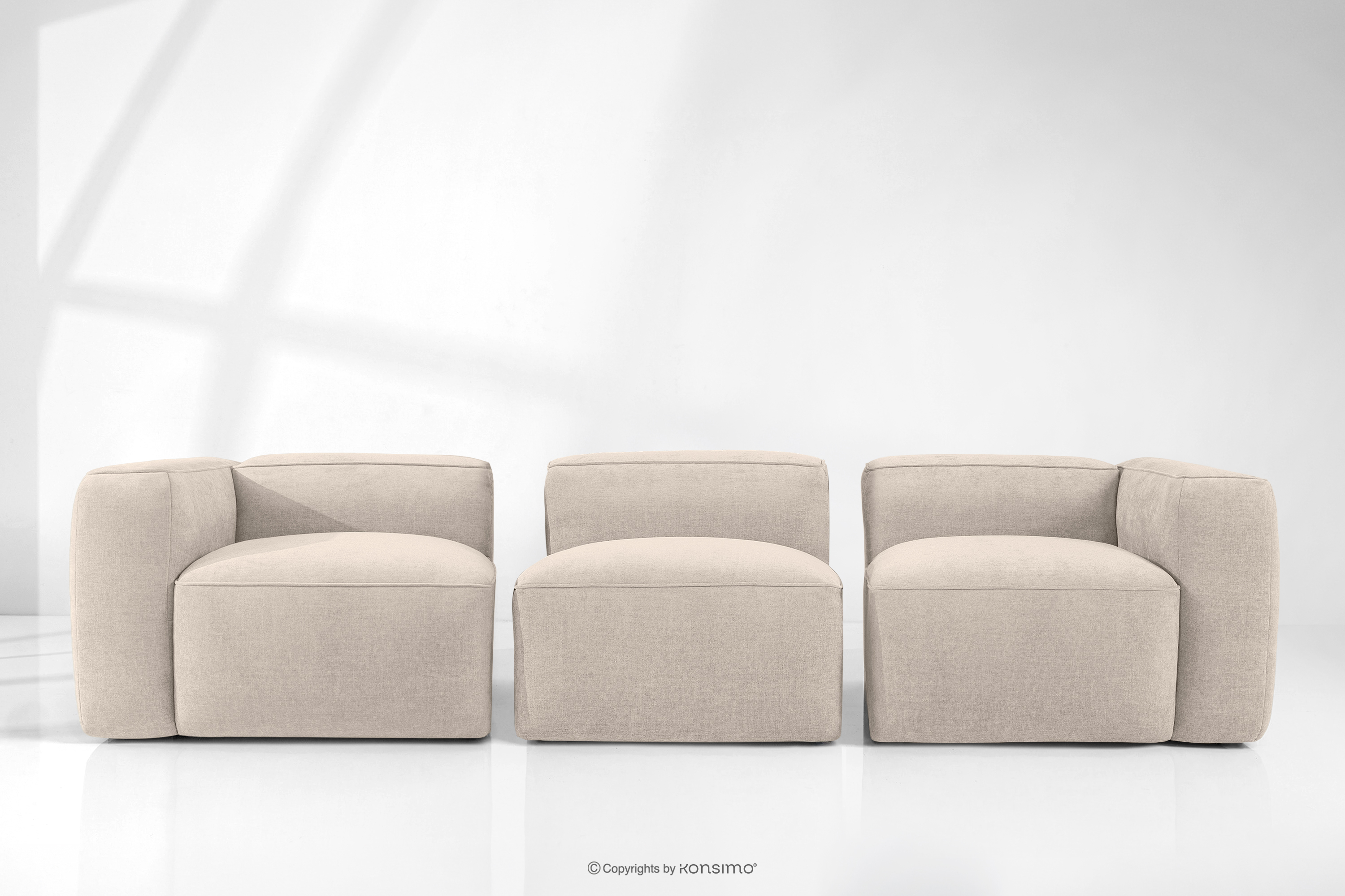 FUBBO zobacz całą kolekcję Miękka sofa trzyosobowa w tkaninie plecionej kremowy- kolor kremowy