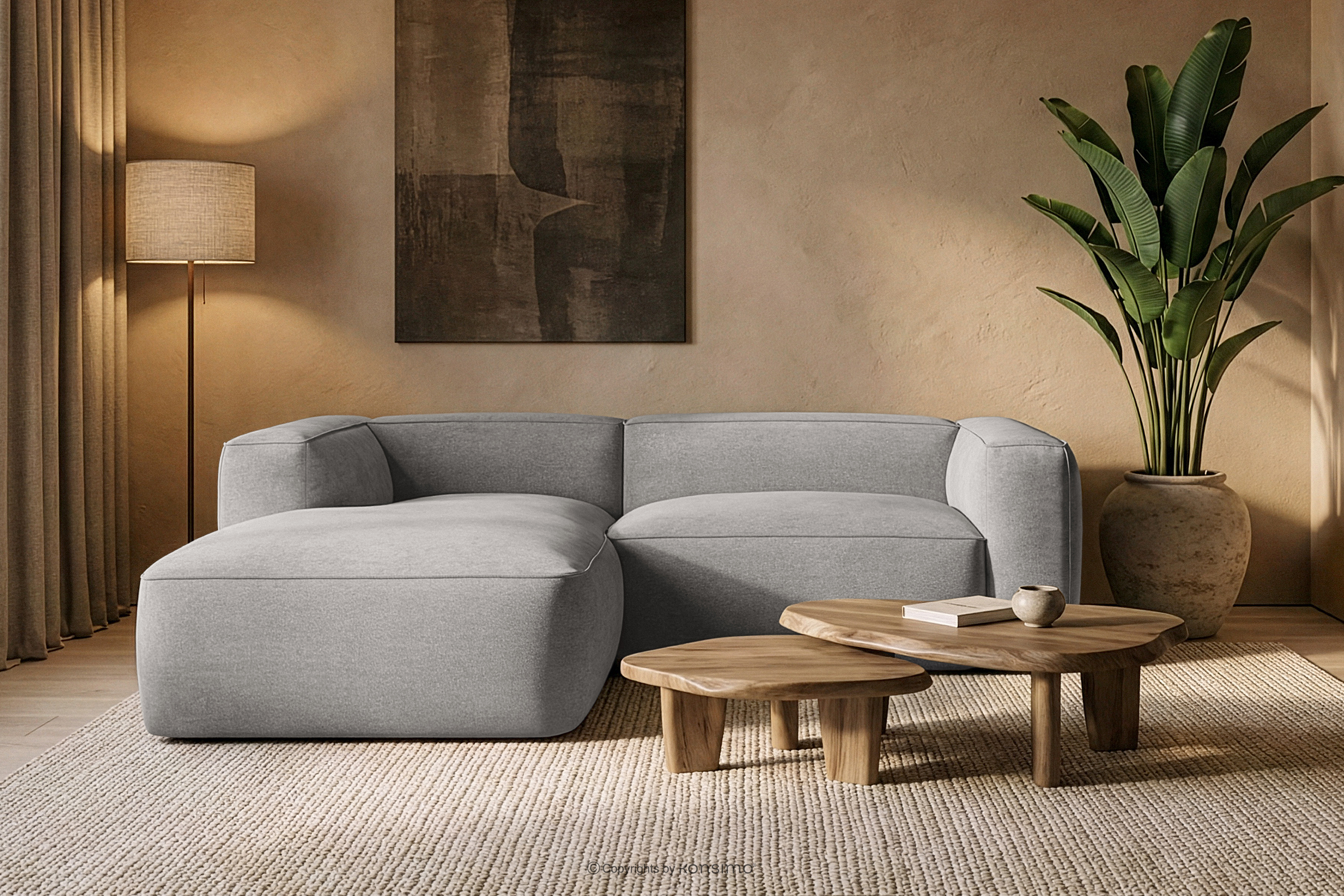 FUBBO zobacz całą kolekcję Miękki narożnik w tkaninie plecionej lewy jasny szary- kolor jasny szary