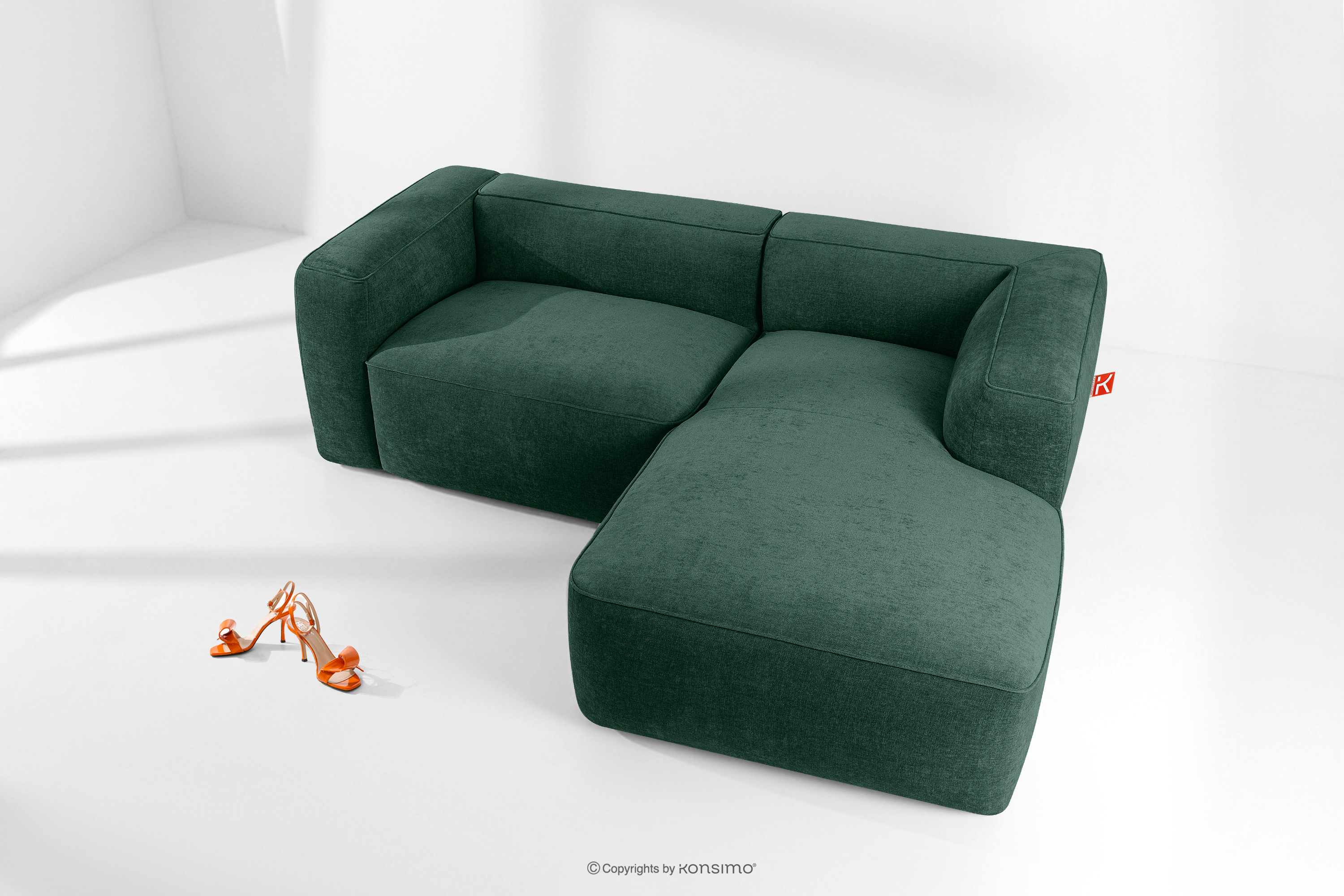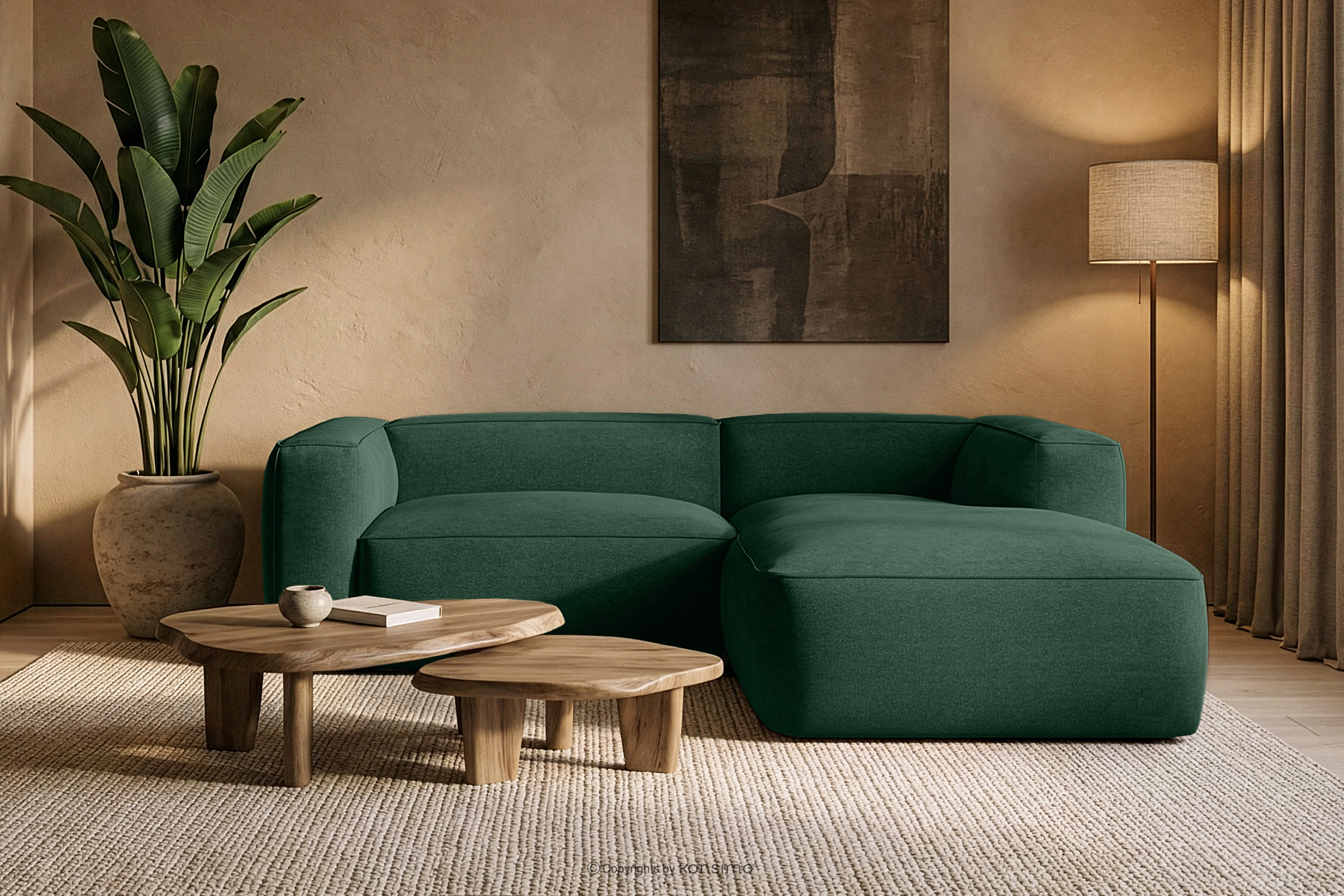 FUBBO zobacz całą kolekcję Miękki narożnik w tkaninie plecionej prawy ciemny zielony- kolor ciemny zielony