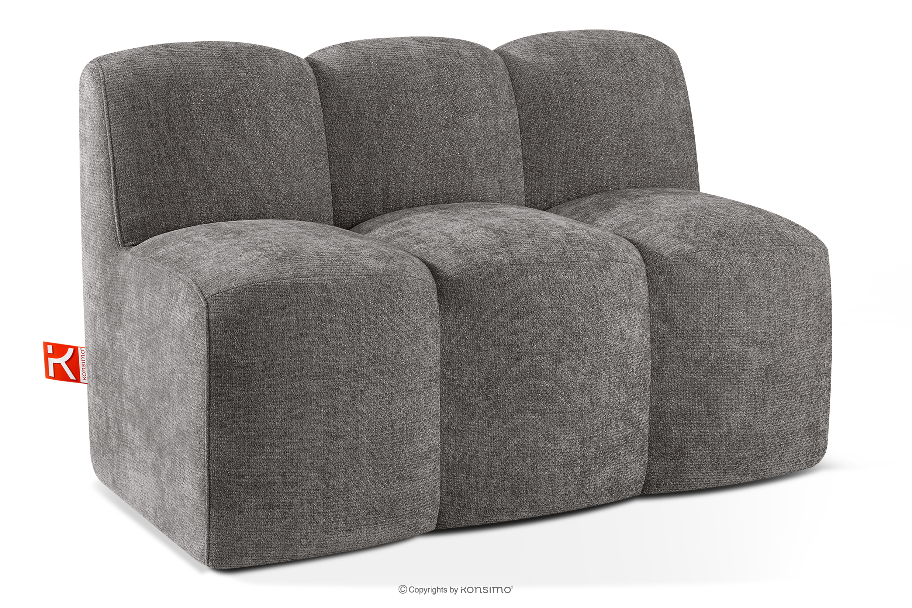 Konstrukcja ławki opiera się na niskim profilu, co sprawia, że mebel jest wyjątkowo stabilny i nie chwieje się nawet przy pełnym obciążeniu przez kilka osób naraz. Wyraźne segmentowanie siedziska i oparcia zapobiega nadmiernemu naciąganiu się materiału, dzięki czemu tapicerka zachowuje swój pierwotny, schludny wygląd przez długie lata, nawet przy intensywnym użytkowaniu.