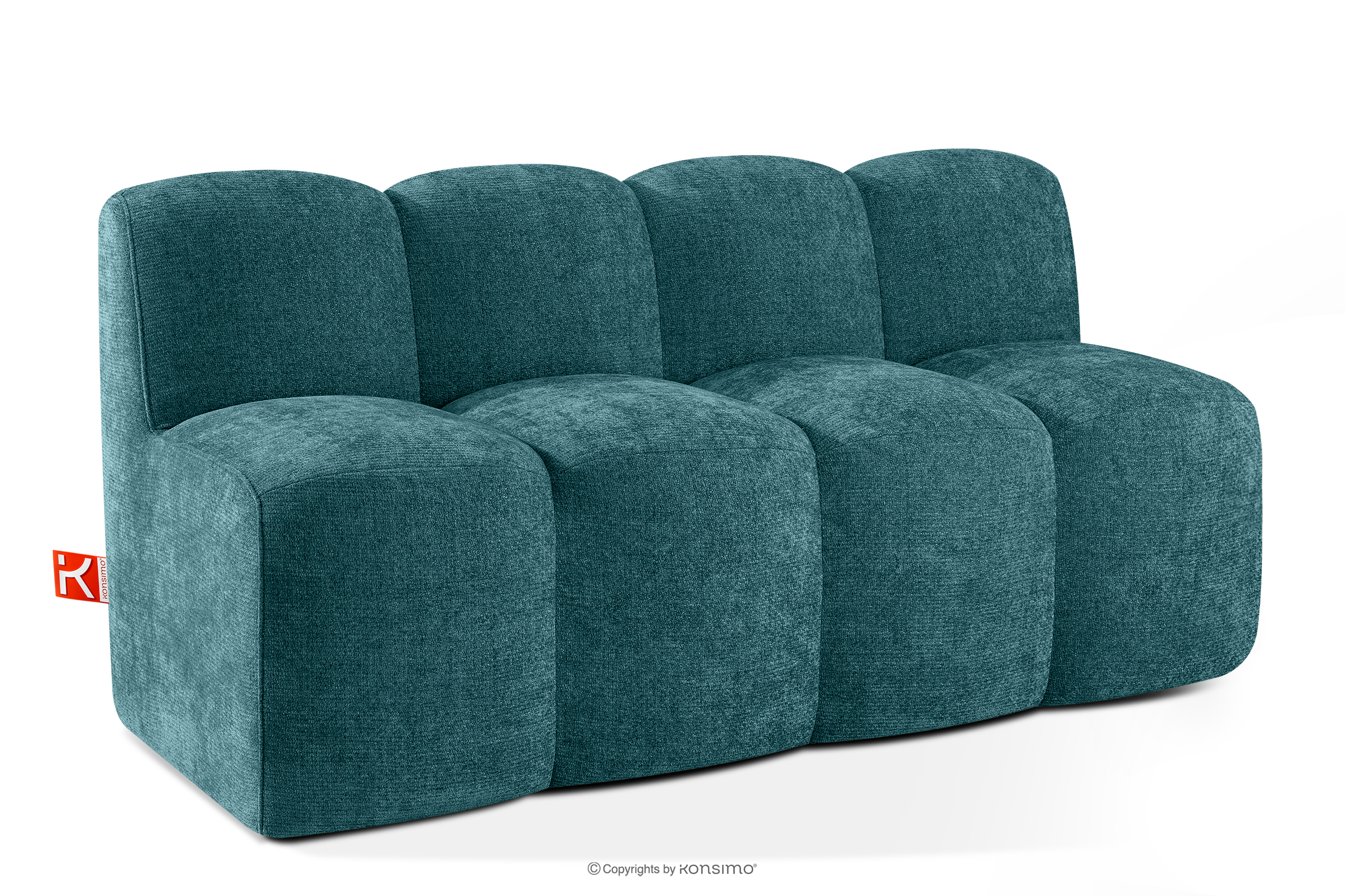 Konstrukcja ławki opiera się na niskim profilu, co sprawia, że mebel jest wyjątkowo stabilny i nie chwieje się nawet przy pełnym obciążeniu przez kilka osób naraz. Wyraźne segmentowanie siedziska i oparcia zapobiega nadmiernemu naciąganiu się materiału, dzięki czemu tapicerka zachowuje swój pierwotny, schludny wygląd przez długie lata, nawet przy intensywnym użytkowaniu.