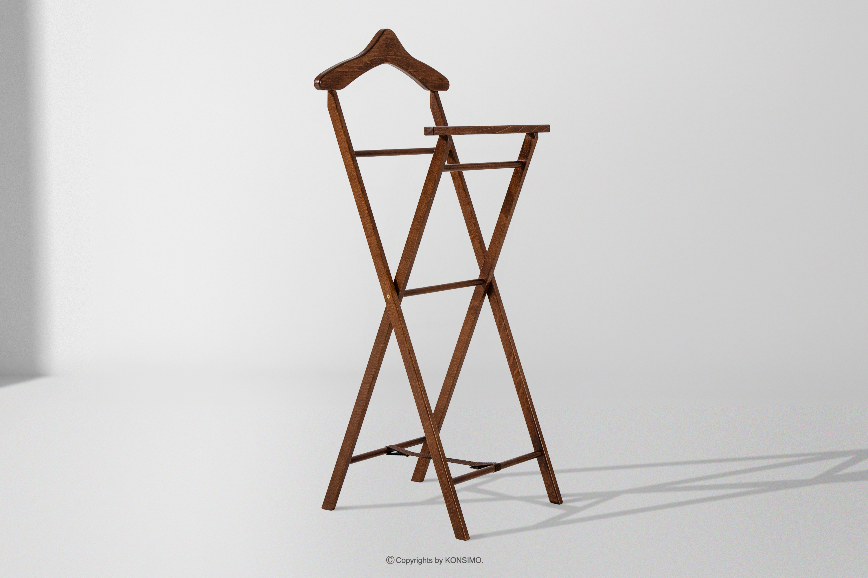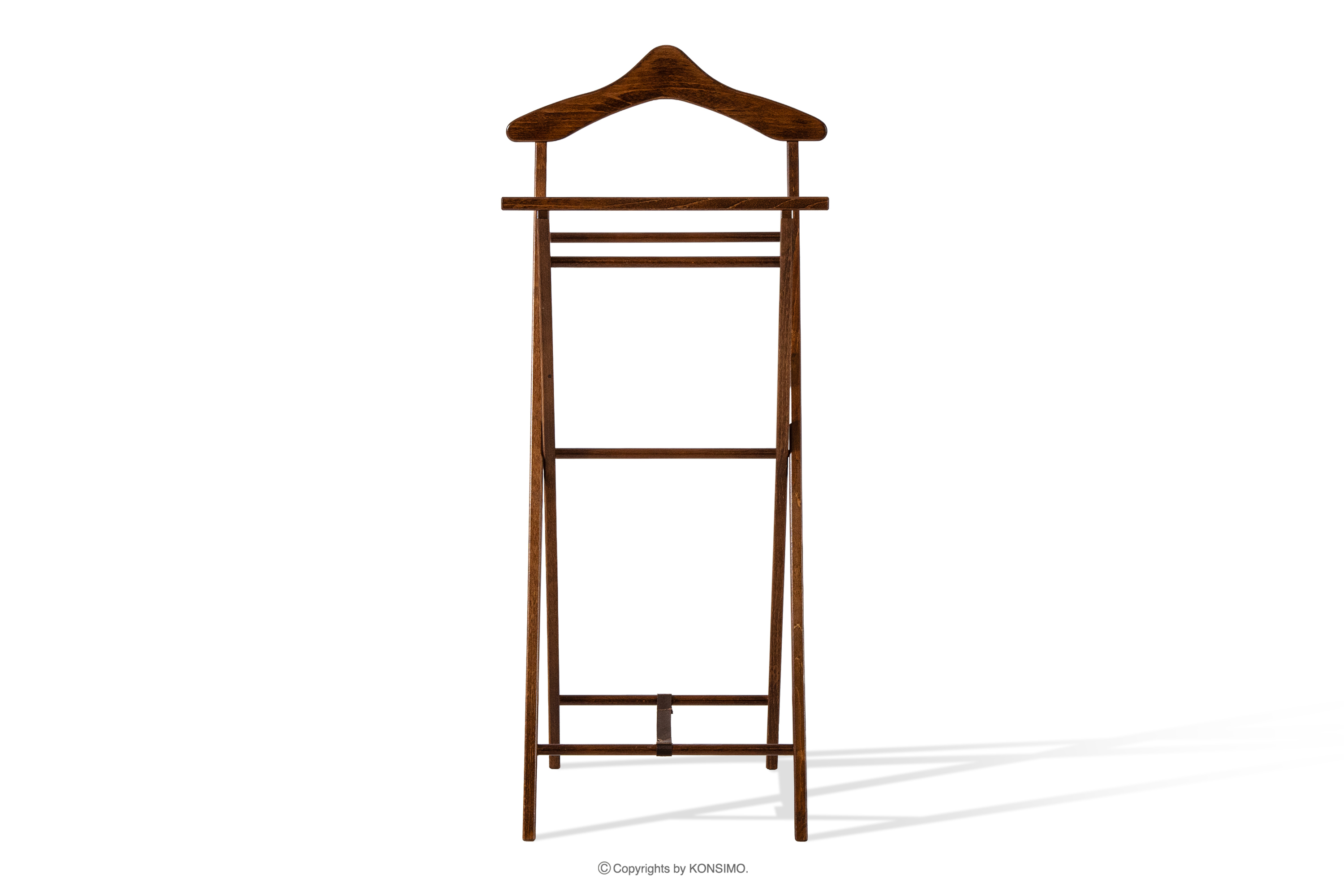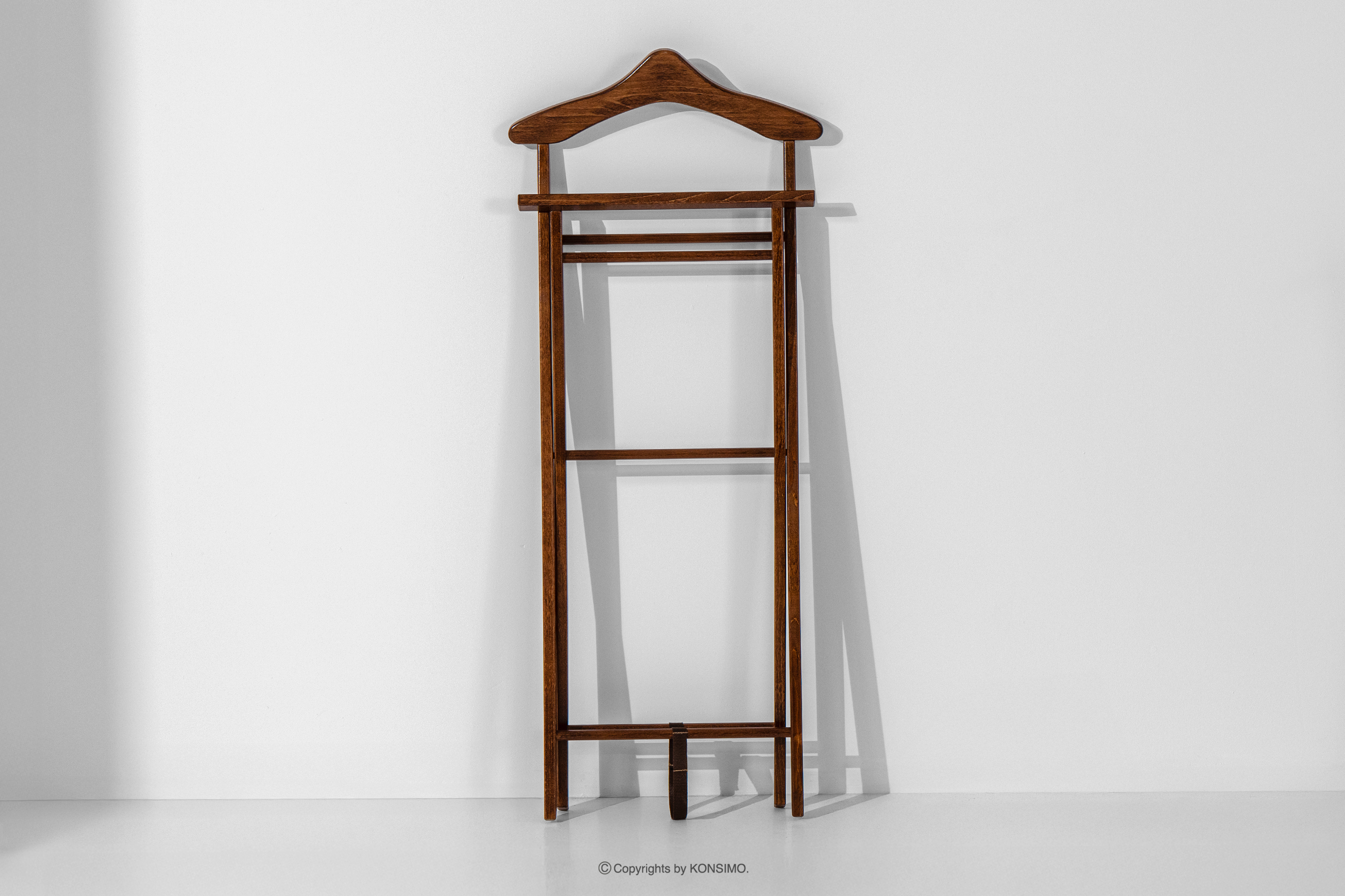 Dzięki precyzyjnemu wykonaniu i staranności w wykończeniu, każdy element kamerdynera jest dopracowany w najdrobniejszym szczególe. Powierzchnia została pokryta wysokiej jakości lakierem, który zabezpiecza drewno, podkreśla jego naturalne usłojenie i nadaje całości eleganckiego charakteru. Jednym z największych atutów prezentowanego kamerdynera jest możliwość składania. To wyjątkowo praktyczna cecha, która pozwala na łatwe przechowywanie produktu, gdy nie jest używany. Po złożeniu zajmuje minimalną ilość miejsca, co czyni go idealnym rozwiązaniem do mniejszych przestrzeni – mieszkań, hoteli, pensjonatów czy domków letniskowych. Pomimo składanej konstrukcji, kamerdyner zachowuje pełną stabilność i wytrzymałość, umożliwiając wygodne zawieszenie garnituru, marynarki, spodni, koszuli czy krawata. Każdy element został zaprojektowany tak, aby odzież nie gniotła się i zachowała swój nienaganny wygląd do czasu ponownego założenia.