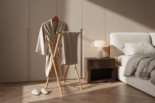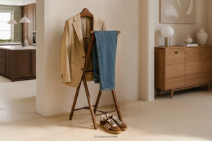 Kamerdyner z drewna bukowego to produkt stworzony z myślą o najbardziej wymagających użytkownikach. Idealnie sprawdzi się zarówno w sypialni, garderobie, jak i w eleganckim przedpokoju, pełniąc funkcję nie tylko użytkową, ale i dekoracyjną. Kamerdyner wykonany został z wysokiej jakości drewna bukowego, cenionego za swoją trwałość, odporność na uszkodzenia mechaniczne oraz subtelny, naturalny wygląd.