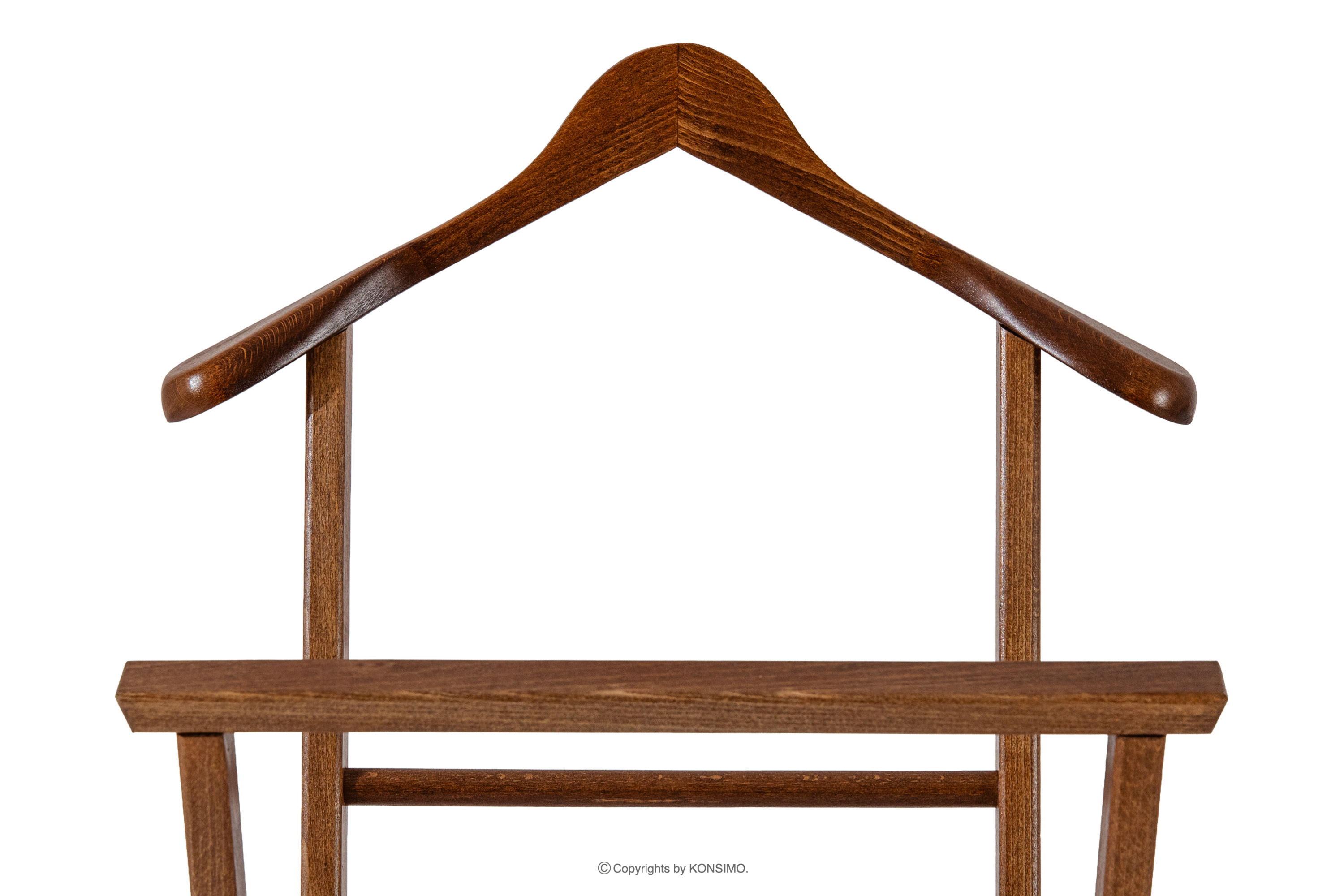 Drewniany wieszak stojący na garnitur brązowy AGLAS - kolor brązowy