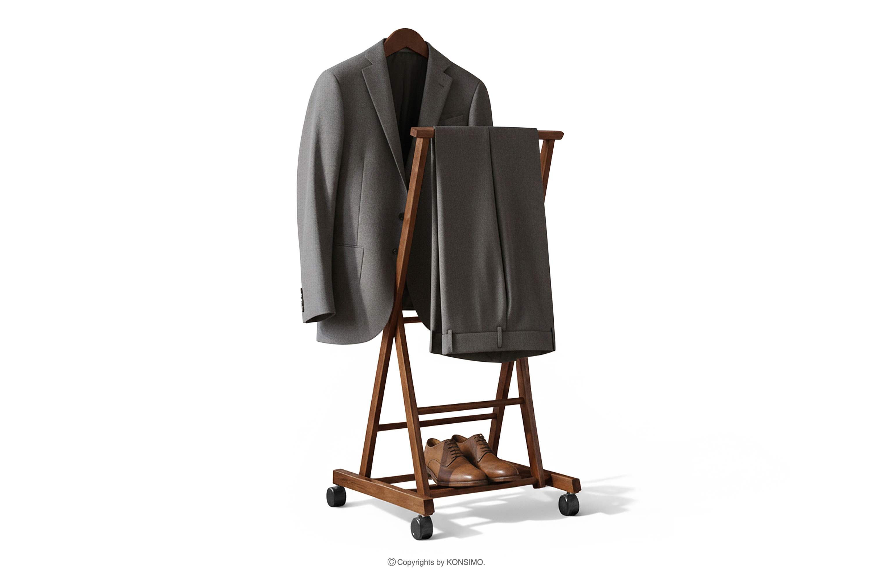 AGLAS zobacz całą kolekcję Drewniany wieszak stojący na garnitur brązowy- kolor brązowy
