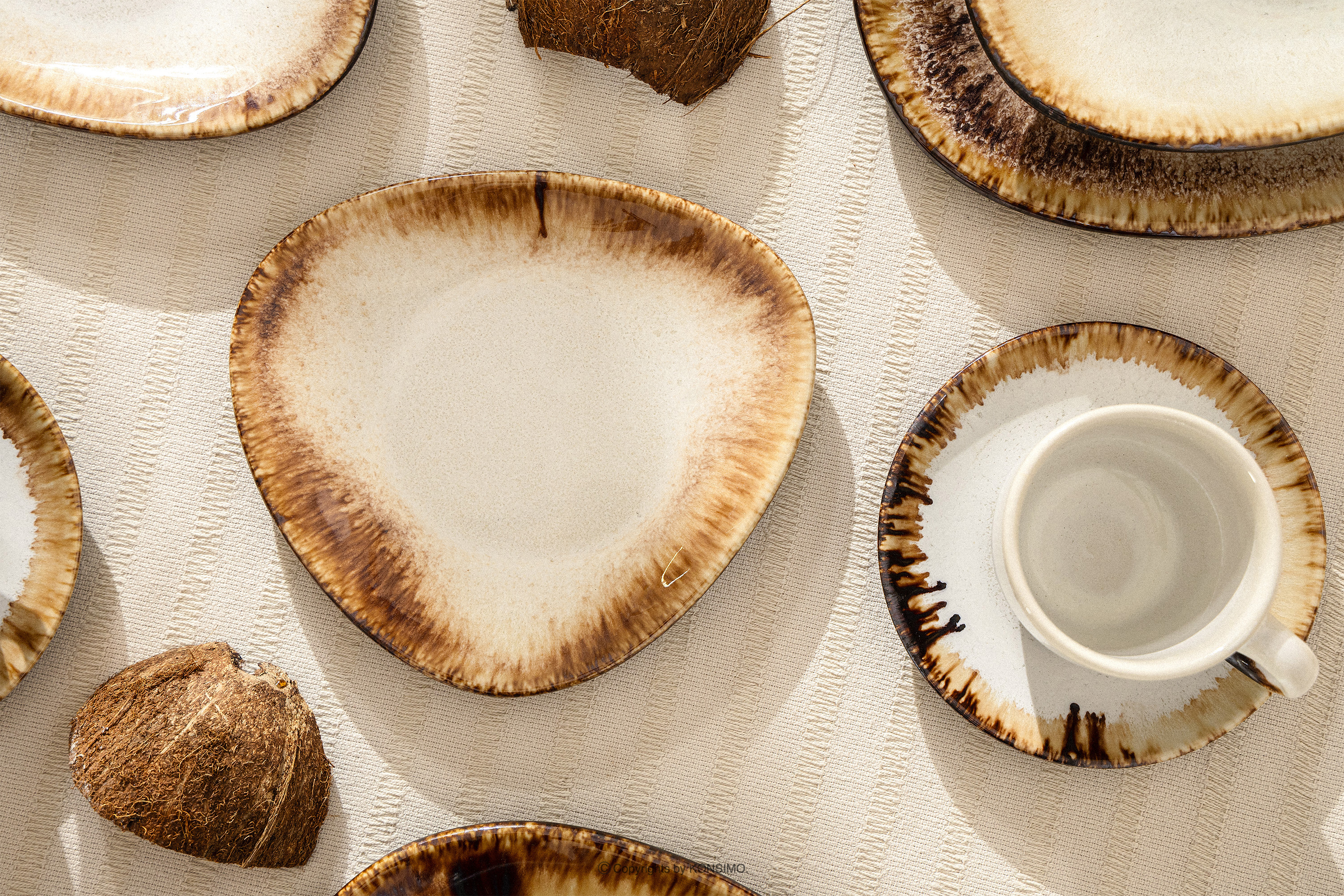 Nie jest to płaska, jednolita barwa, lecz baza pełna subtelnych niuansów, która wnosi do wnętrza ciepło, spokój i harmonię. Ten szlachetny odcień doskonale komponuje się z surowością betonu, ciepłem drewna i chłodem metalu – filarami loftowej estetyki. Kolekcja PRIMA to propozycja funkcjonalnej zastawy stołowej wykonanej z wysokiej jakości ceramiki. Jej design wpisuje się w założenia stylu Loft, który ceni autentyczność materiałów i prostotę formy. Estetyka kolekcji nawiązuje do inspiracji naturą, w szczególności do świata minerałów i kamieni szlachetnych. Przejawia się to w organicznych, celowo nieregularnych kształtach naczyń, które odbiegają od standardowej, maszynowej symetrii. Formy te mają naśladować naturalne struktury, co nadaje kolekcji indywidualny charakter.