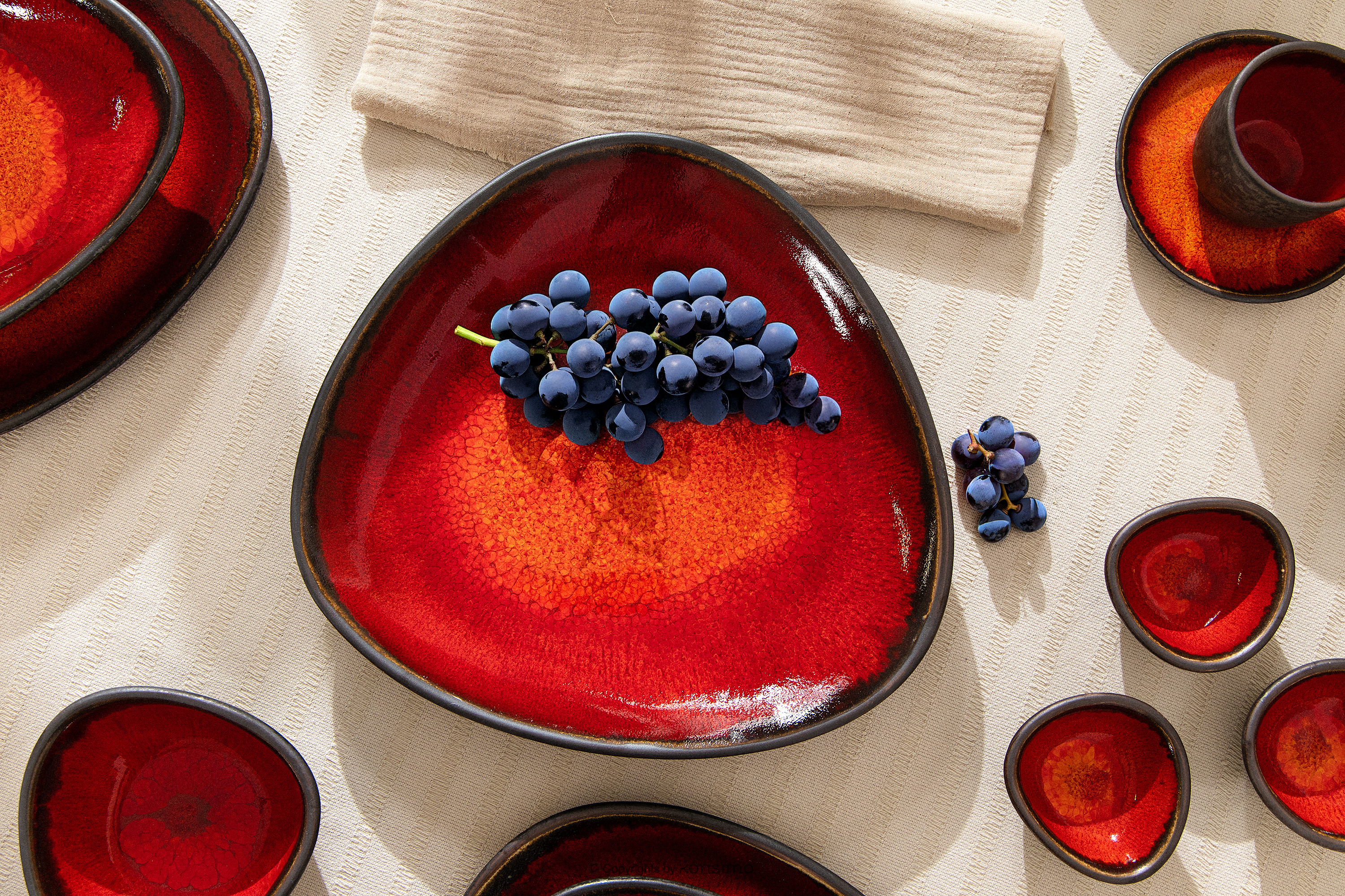 PRIMA zobacz całą kolekcję Patera głęboka ręcznie szkliwiona czerwony- kolor czerwony