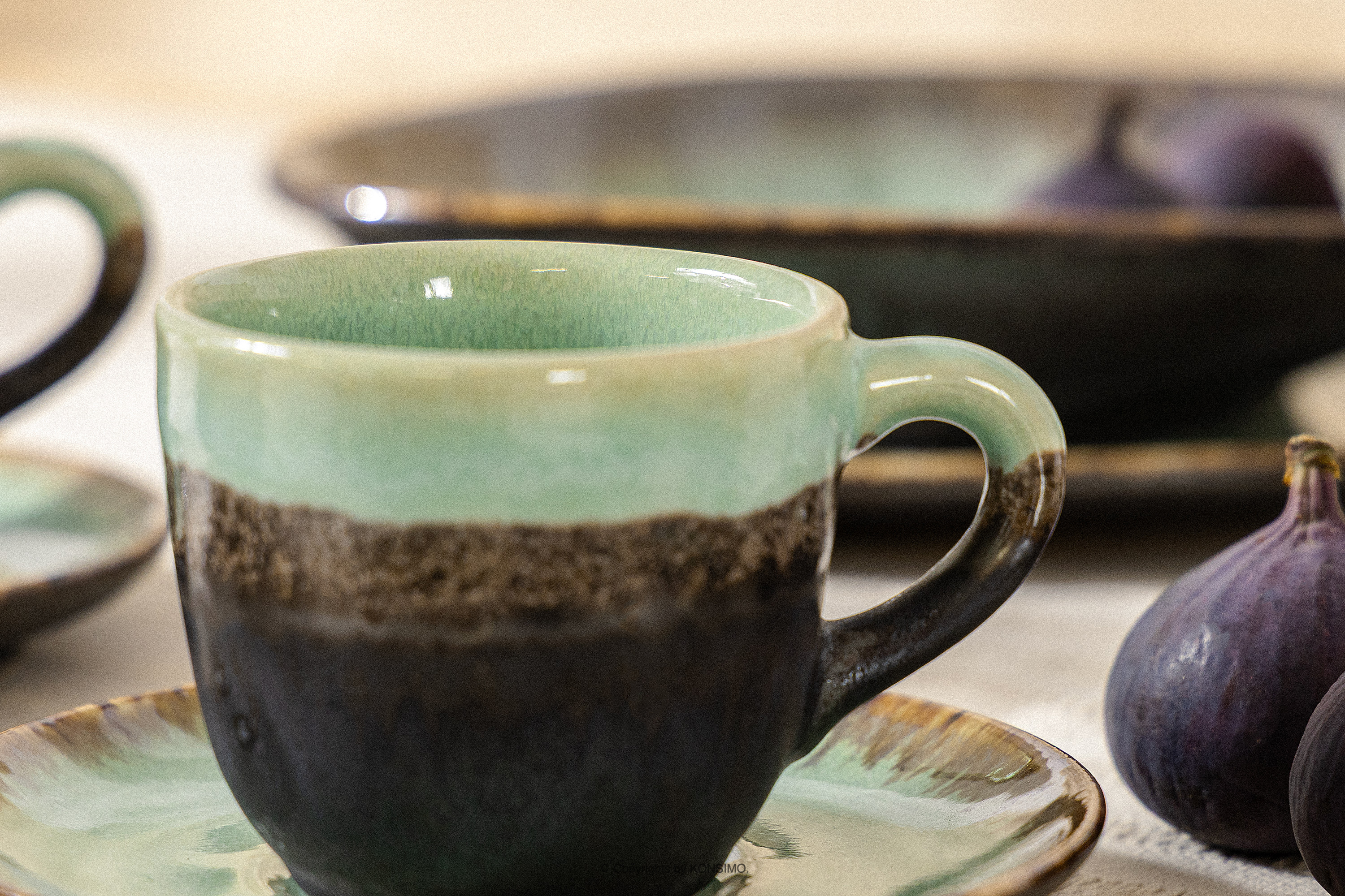 PRIMA zobacz całą kolekcję Filiżanka do kawy ręcznie szkliwiona szałwiowy- kolor szałwiowy