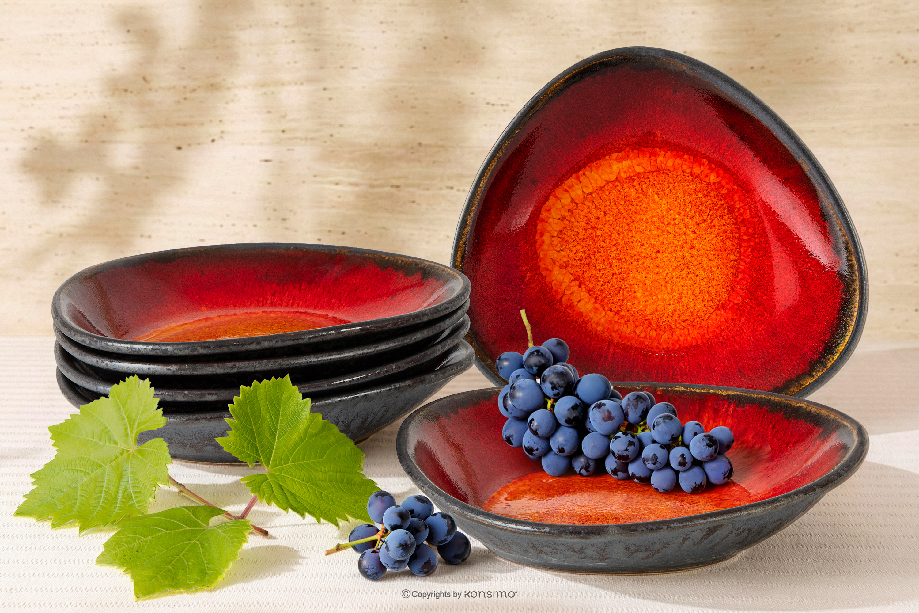 PRIMA zobacz całą kolekcję Talerz głęboki z ceramiki ręcznie szkliwiony 6 szt. czerwony- kolor czerwony
