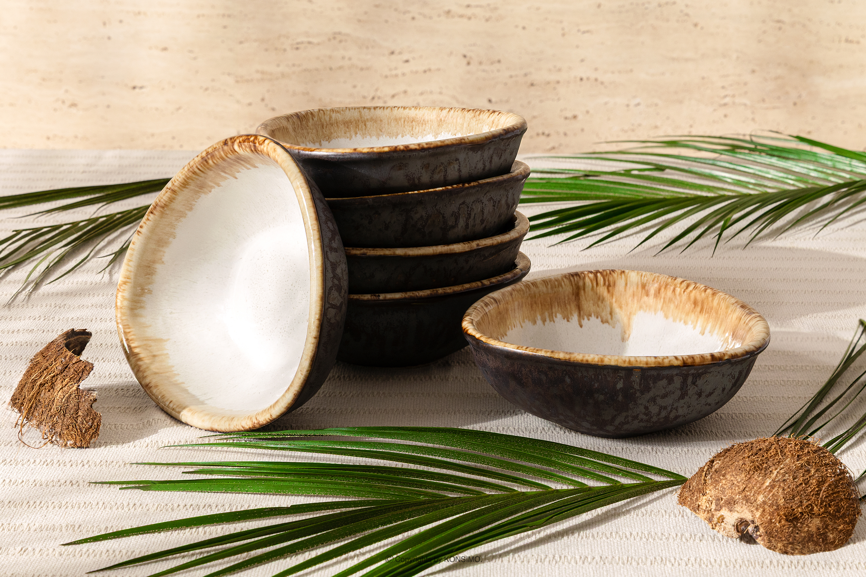 PRIMA zobacz całą kolekcję Miska z ceramiki ręcznie szkliwiona 6 szt. jasny beżowy- kolor jasny beżowy