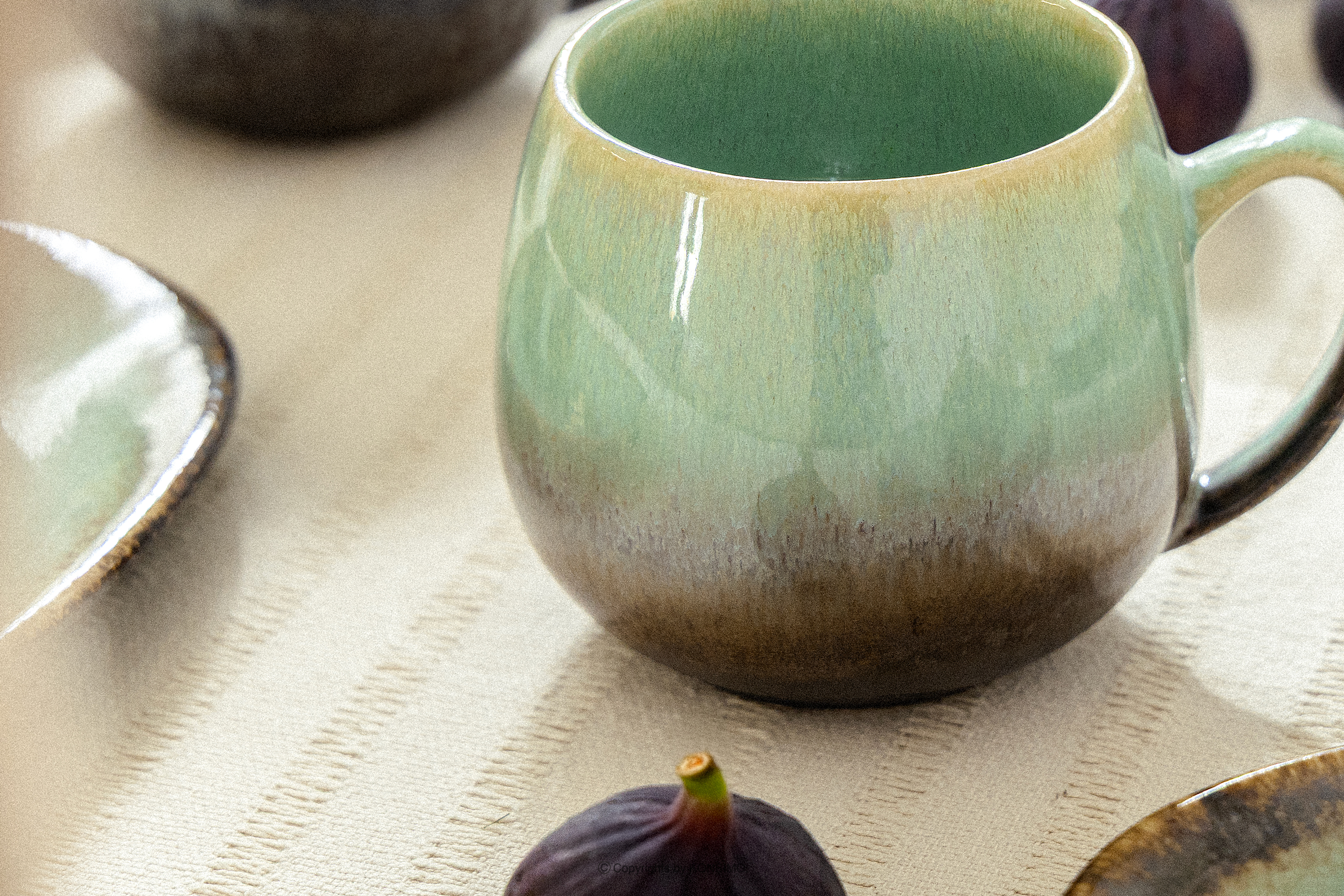PRIMA zobacz całą kolekcję Kubek z ceramiki ręcznie szkliwiony 6 szt. szałwiowy- kolor szałwiowy