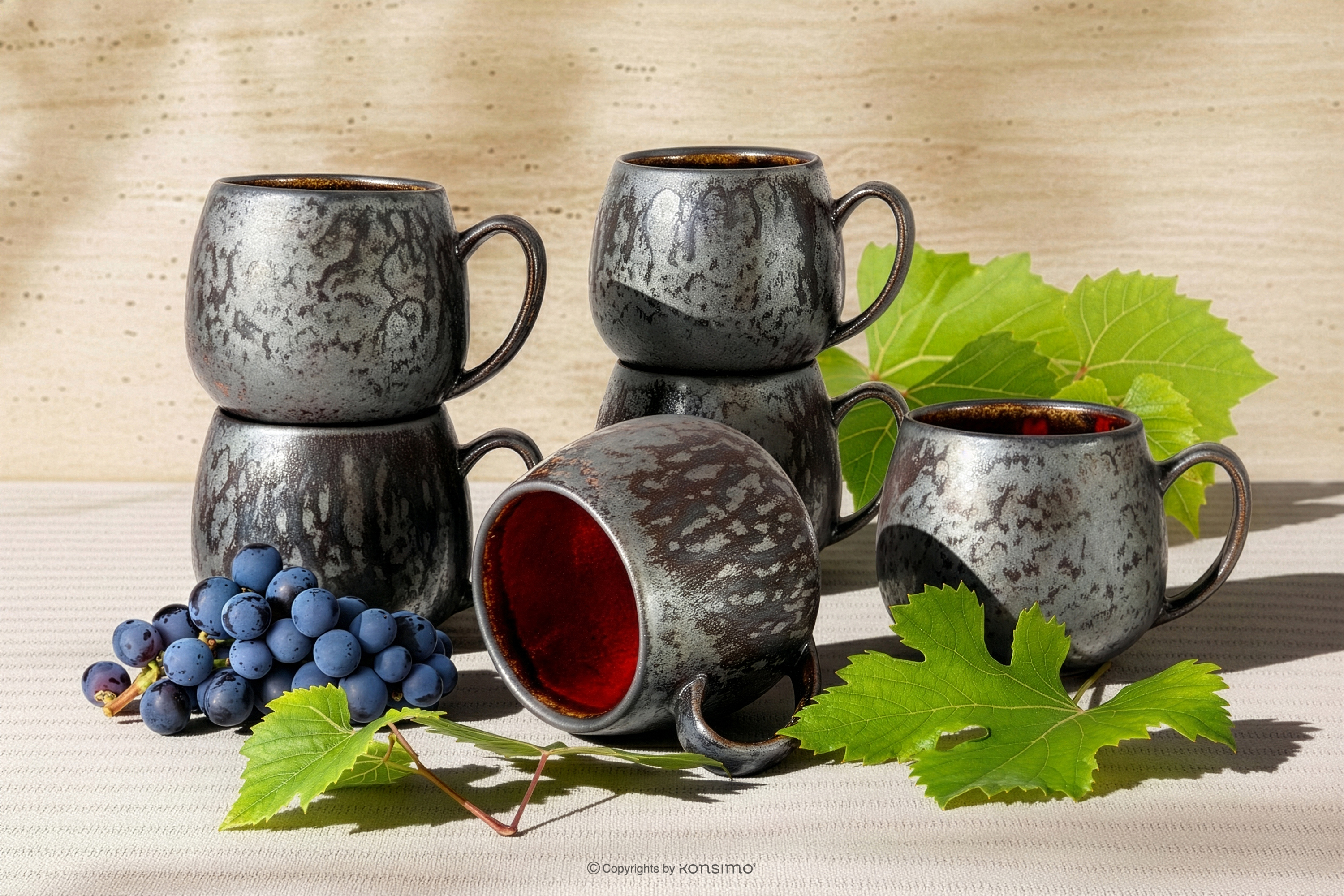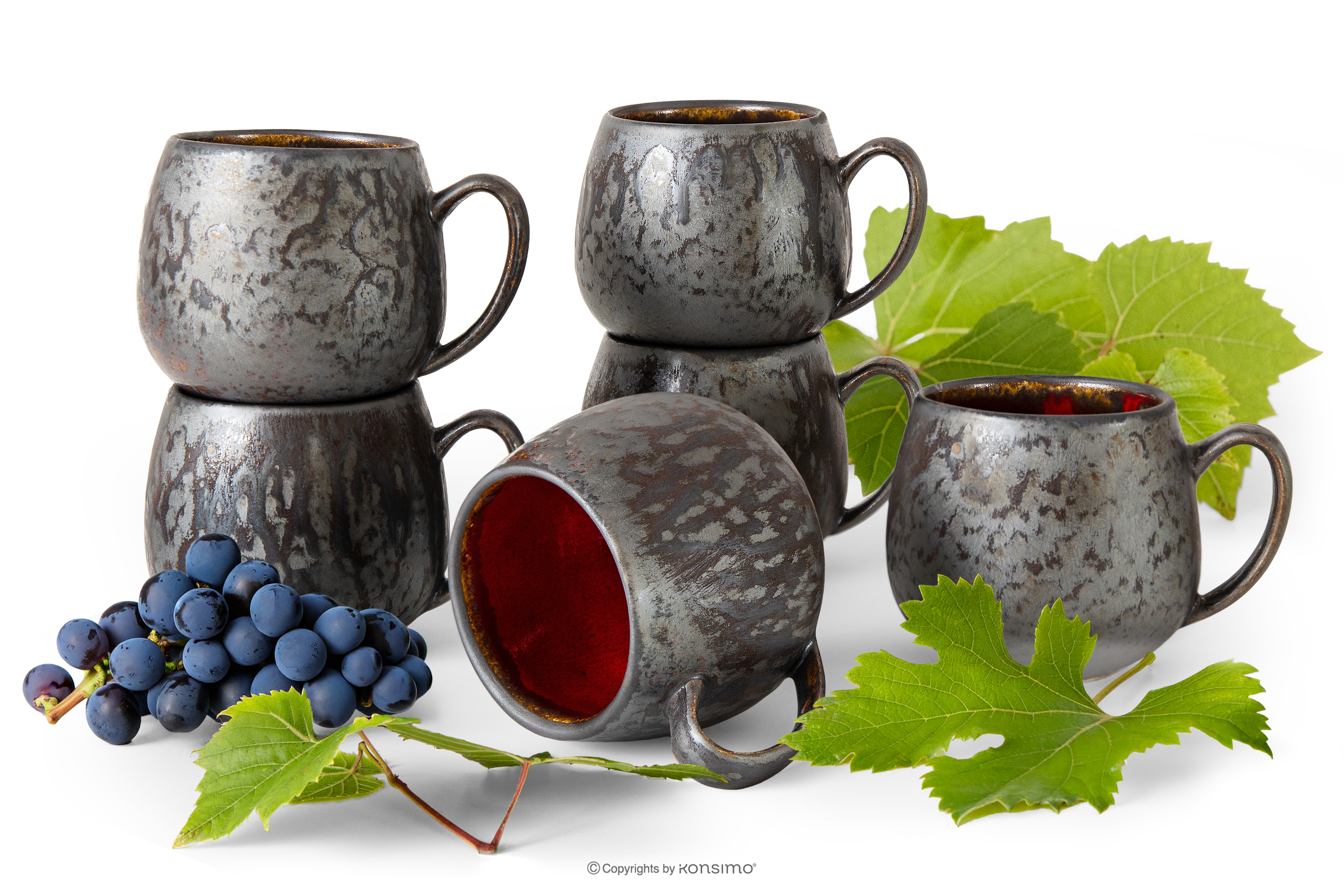 PRIMA Kubek z ceramiki ręcznie szkliwiony 6 szt. czerwony