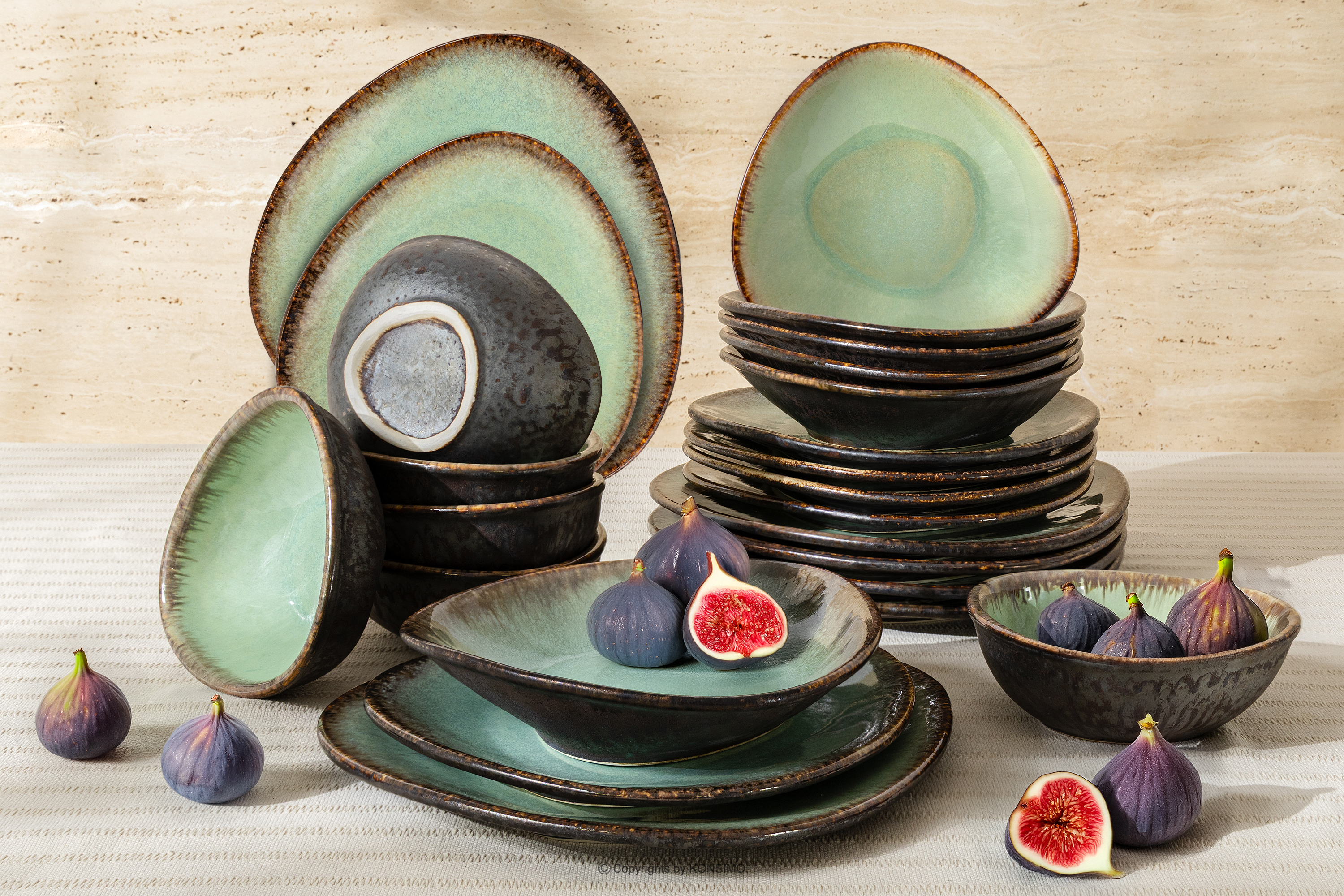 dla produktu Zestaw obiadowy z ceramiki ręcznie szkliwiony 6os. (24 el.) szałwiowy