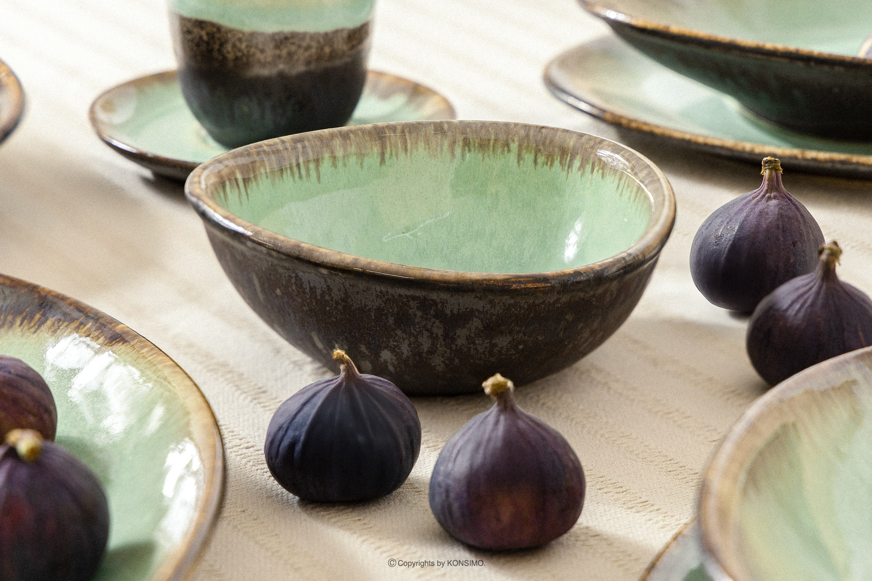 PRIMA Zestaw śniadaniowy ręcznie szkliwiony 6 os. (18 el.) szałwiowy