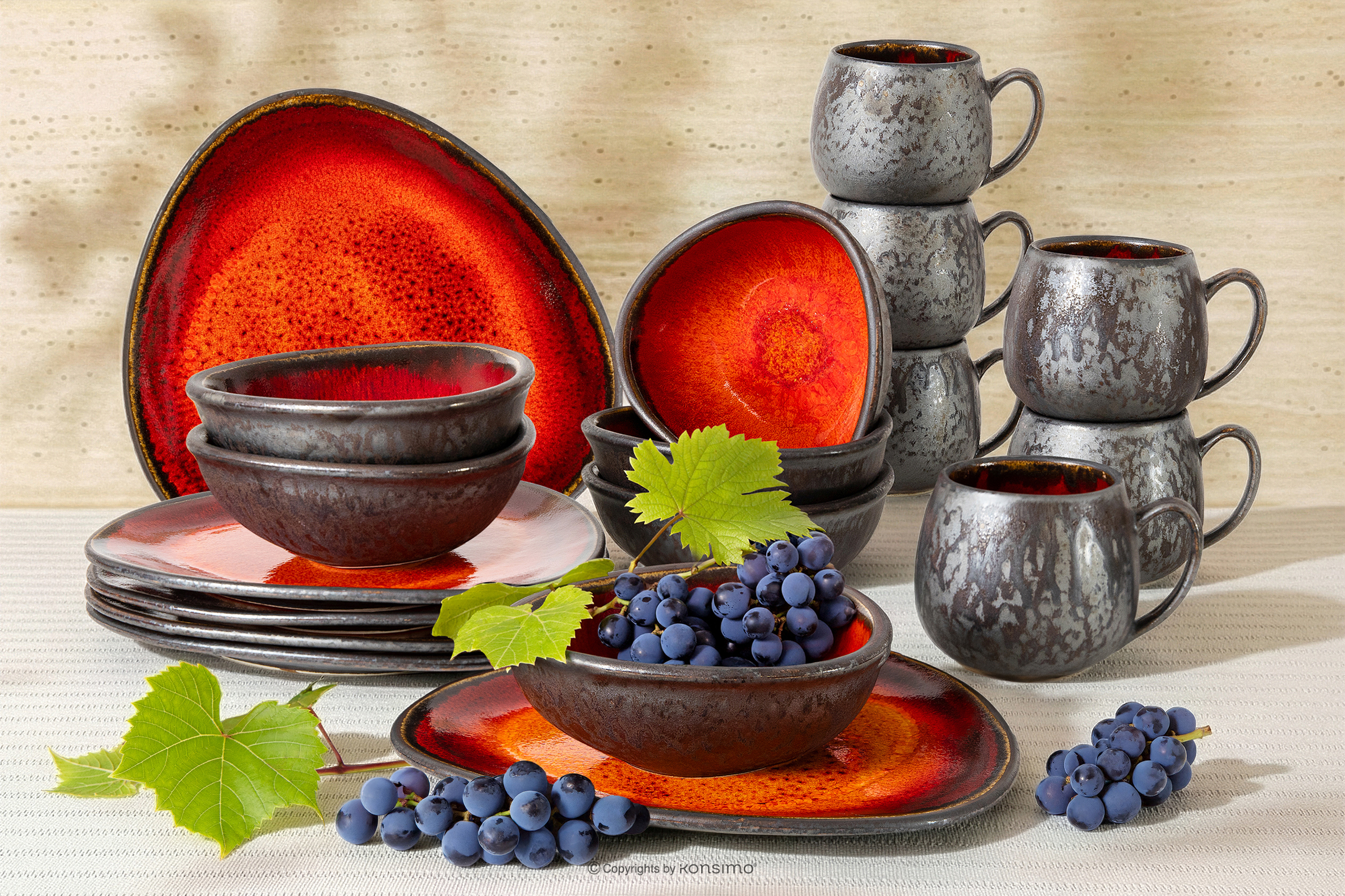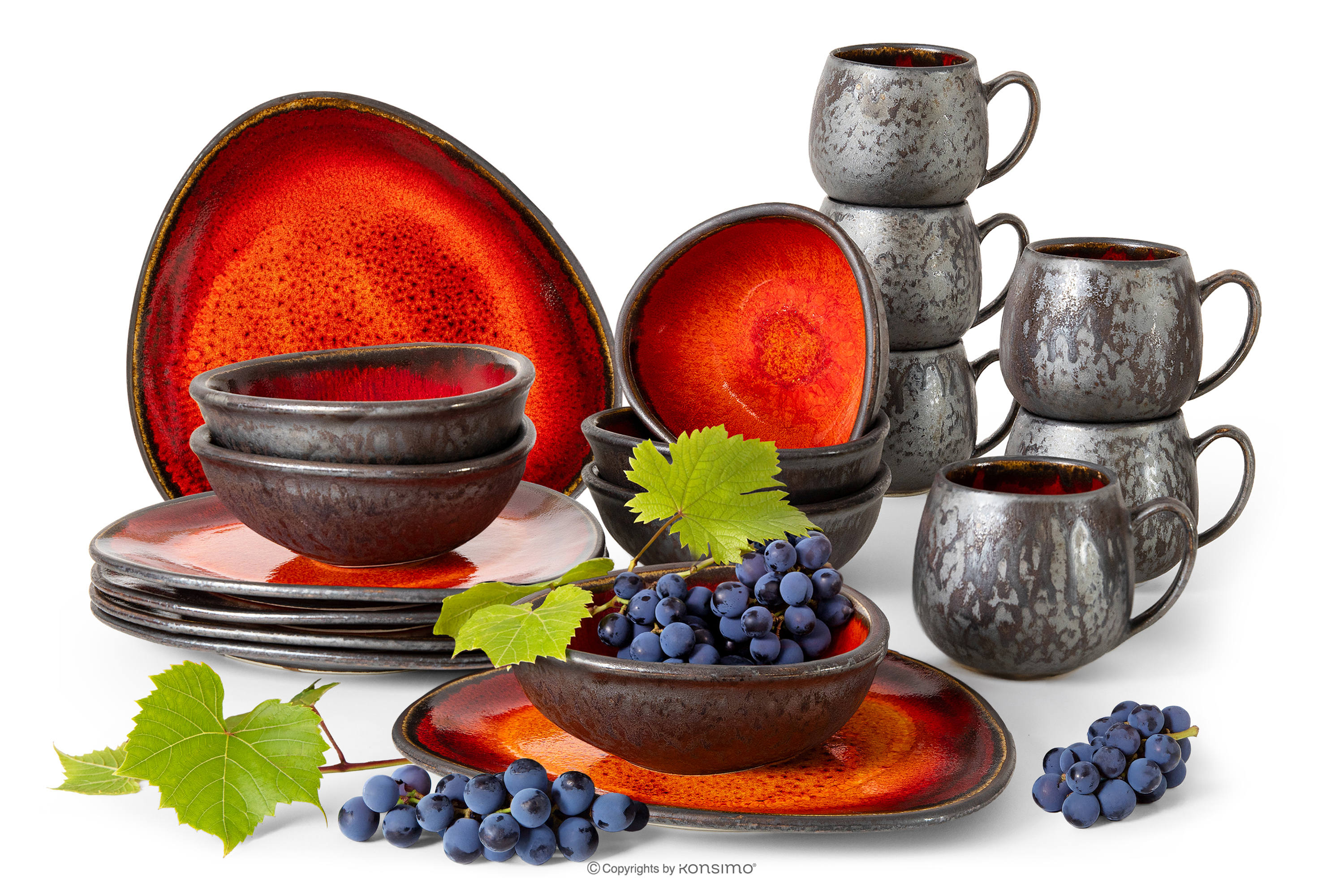 PRIMA Zestaw śniadaniowy ręcznie szkliwiony 6 os. (18 el.) czerwony