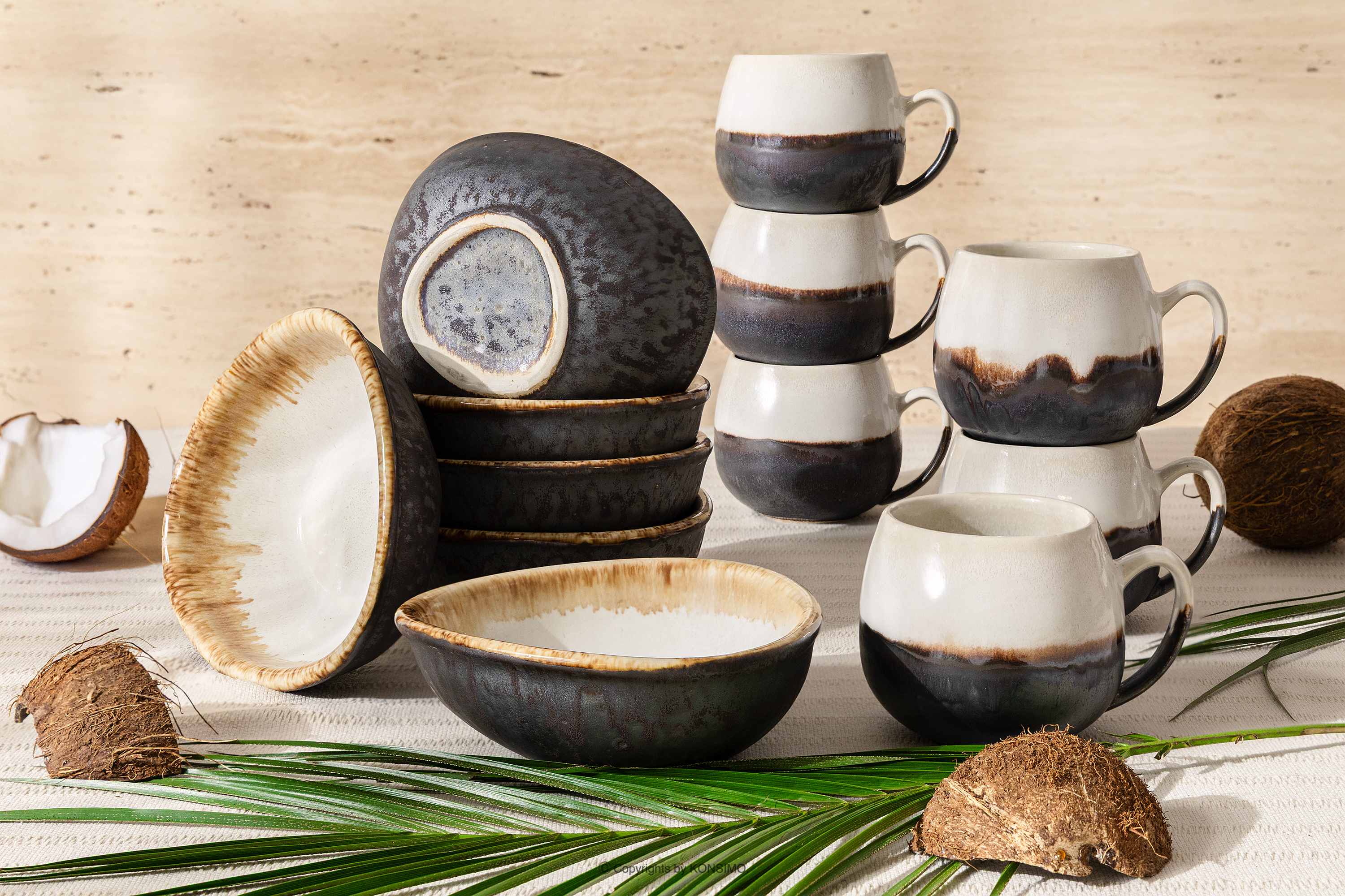Zestaw śniadaniowy loft ręcznie szkliwiony 6 os. (12 el.) jasny beżowy – esencja surowego piękna i nowoczesnej elegancji, zamknięta w formie użytkowej ceramiki. Stworzona z myślą o tych, którzy cenią autentyczność i niebanalny design, PRIMA jest hołdem dla stylu Loft, w którym liczy się przestrzeń, światło i naturalne materiały. Dominujący jasny, złamany beż to kolor ziemi, piasku i naturalnego kamienia.