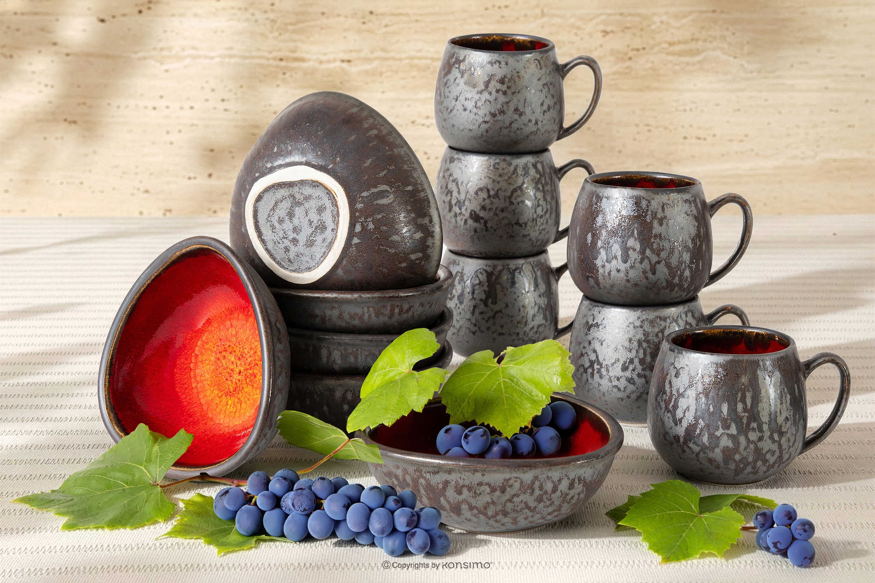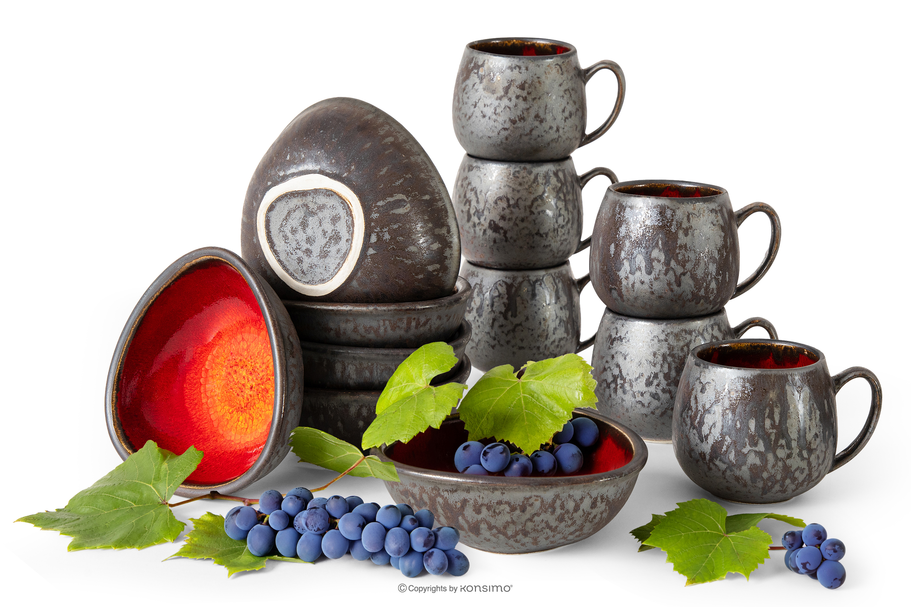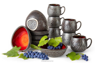 PRIMA zobacz całą kolekcję Zestaw śniadaniowy loft ręcznie szkliwiony 6 os. (12 el.) czerwony- kolor czerwony