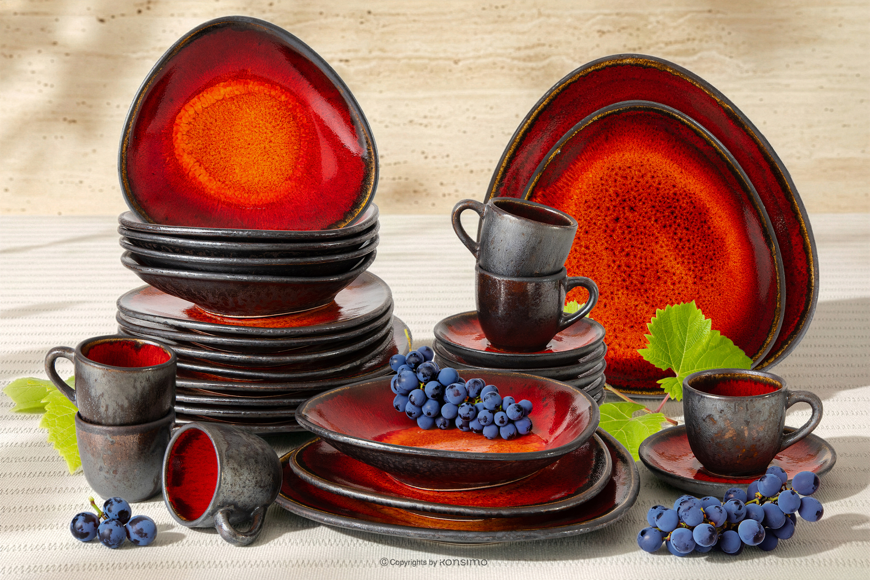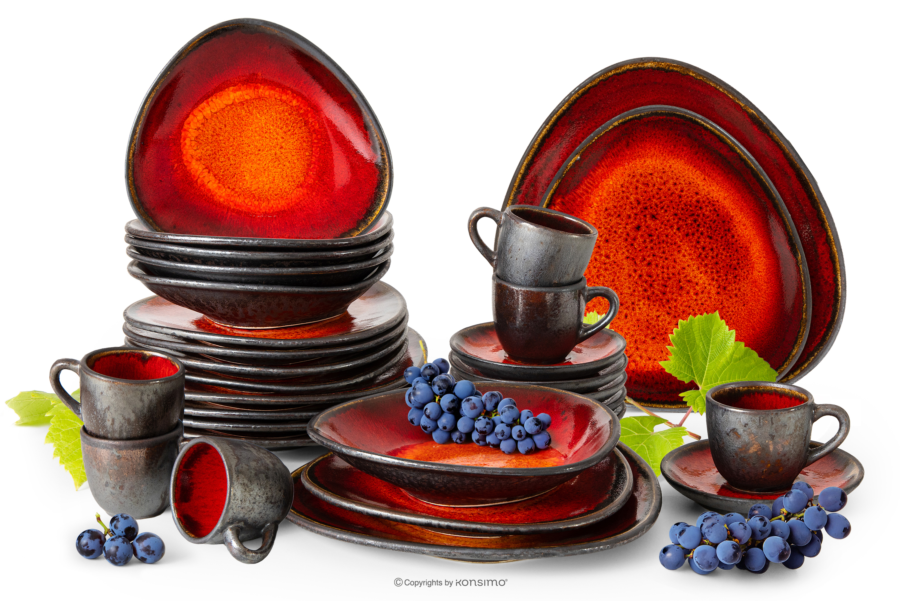 PRIMA Zestaw obiadowo-kawowy ręcznie szkliwiony 6 os. (30 el.) czerwony