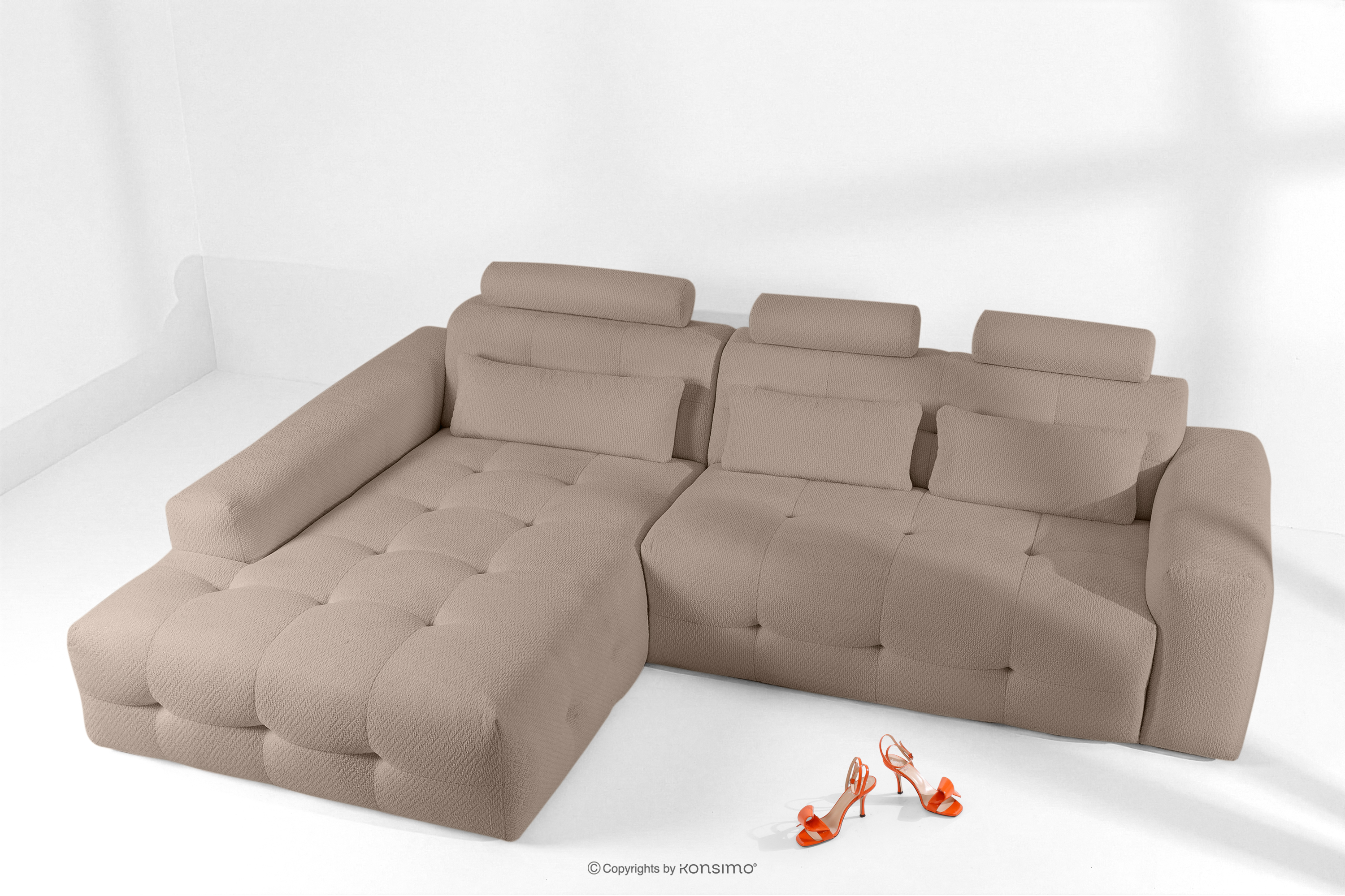 Narożnik z pikowaniem w tkaninie szenilowej lewy jasny brązowy to kwintesencja nowoczesnego designu połączona z bezkompromisową funkcjonalnością, która redefiniuje pojęcie luksusu w domowym salonie. Fundamentem tej linii mebli jest ich unikalna estetyka. ALIGRA posiada głębokie, rzemieślnicze pikowania nadające bryle trójwymiarowości i szlachetnego charakteru. Dużą zaletą jest także niezrównany komfort użytkowania osiągnięty dzięki precyzyjnemu projektowaniu warstw wewnętrznych siedziska.