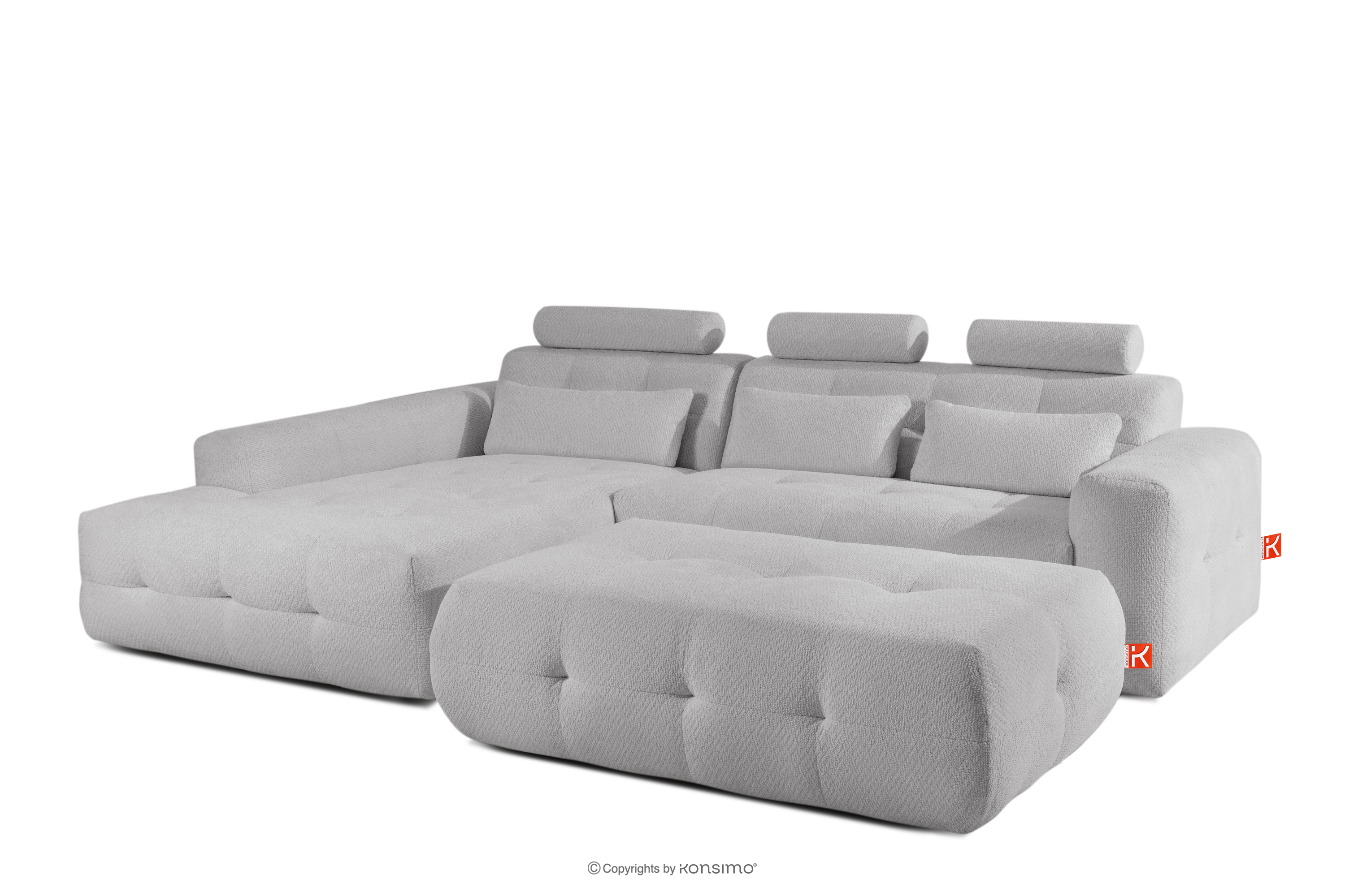 ALIGRA Zestaw mebli do salonu narożnik lewy i puf w kaninie szenil z pikowaniem jasny szary