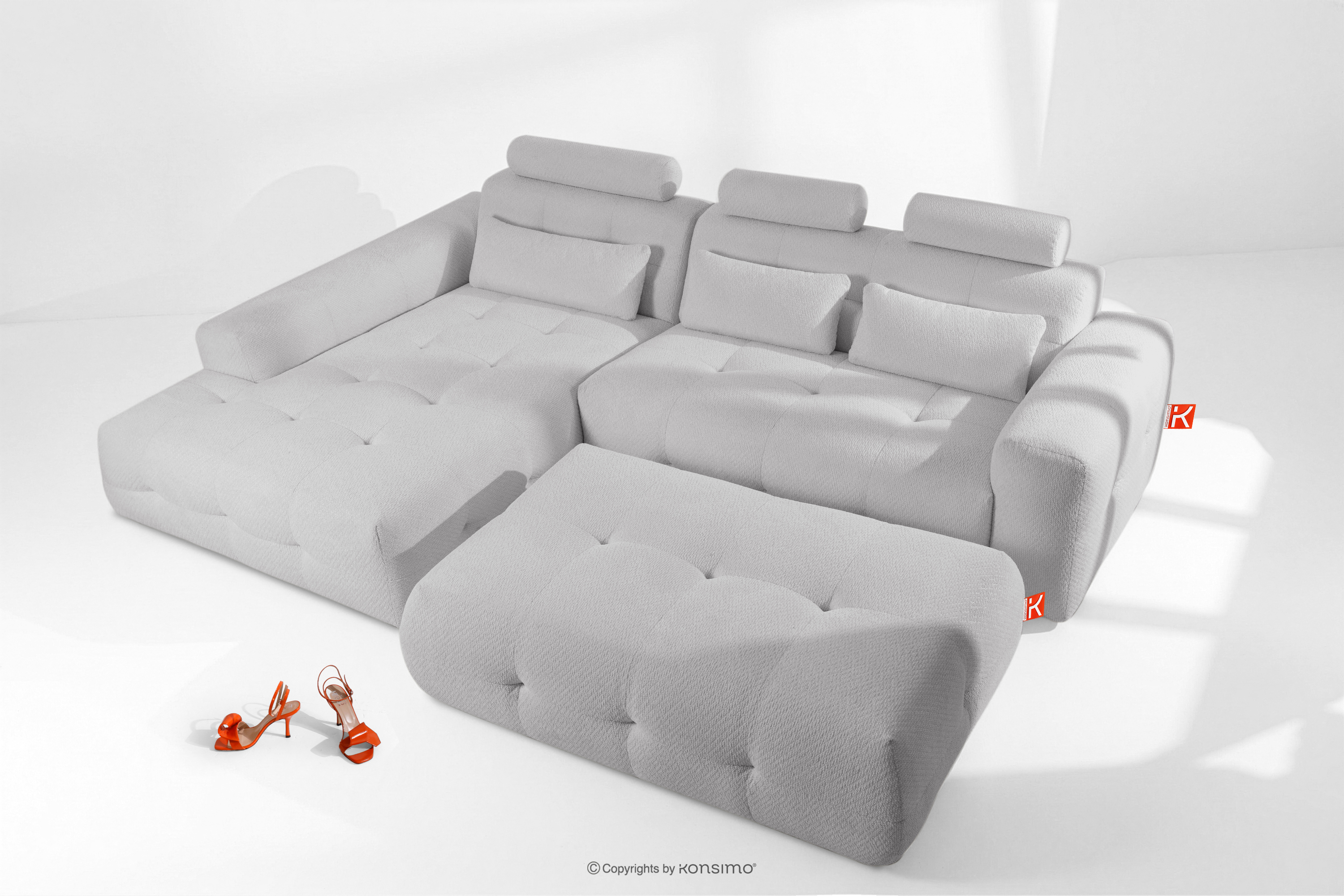 ALIGRA zobacz całą kolekcję Zestaw mebli do salonu narożnik lewy i puf w kaninie szenil z pikowaniem jasny szary- kolor jasny szary